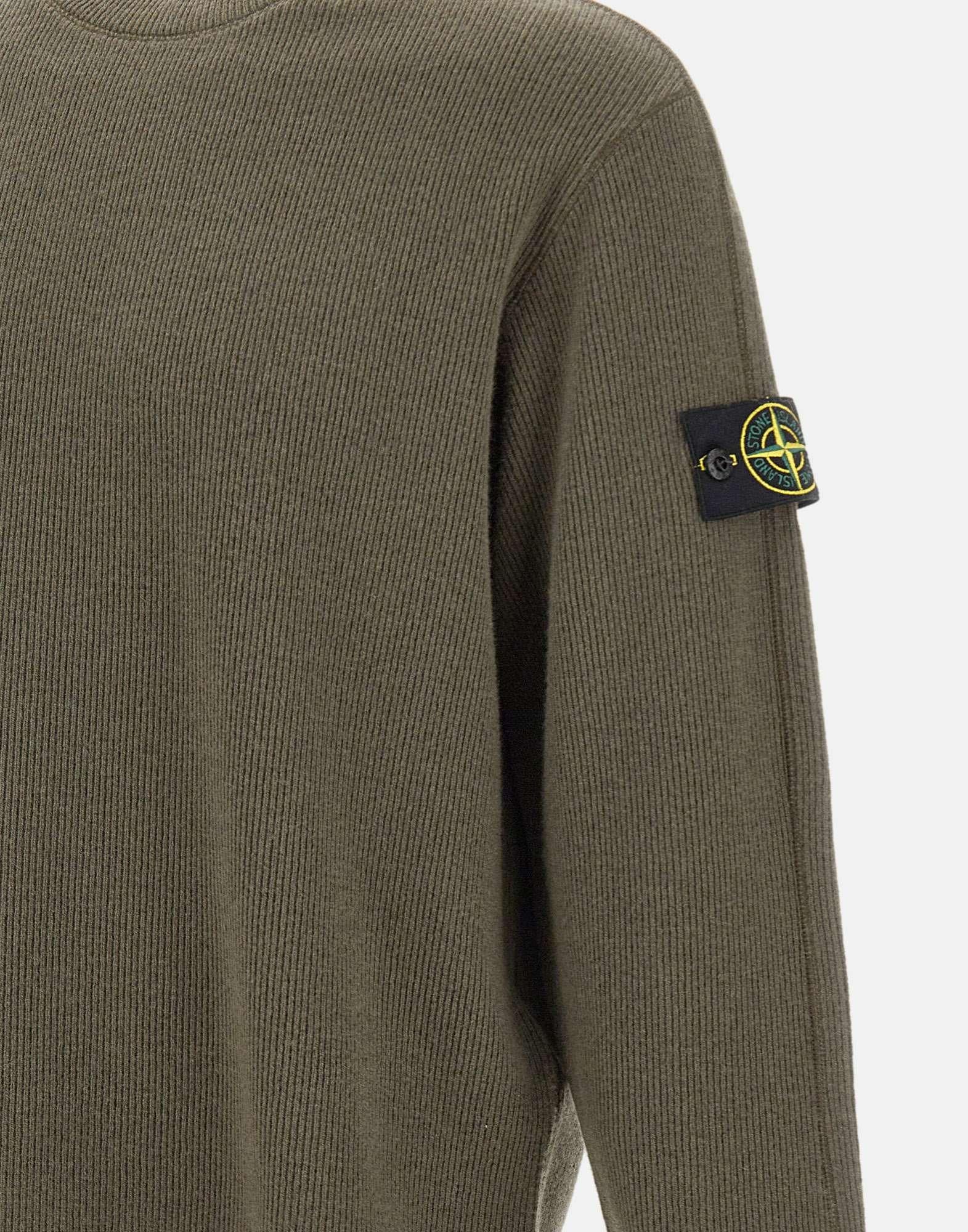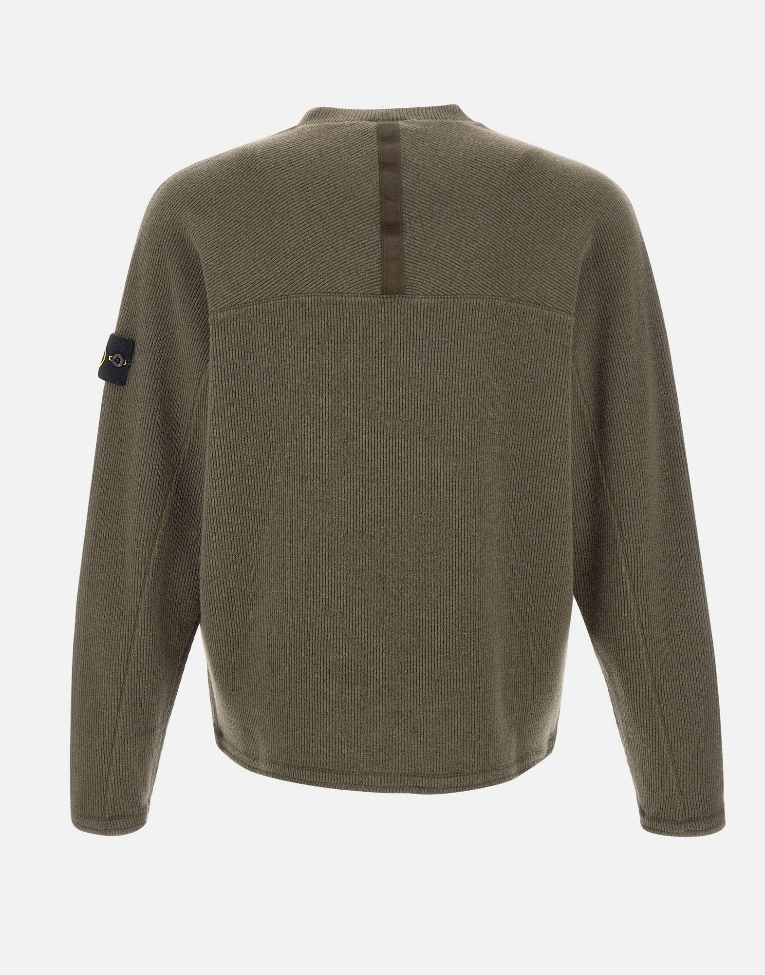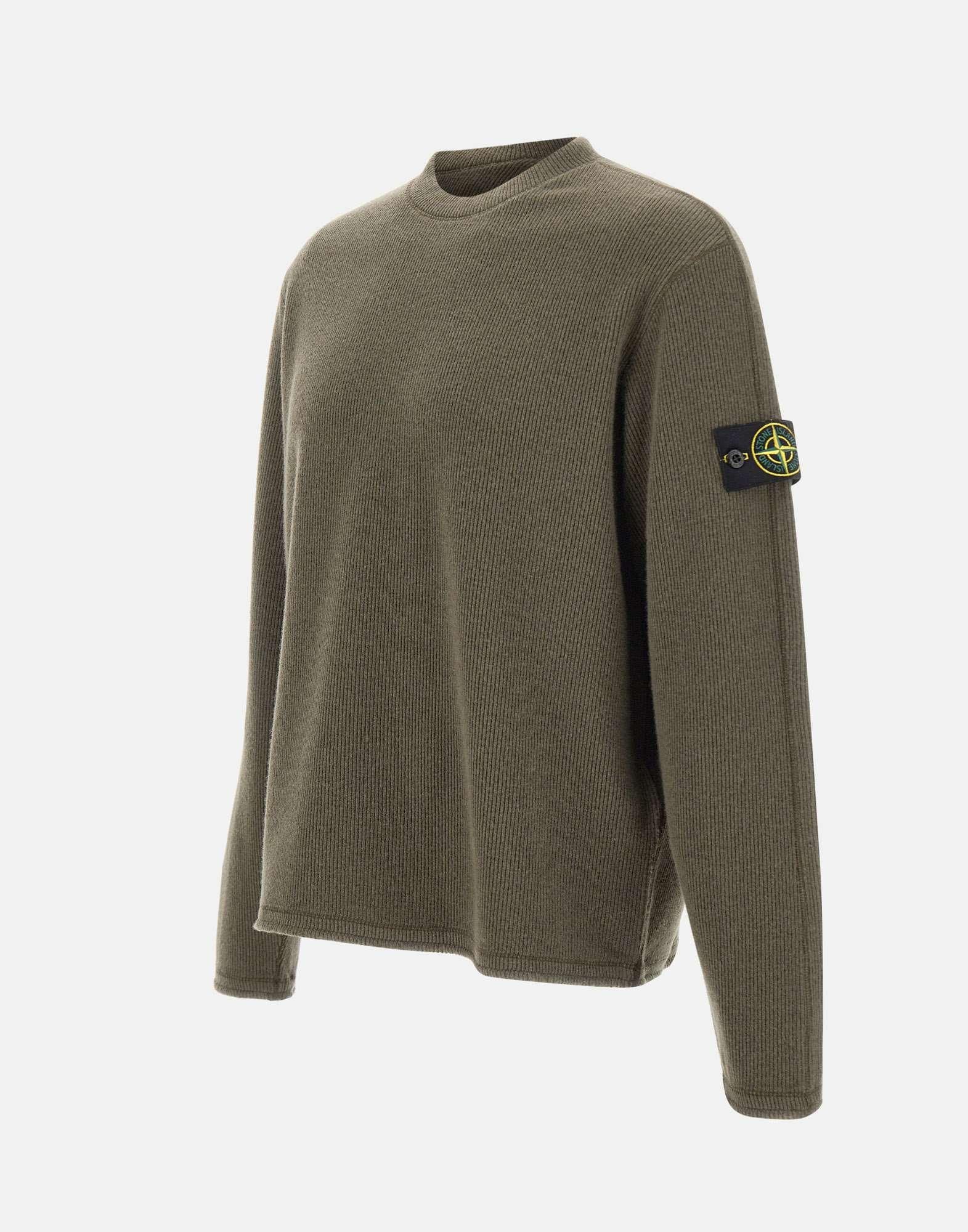 Maglia uomo Stone Island in misto lana verde salvia, caratterizzata da una trama operata a coste verticali e un taglio dritto che valorizza la struttura del capo. Presenta girocollo, maniche lunghe e liconica badge logo sulla manica sinistra. La vestibilità regular fit assicura comfort e versatilità, ideale per un look casual raffinato dal carattere distintivo del brand.
