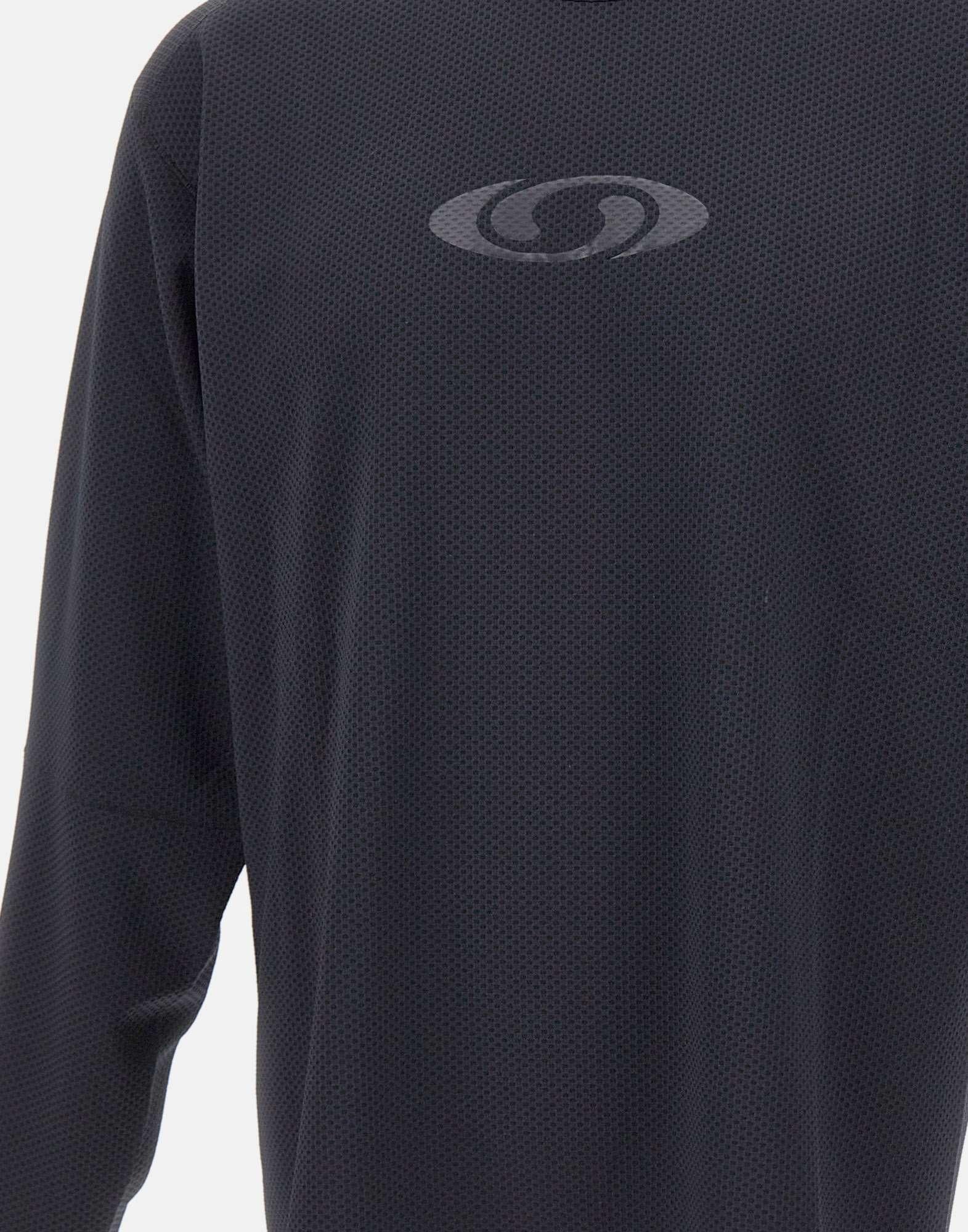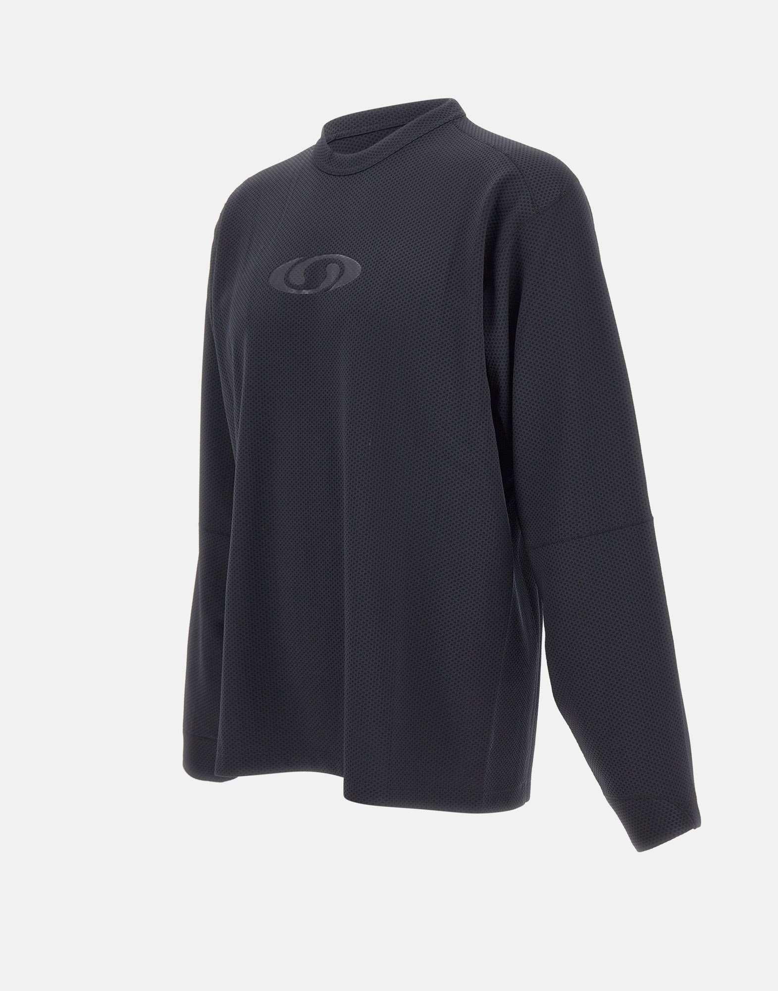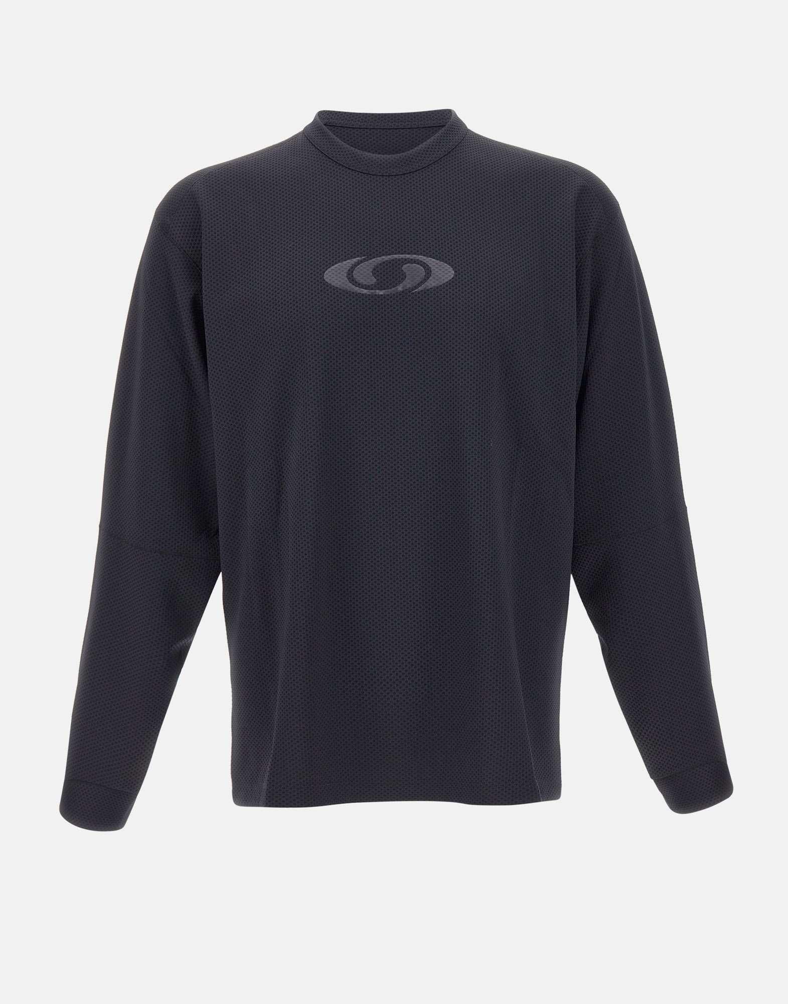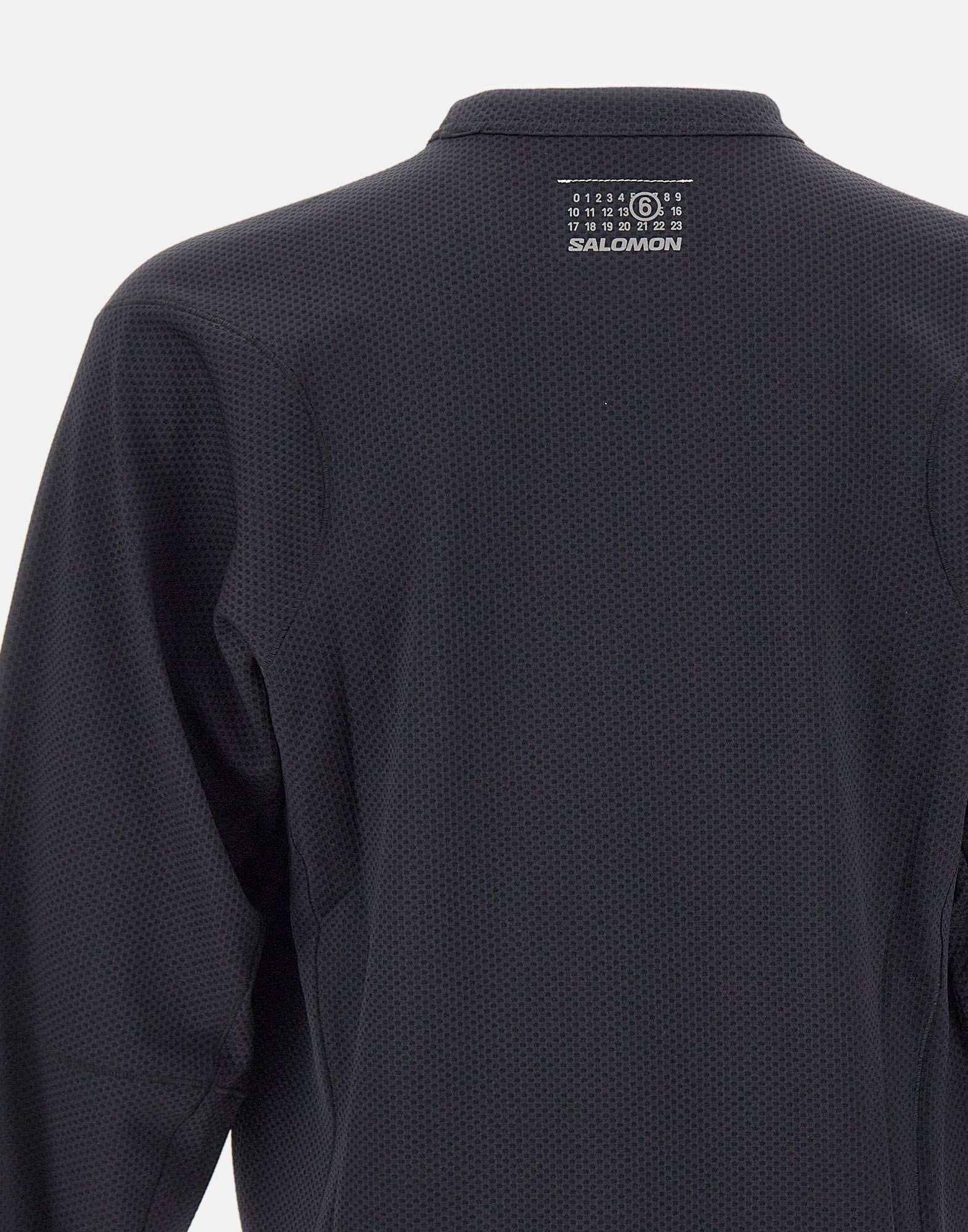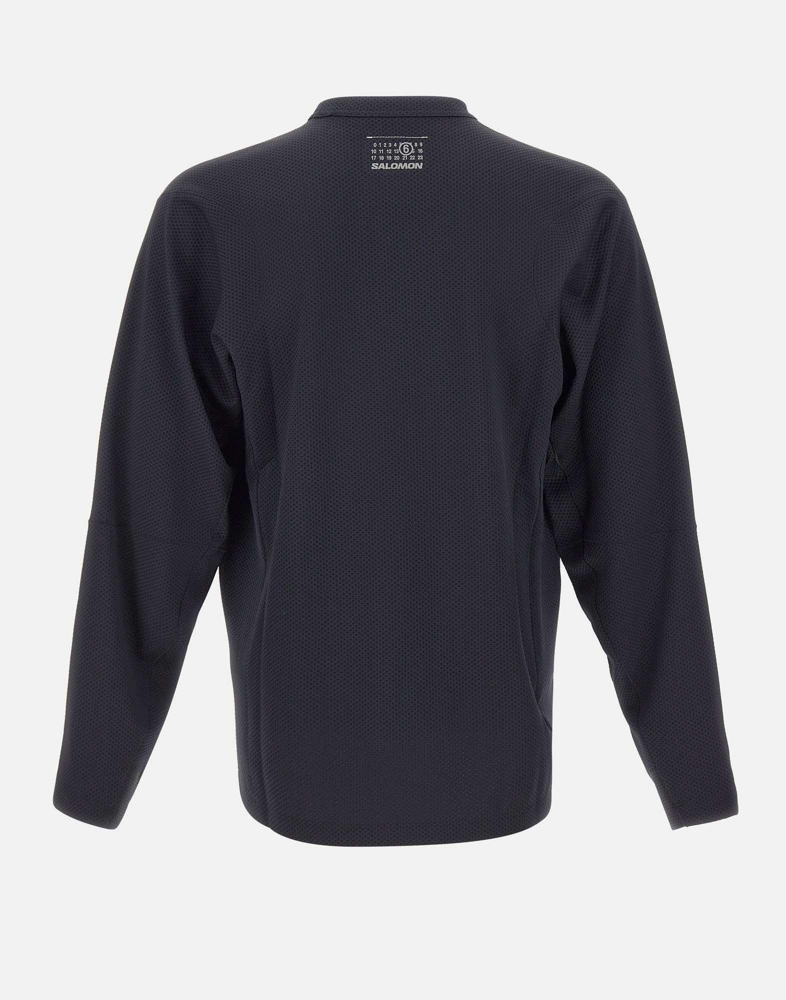 Parte della collaborazione esclusiva tra MM6 Maison Margiela e Salomon, questa maglia nel colore blu notte unisce performance e stile sperimentale. Realizzata in tessuto tecnico a trama nido dape, si distingue per il gioco di tagli sartoriali e la sua costruzione innovativa. Il design presenta maniche lunghe, girocollo, logo centrale sul petto e loghi stampati sul retro, per un tocco distintivo e contemporaneo. La vestibilità relaxed fit assicura comfort e libertà di movimento, ideale per look urban, sportivi o streetwear di alto profilo.