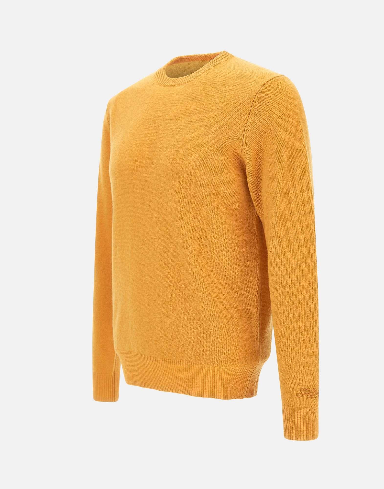 Mc2 Saint Barth "Regent Lambswool" giallo senape, realizzata in morbida lana di agnello per un comfort naturale e una calda sensazione sulla pelle. Presenta girocollo classico, maniche lunghe e bordi a costine che assicurano una vestibilità impeccabile. Dettaglio del logo ricamato tono su tono sul polso. Un must-have per la stagione fredda. Regular fit.