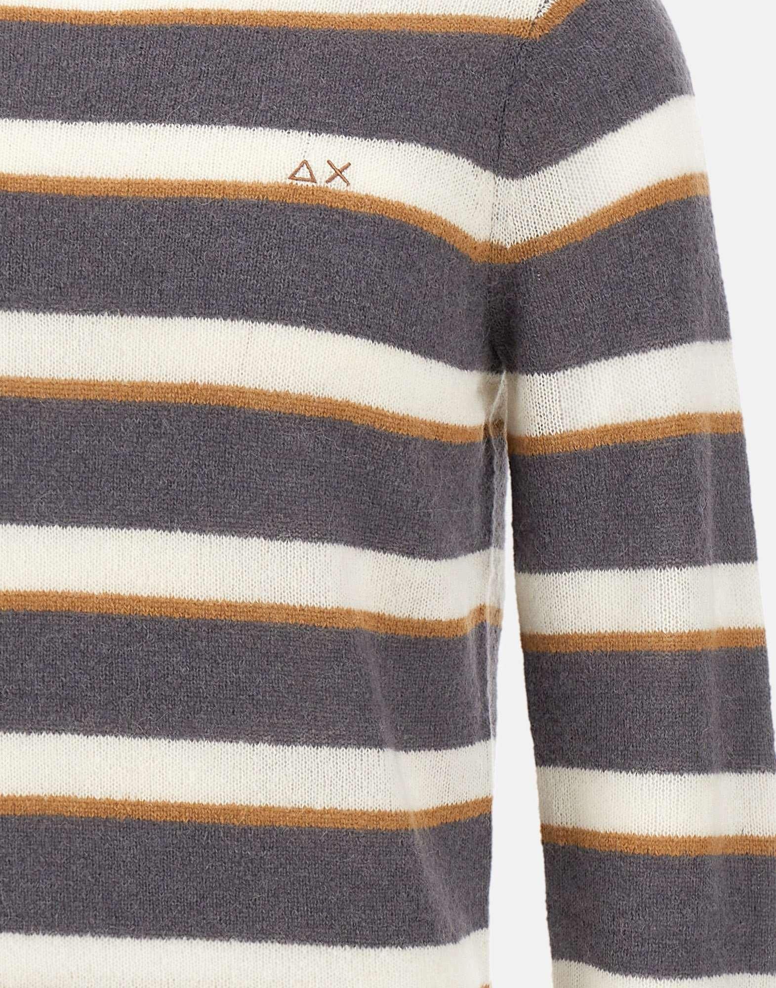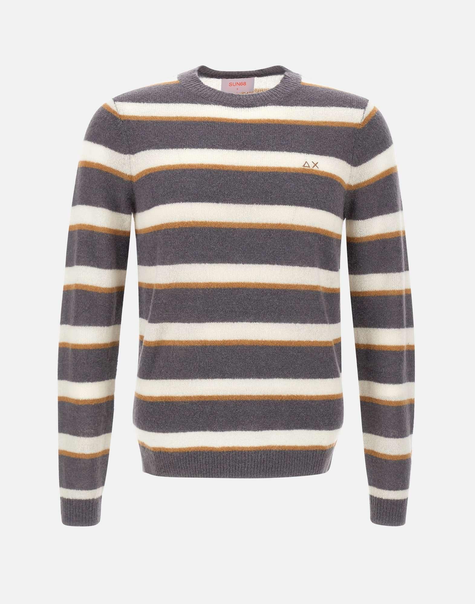 Maglia uomo Sun68 "Stripes Alpaca" in filato di misto lana e alpaca, calda e morbida al tatto. Presenta motivo a righe multicolore, girocollo, maniche lunghe e bordi a costine per una vestibilità confortevole. Il logo ricamato sul petto completa il design con un tocco iconico del brand. Regular fit, perfetta per uno stile casual e raffinato.