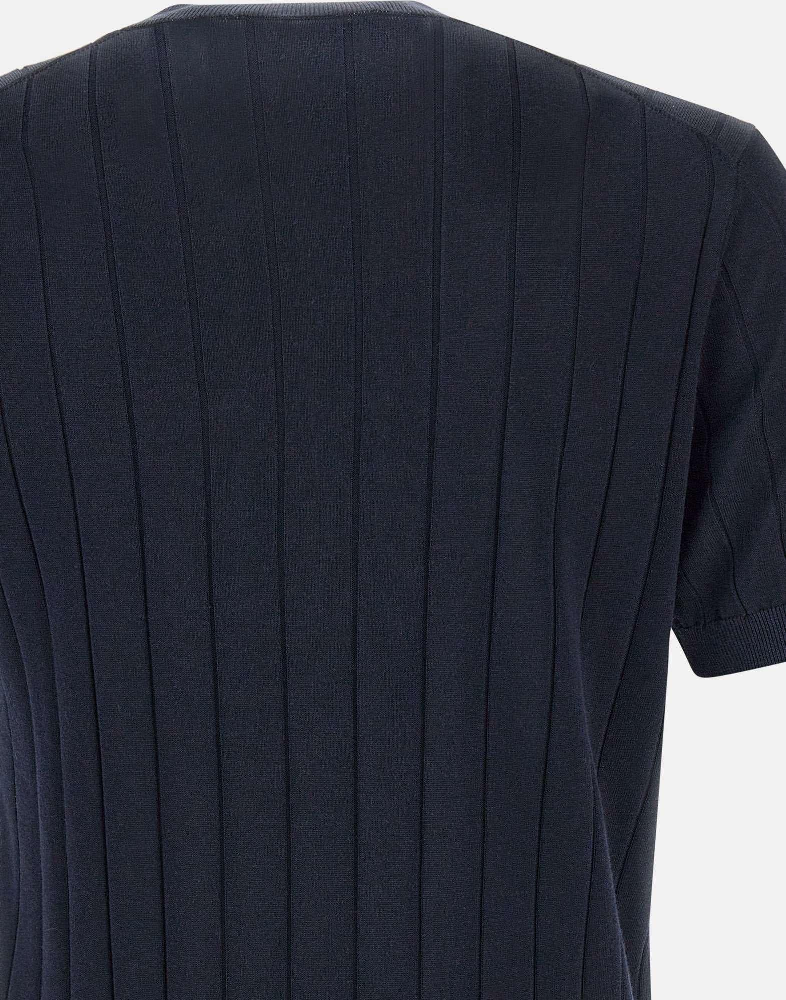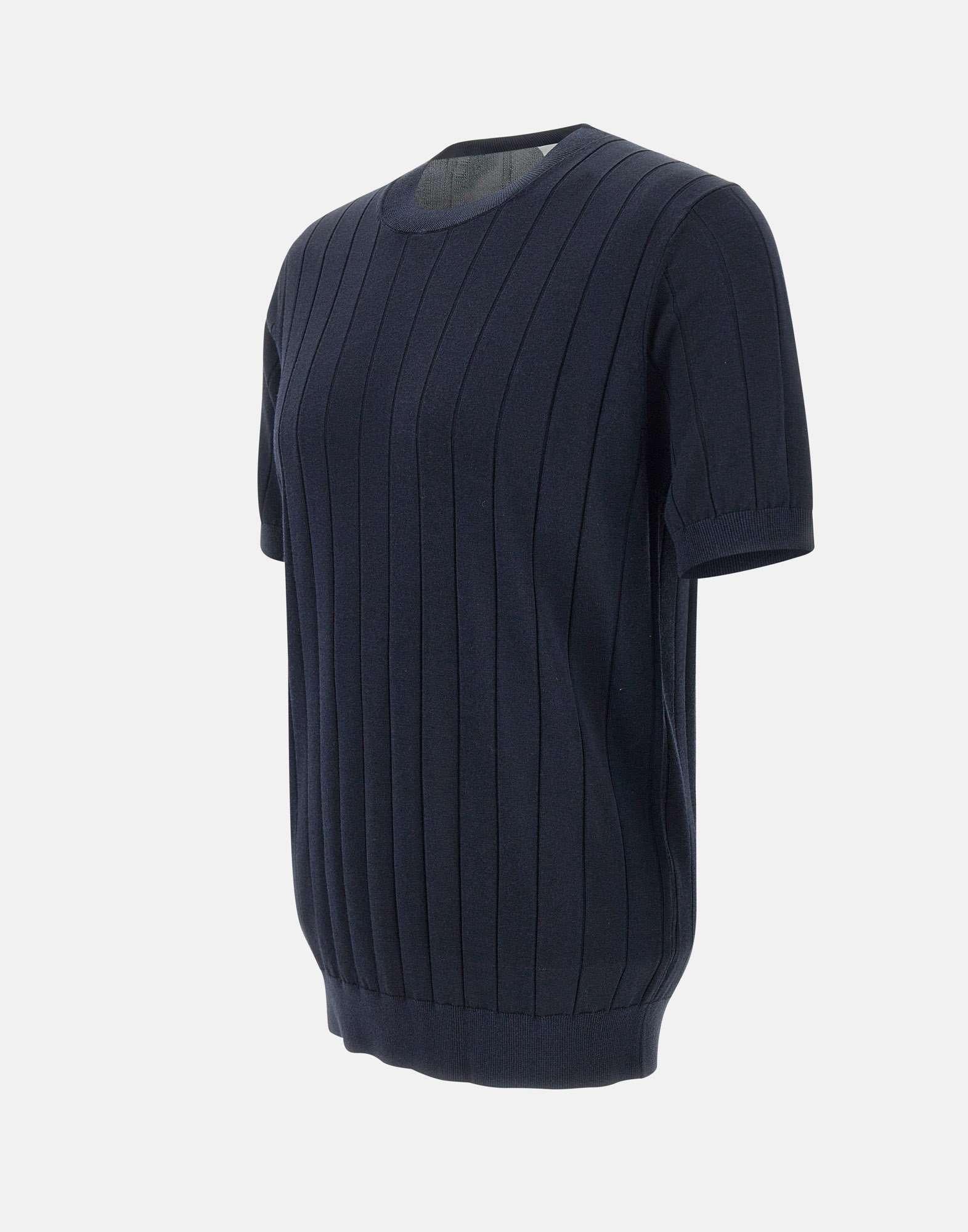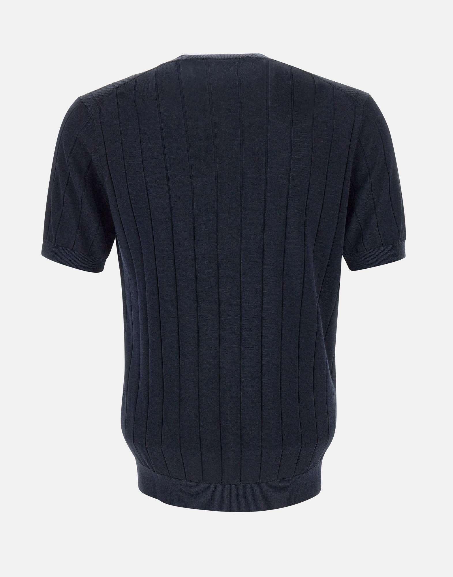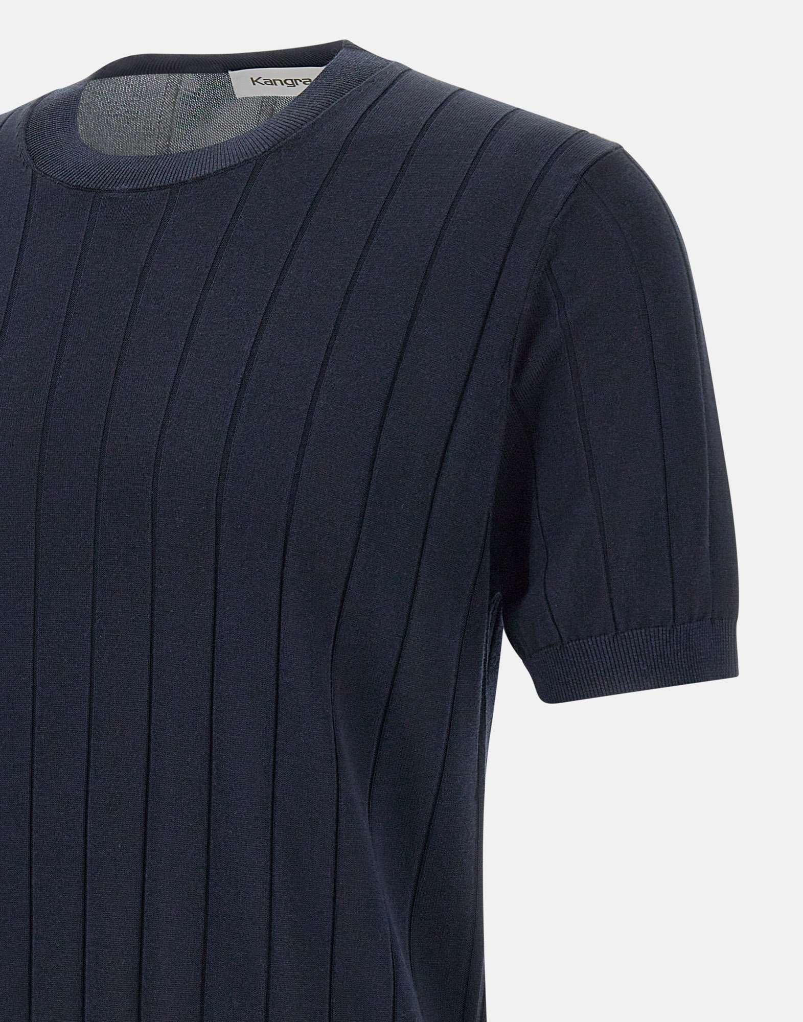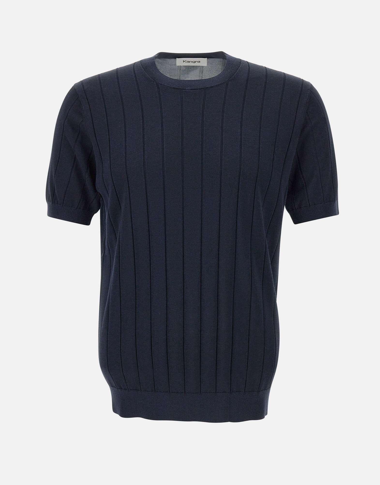 T-shirt uomo Kangra, blu, tessuto in cotone e viscosa, trama a coste verticali, girocollo, regular fit.