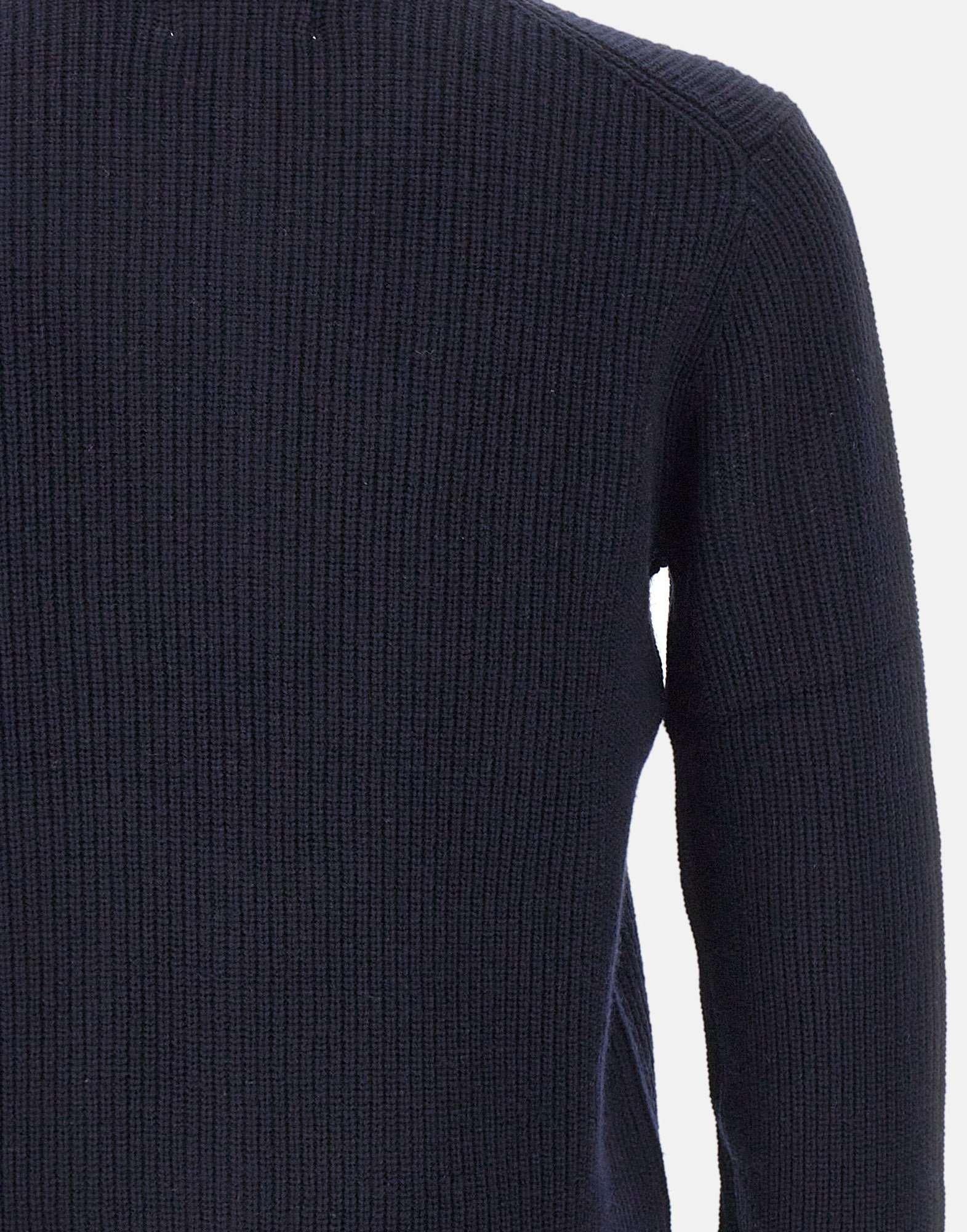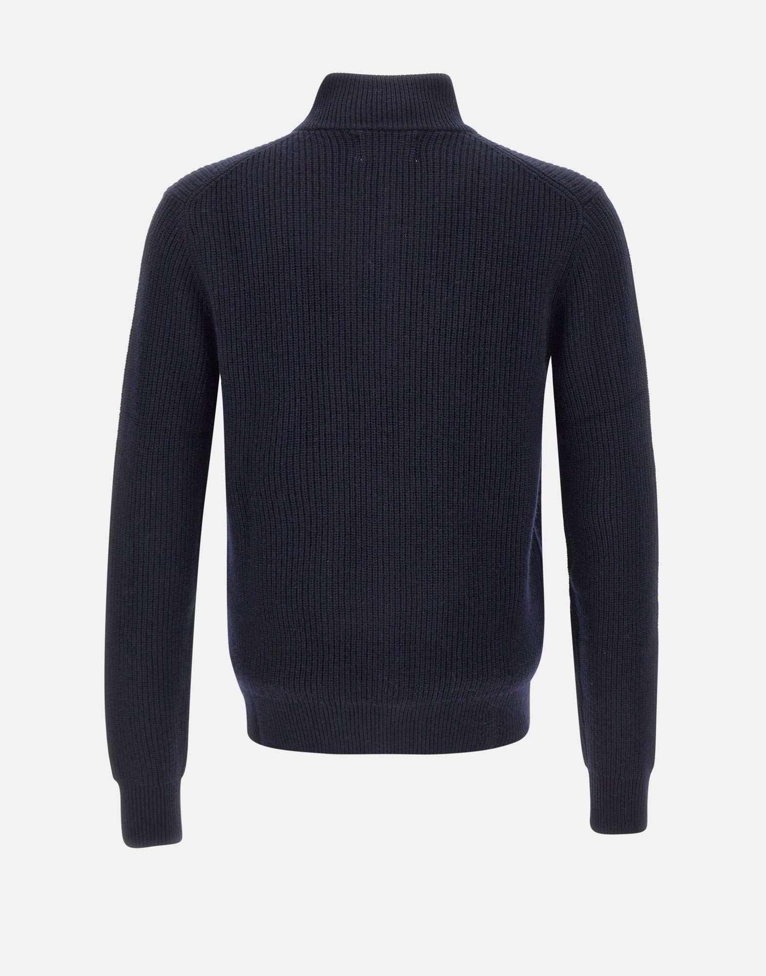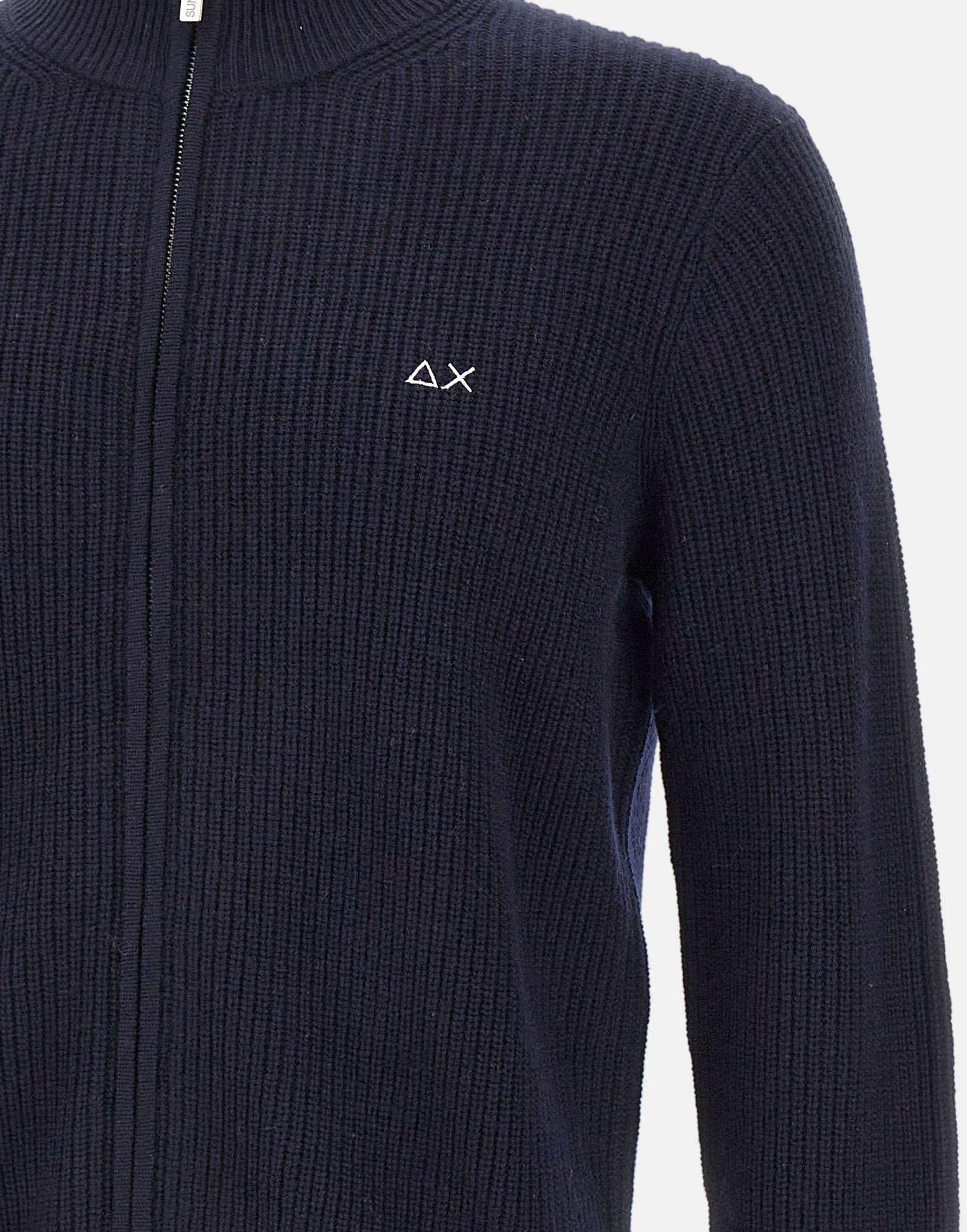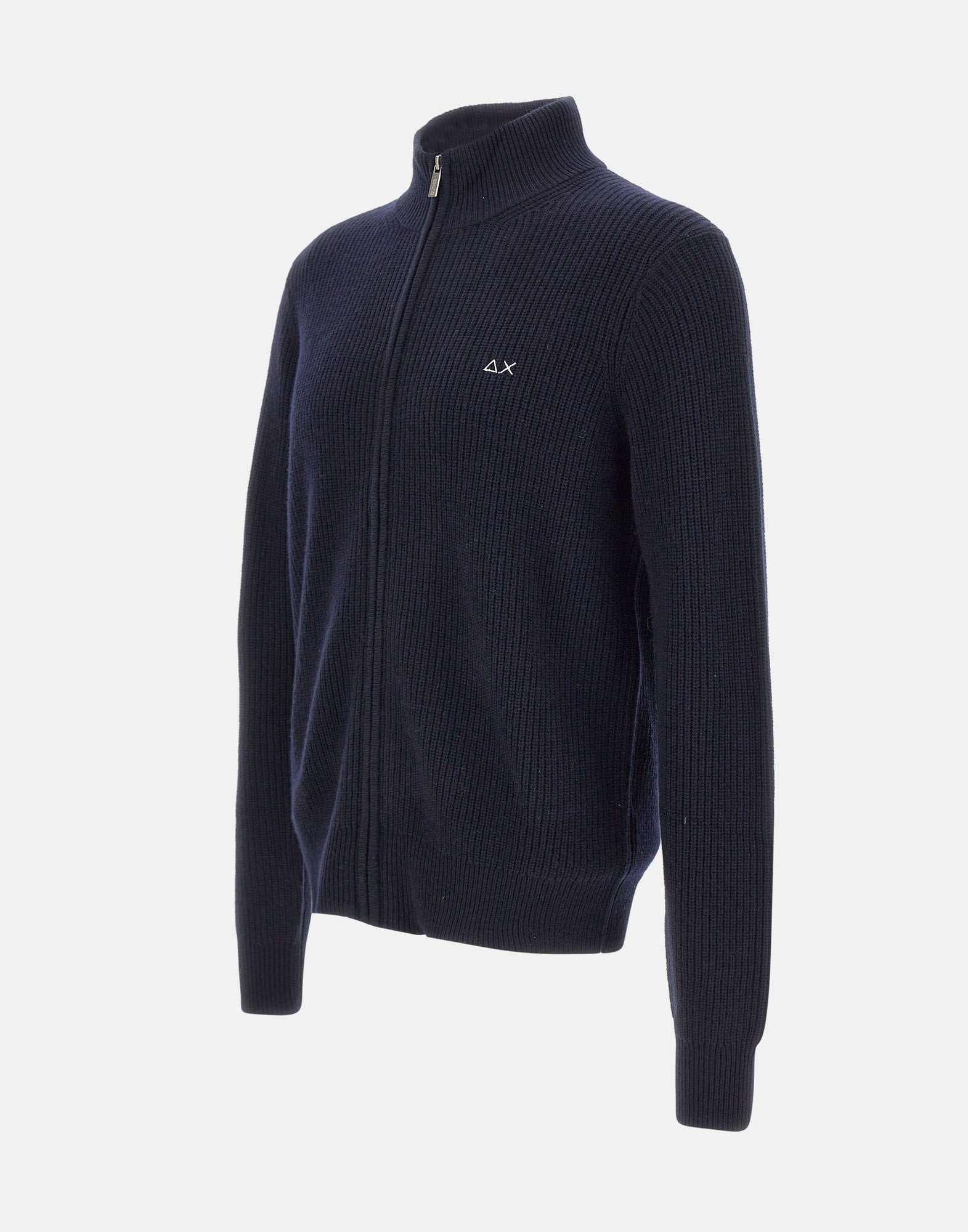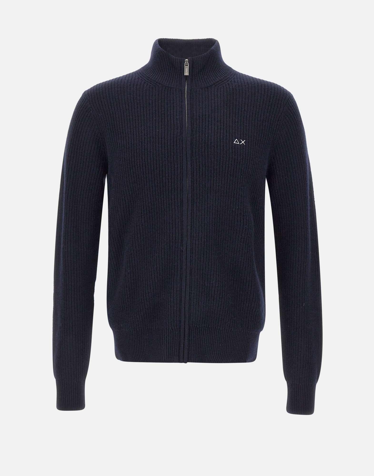 "Track zip sweater" uomo Sun68 in filato di misto lana e cashmere colore blu, caratterizzato da una morbida lavorazione a coste. Presenta collo alto, maniche lunghe e chiusura frontale con zip. Il logo ricamato sul petto aggiunge un tocco distintivo al design essenziale. Regular fit, perfetto per un look casual ma curato, ideale nelle giornate più fredde.