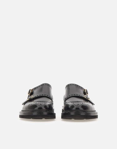 Mocassini Santoni "Kalamabuk" da uomo, realizzati in pregiata pelle nera con elegante doppia fibbia dorata. La tomaia è impreziosita da impunture a nido di rondine e punta tonda che ne esaltano lo stile classico. Soletta logata e suola in gomma con tacco da 3 cm per il massimo comfort e stabilità. Calzata regolare. Made in Italy. Custodia singola in tessuto inclusa.