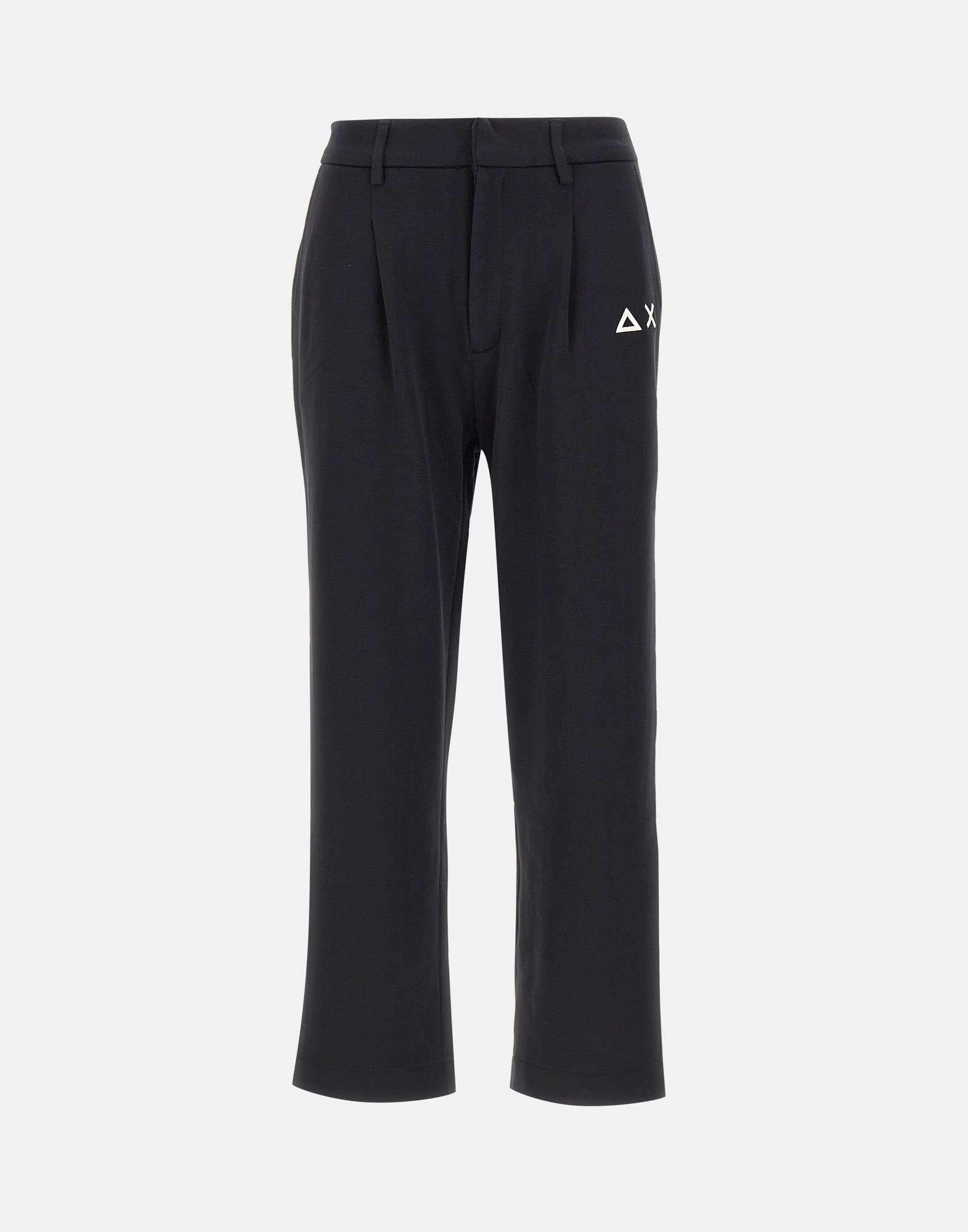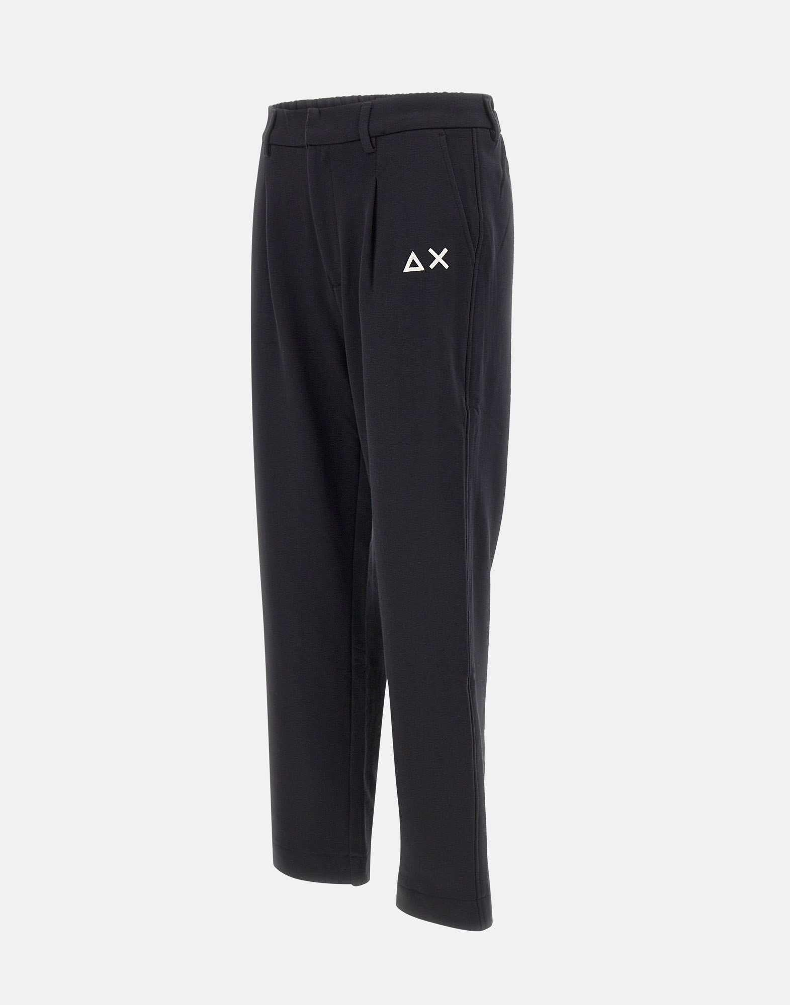 Pantaloni Sun68 "Formal Sweatpants Basic" in morbido misto cotone colore nero, uniscono comfort e stile raffinato. Presentano pinces frontali, elastico sul retro della vita con passanti per cintura, e chiusura con zip nascosta per un look pulito e contemporaneo. Dotati di tasche sui fianchi, logo SUN68 ricamato e fondo da 20 cm, offrono una vestibilità regular fit ideale per outfit casual eleganti.