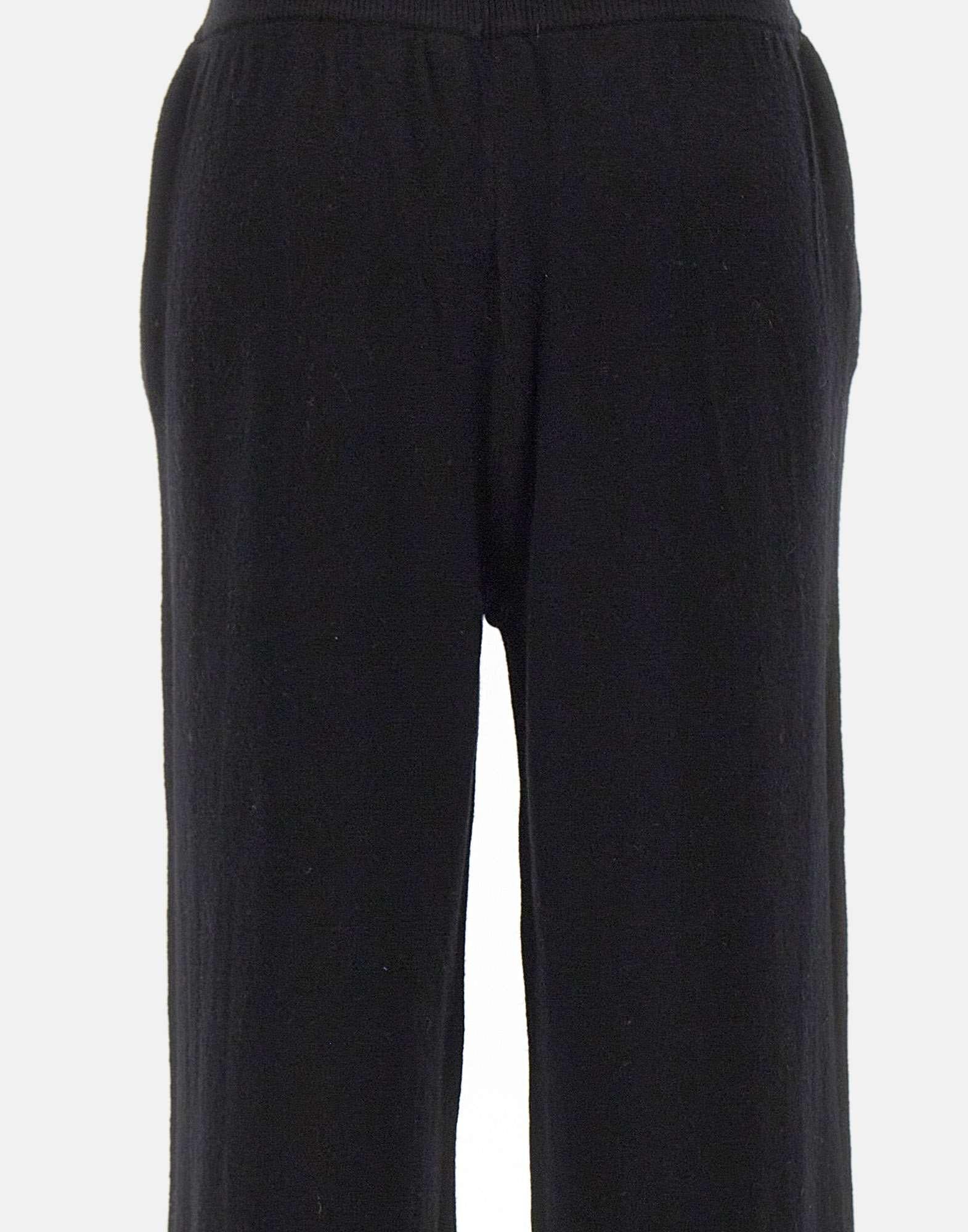 Jogger Kaos coniugano comfort e stile contemporaneo in un capo versatile perfetto per il tempo libero o i look casual di tendenza. Realizzati in morbida lana nera, offrono calore e vestibilità rilassata con una nota sofisticata. Il modello presenta vita elasticata, tasche laterali a filo, e una gamba extra wide con fondo da 30 cm, per un effetto morbido e fluido. I bordi a coste aggiungono struttura e definizione al capo. Il taglio regular fit assicura comfort senza rinunciare allo stile.