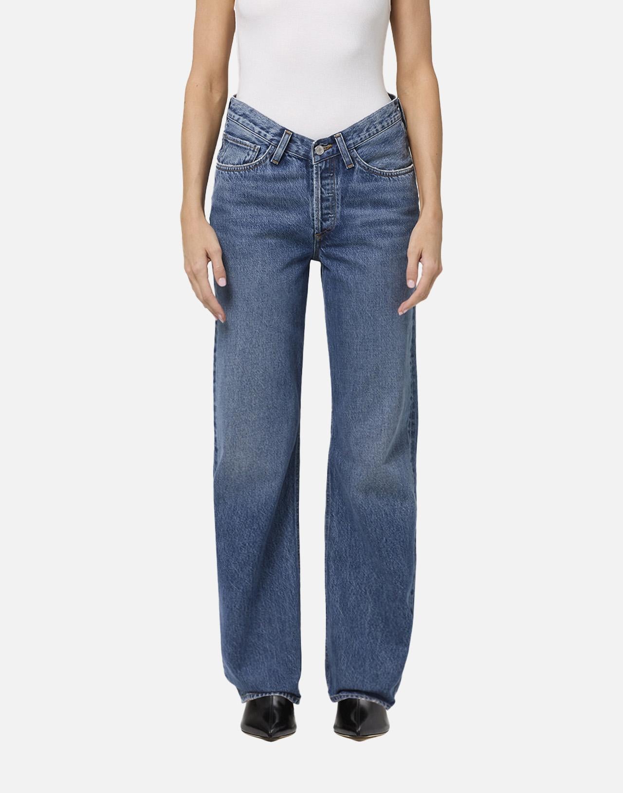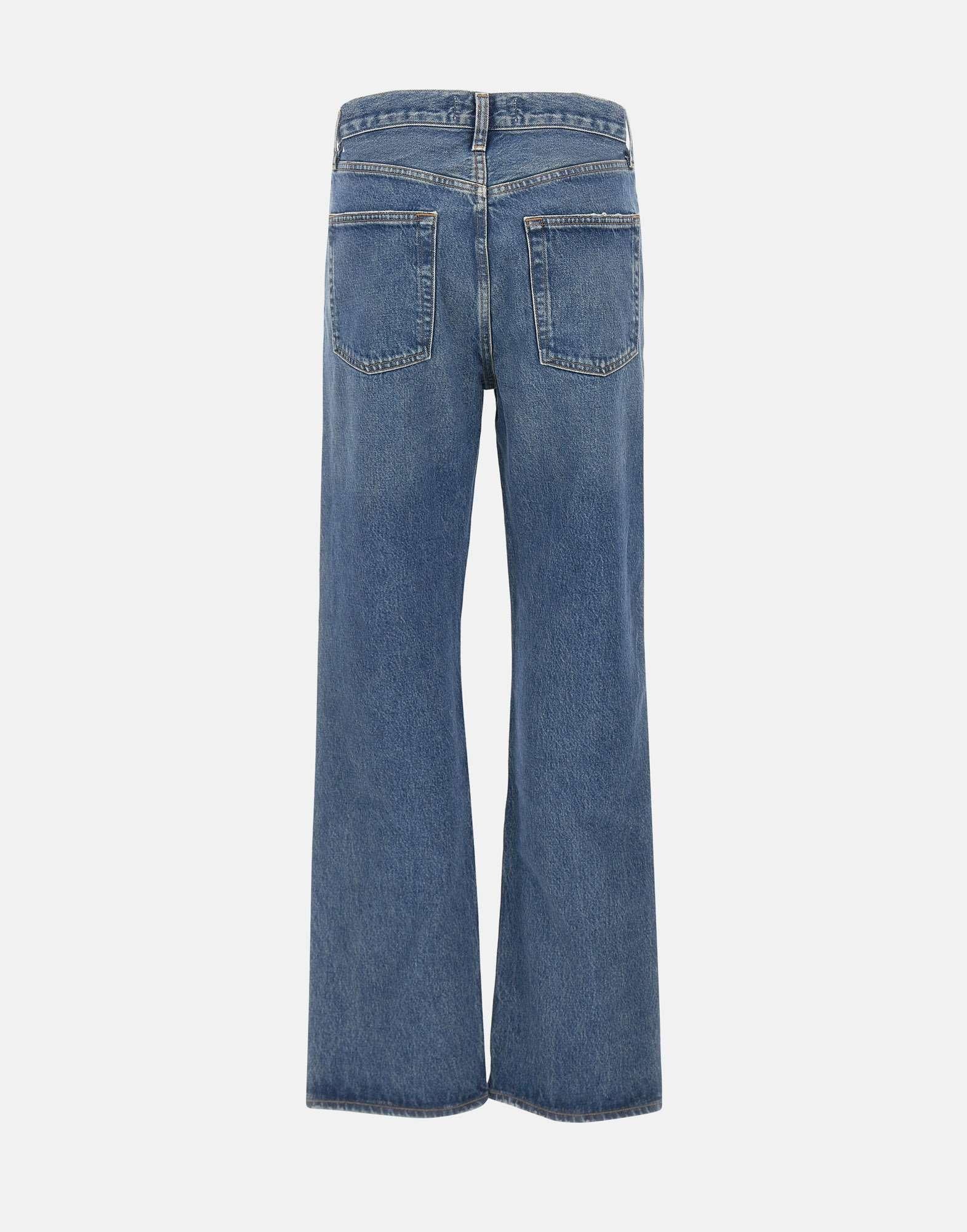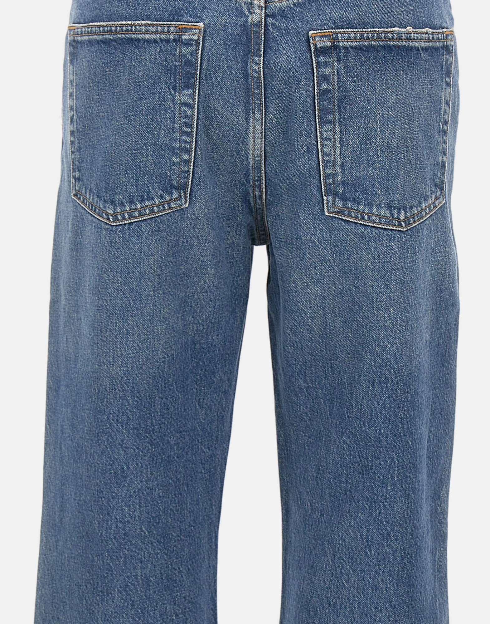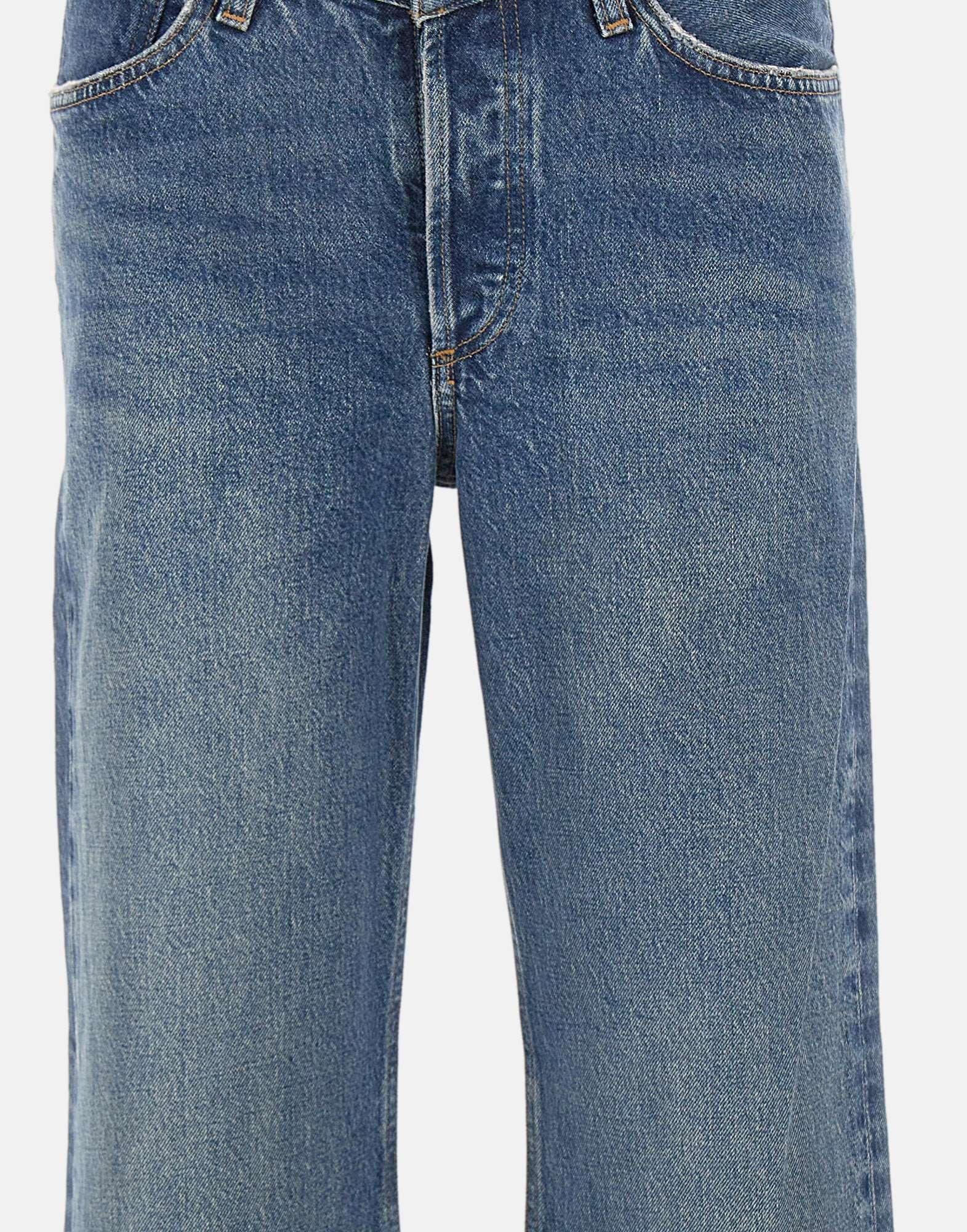 Jeans "Kelly" firmati Agolde uniscono lo stile casual americano a una vestibilità moderna e versatile. Realizzati in denim resistente dal lavaggio blu medio, si caratterizzano per i piccoli dettagli destroyed che aggiungono un tocco vissuto e autentico. Il modello presenta una chiusura con bottoni nascosti, design cinque tasche, passanti per cintura e una linea straight relaxed fit, comoda ma femminile. Il fondo da 22 cm e l’interno gamba da 80 cm (taglia 27) rendono questi jeans perfetti per look quotidiani dal carattere disinvolto ma curato.