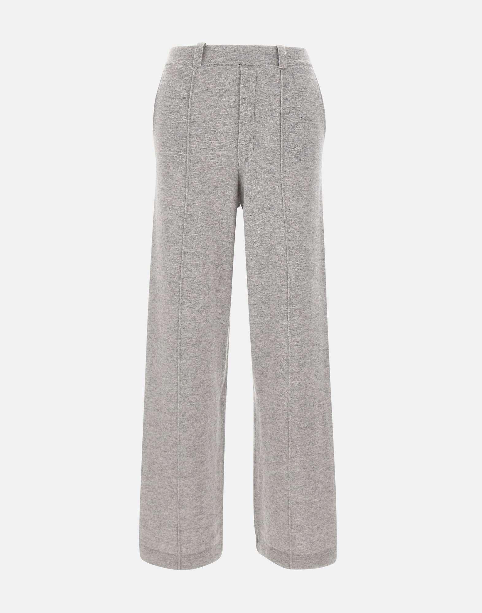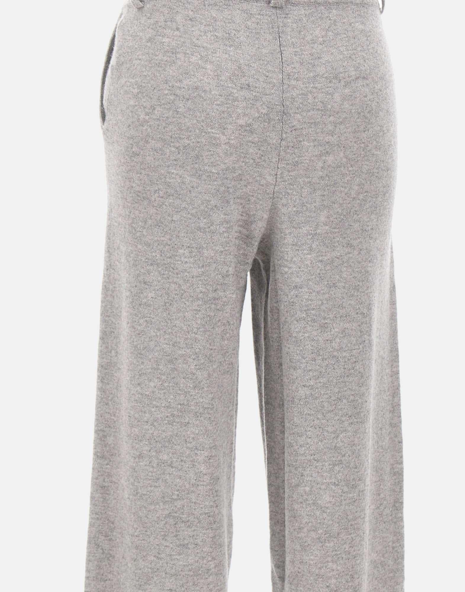 Pantalone donna Sweet Cashmere "Eliana" in 100% puro cashmere, grigio mélange, dal taglio dritto e raffinato. La vita elasticizzata con passanti, le tasche allitaliana e la patta decorativa creano un equilibrio perfetto tra comfort e stile. Le pince frontali aggiungono struttura alla silhouette, rendendo questo pantalone ideale per look casual chic e rilassati. Ampiezza fondo: 22cm.