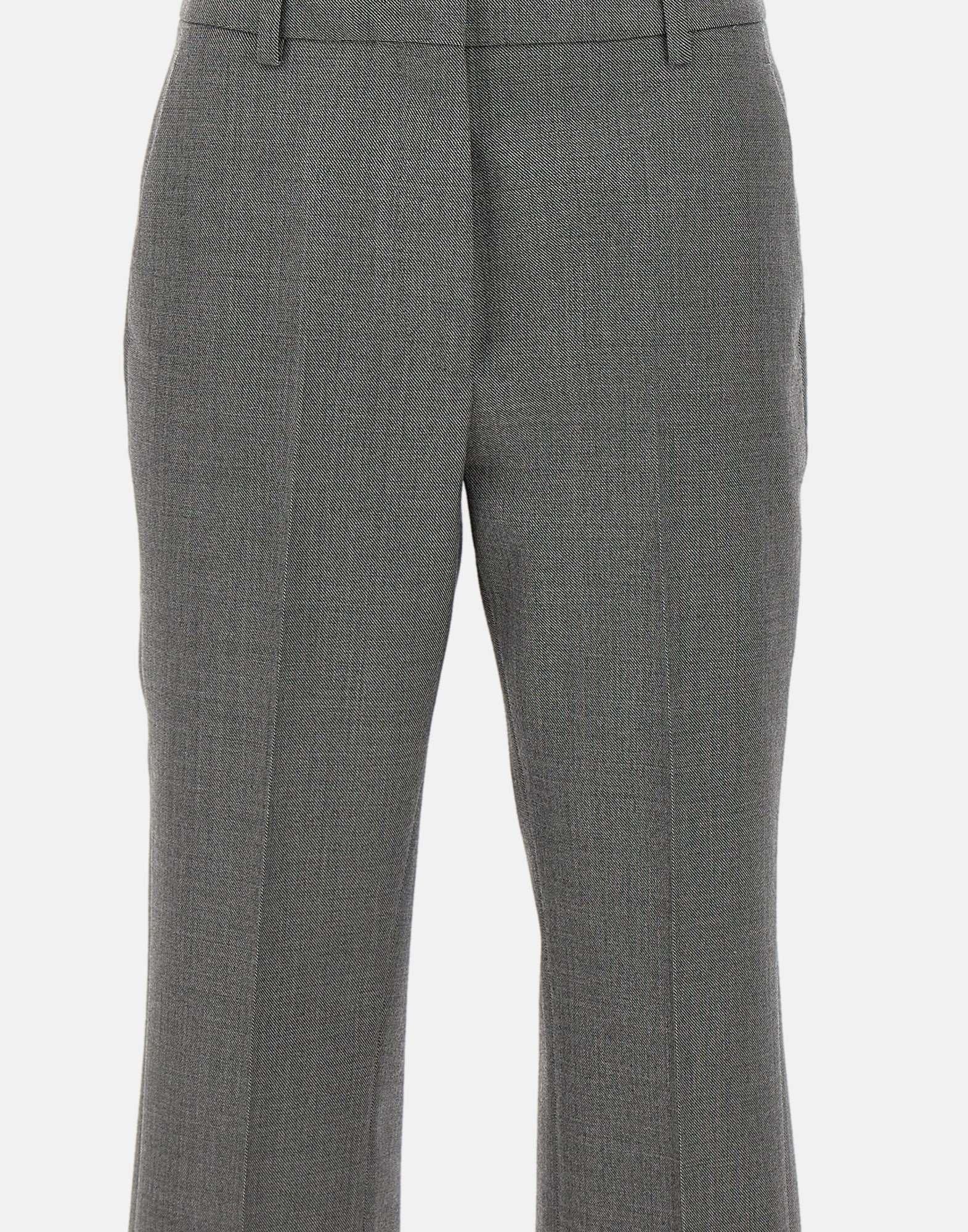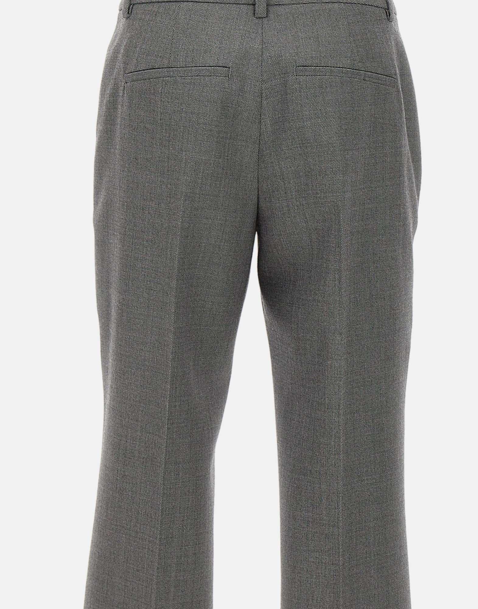Pantalone donna Seafarer "Lucienne" in 100% lana vergine color grigio, dal taglio sartoriale impeccabile. Caratterizzato da pinces frontali, tasche all'italiana e taschini a filetto sul retro, presenta chiusura nascosta con zip e gancetto, passanti per cintura e fondo con taglio vivo per un effetto moderno e pulito. Un capo elegante e versatile, perfetto per look formali o più disinvolti. Made in Italy. Ampiezza fondo: 26cm.