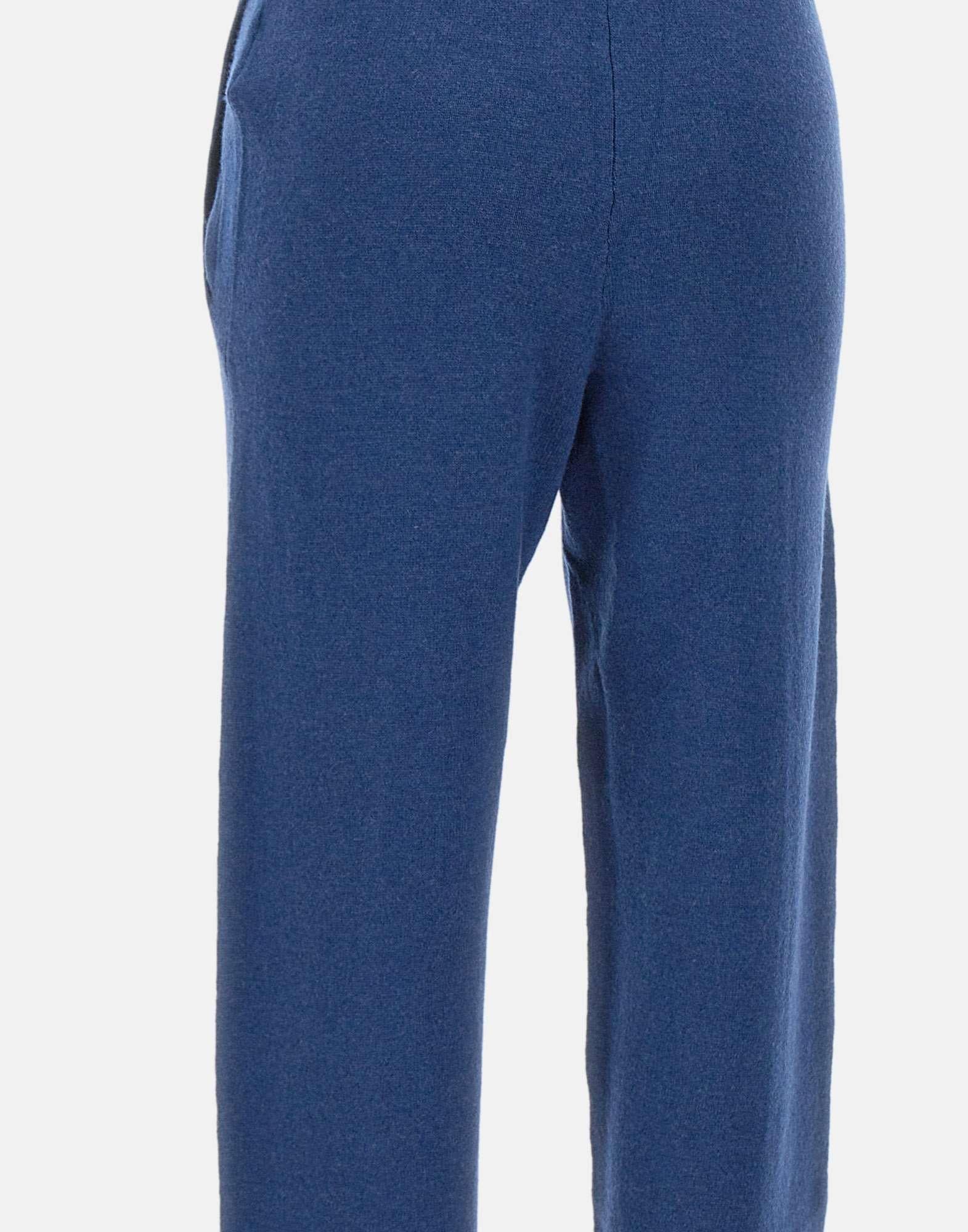 Pantalone donna Not Shy Cashmere "Lupe" in misto cashmere blu, dal taglio dritto e raffinato. La vita elasticizzata e le tasche all’italiana garantiscono comfort. Le pince frontali aggiungono struttura alla silhouette, rendendo questo pantalone ideale per look casual chic e rilassati. Ampiezza fondo: 15cm.