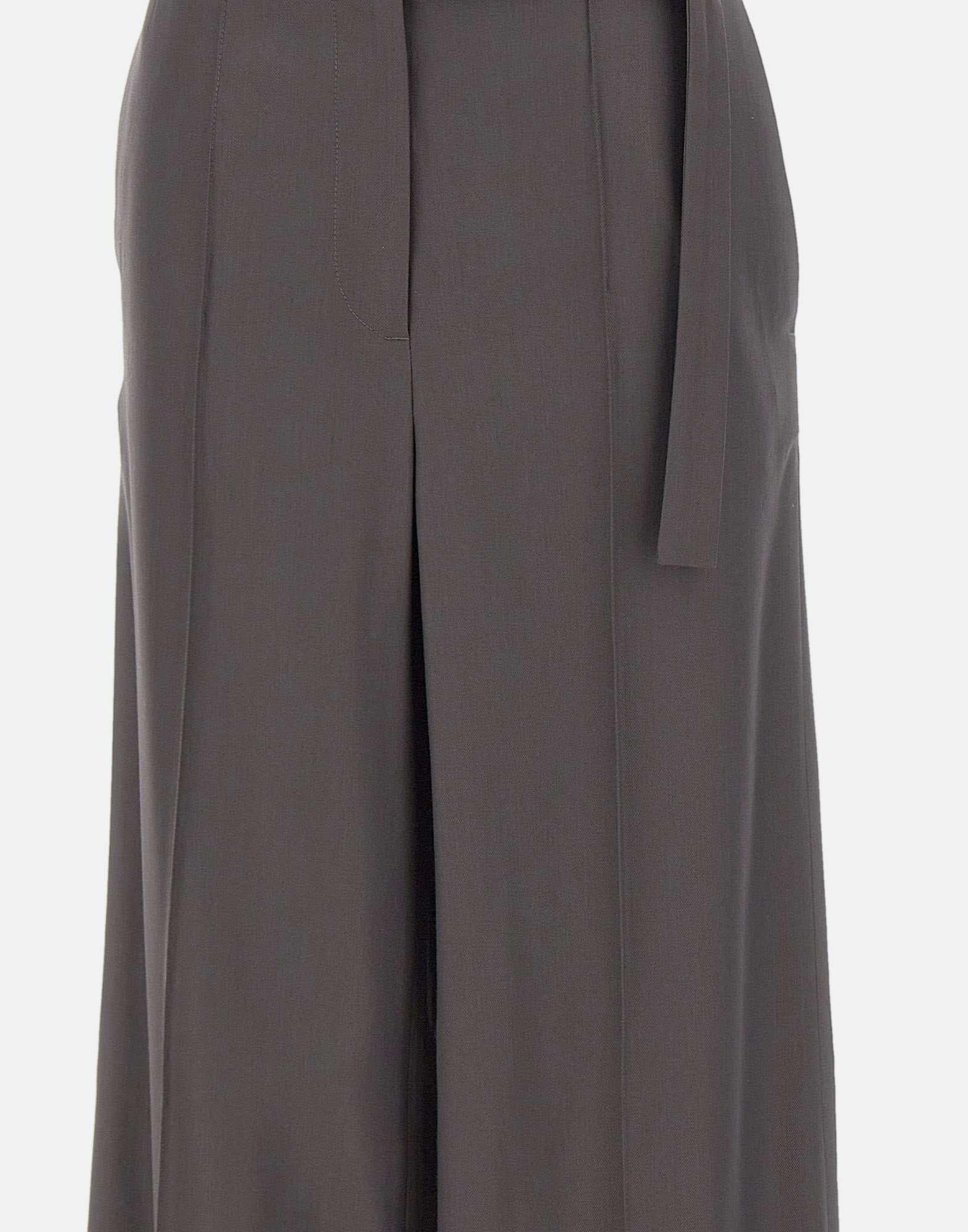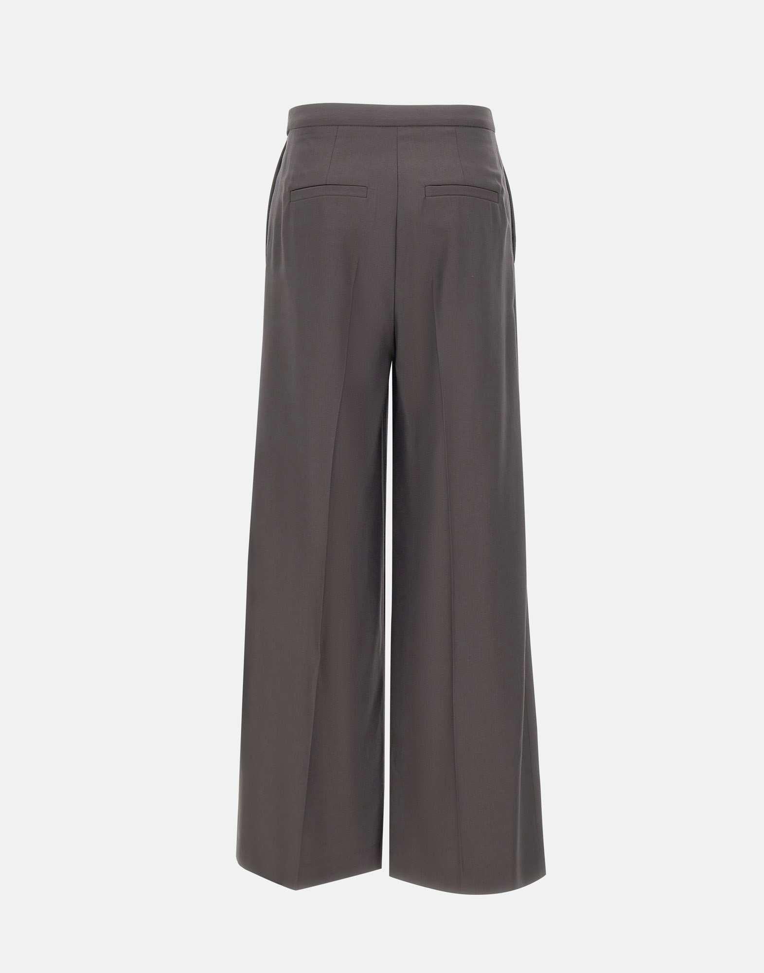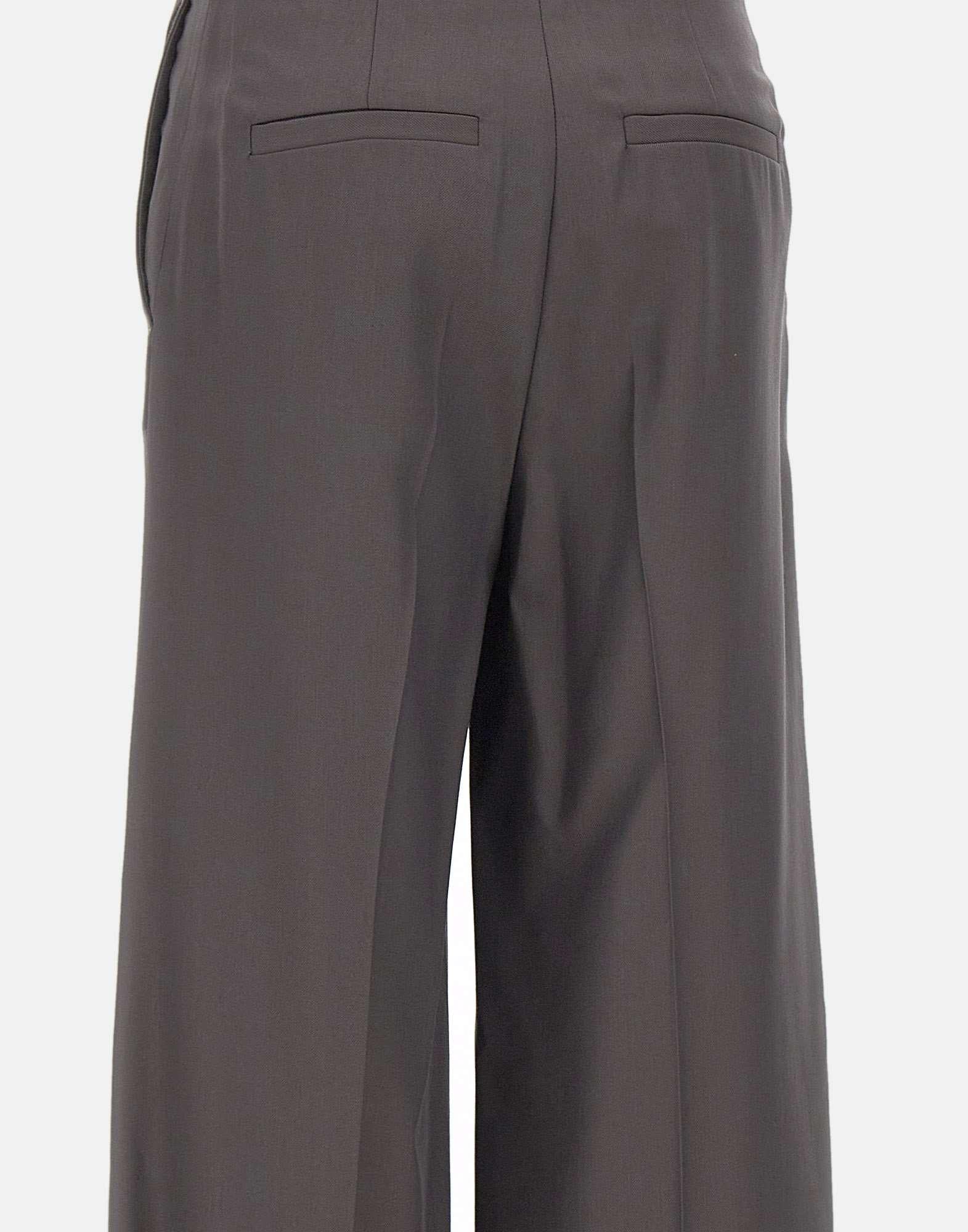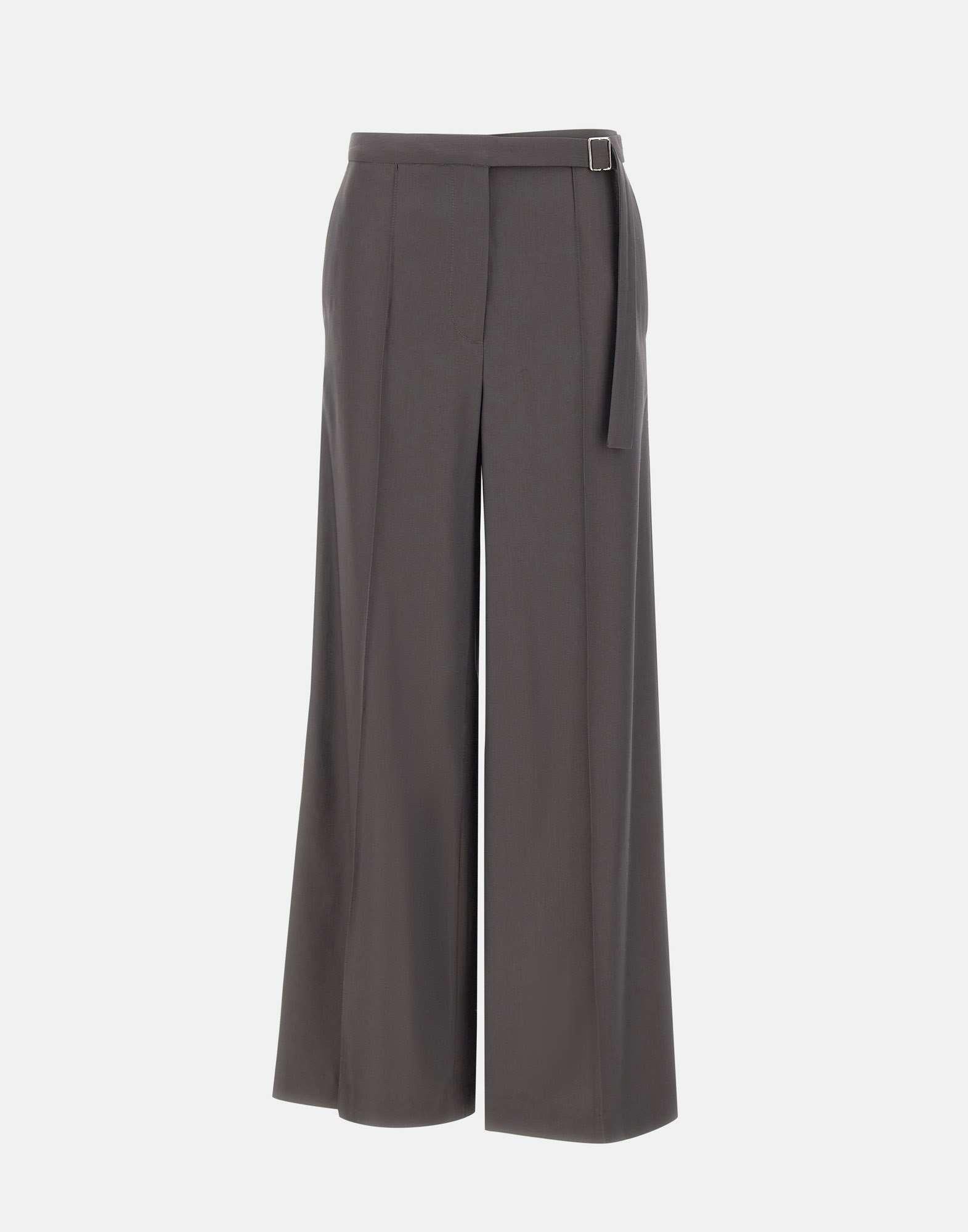 Pantalone donna Loulou de Saison "Pratt" in misto lana, mohair e viscosa color grigio, dal taglio sartoriale e moderno. Caratterizzati da vita media e gambe ampie con pinces frontali, offrono un fit elegante e disinvolto. La chiusura con cerniera e la cintura con fibbia integrata valorizzano la linea, mentre il fondo ampio da 33 cm conferisce un look contemporaneo e sofisticato.