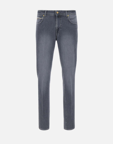 Jeans uomo Briglia 1949 "Ribot-L" in denim color grigio con leggere schiariture, parte della DNM Collection. Il modello cinque tasche presenta passanti per cintura, chiusura con bottone logato e zip, patch logo in pelle sul retro e un fondo da 17 cm che valorizza la linea slim fit. Un jeans versatile e contemporaneo, adatto a look quotidiani con un tocco di stile. Made in Italy.