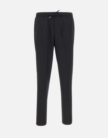 Pantalone uomo Briglia 1949 "Wimbledonol" in crepe stretch color clabk, parte della linea Racconta la Sartoria. Presentano vita regolare elasticata con coulisse in tinta e finalini gold, tasche laterali a filetto e tasche posteriori monofiletto. La linea slim fit crea una silhouette essenziale e moderna, completata da un fondo da 16 cm. Lavaggio a mano. Made in Italy.