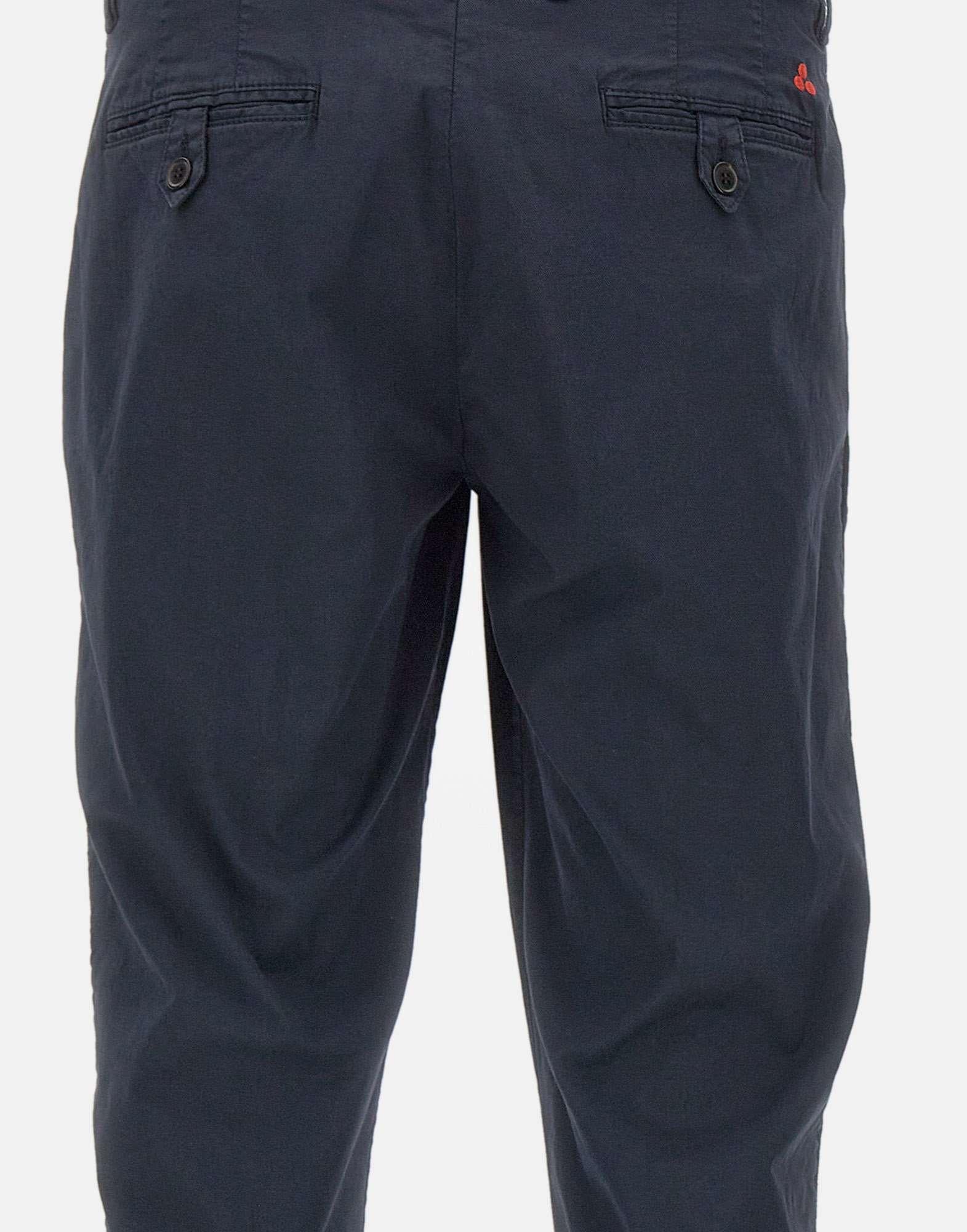 Pantaloni uomo Peuterey "Hoy" realizzati in cotone color blu scuro, modello a gamba dritta con piega stirata sul davanti e pinces cucite in vita sul retro per una linea pulita e curata. Presentano tasche anteriori all'italiana e tasche posteriori a filetto con bottone, passanti per cintura e chiusura con zip e bottone, dettagli pensati per un look versatile e contemporaneo. Sul retro, il logo ricamato in rosso aggiunge una firma discreta e riconoscibile. Ampiezza fondo: 18 cm. Vestibilità regular fit. Made in Italy.