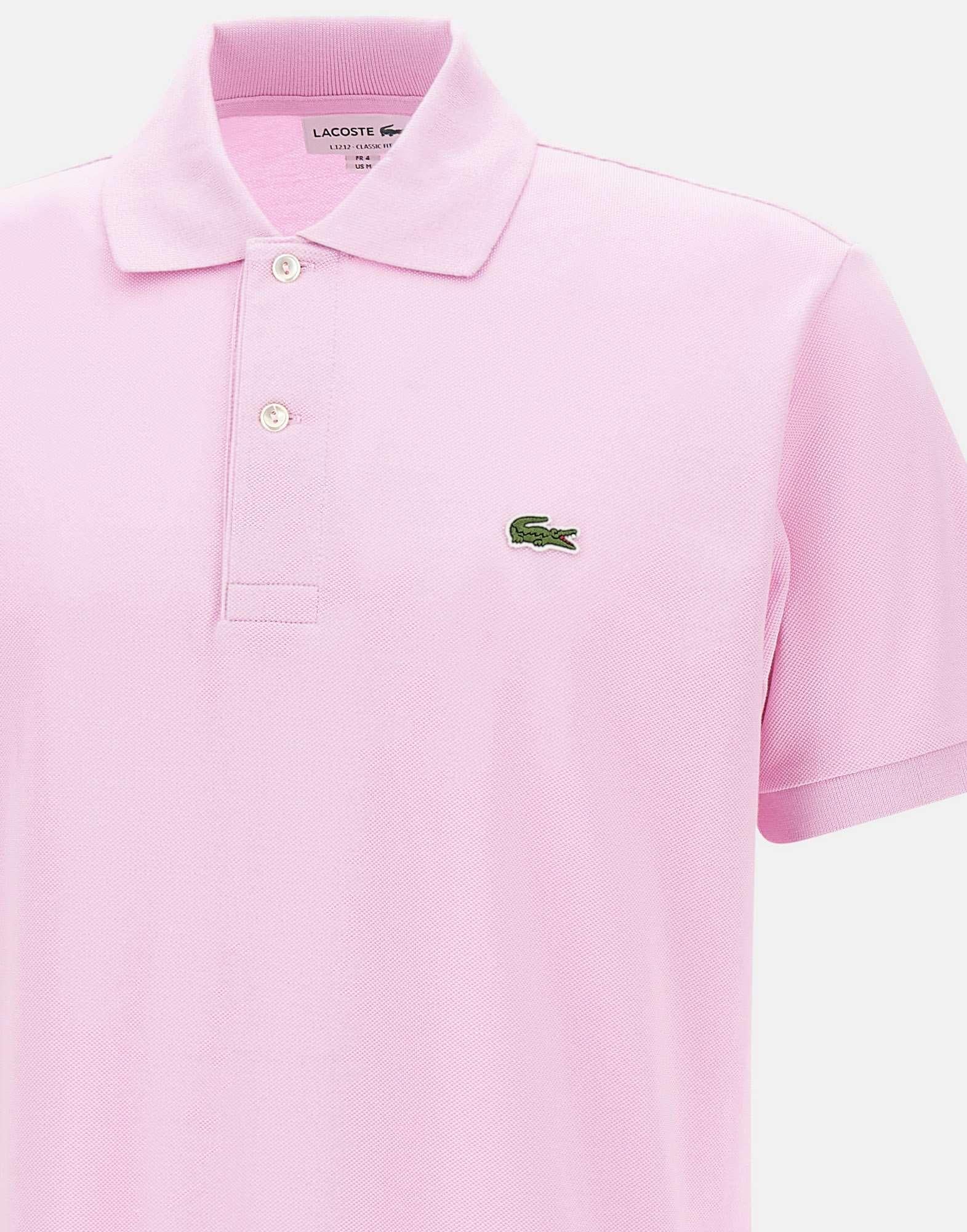 Polo uomo Lacoste in cotone piquet color rosa, un classico essenziale dallo stile pulito e versatile. Il modello a maniche corte presenta collo classico e orli delle maniche a costine, chiusura con bottoni per una finitura ordinata. L'iconico logo sul petto completa il design con una firma riconoscibile. Classic fit.