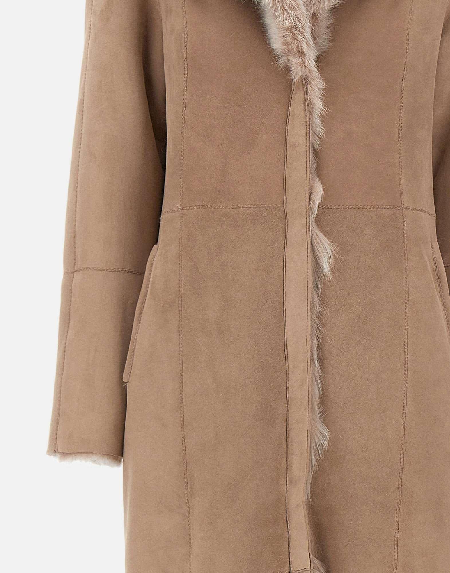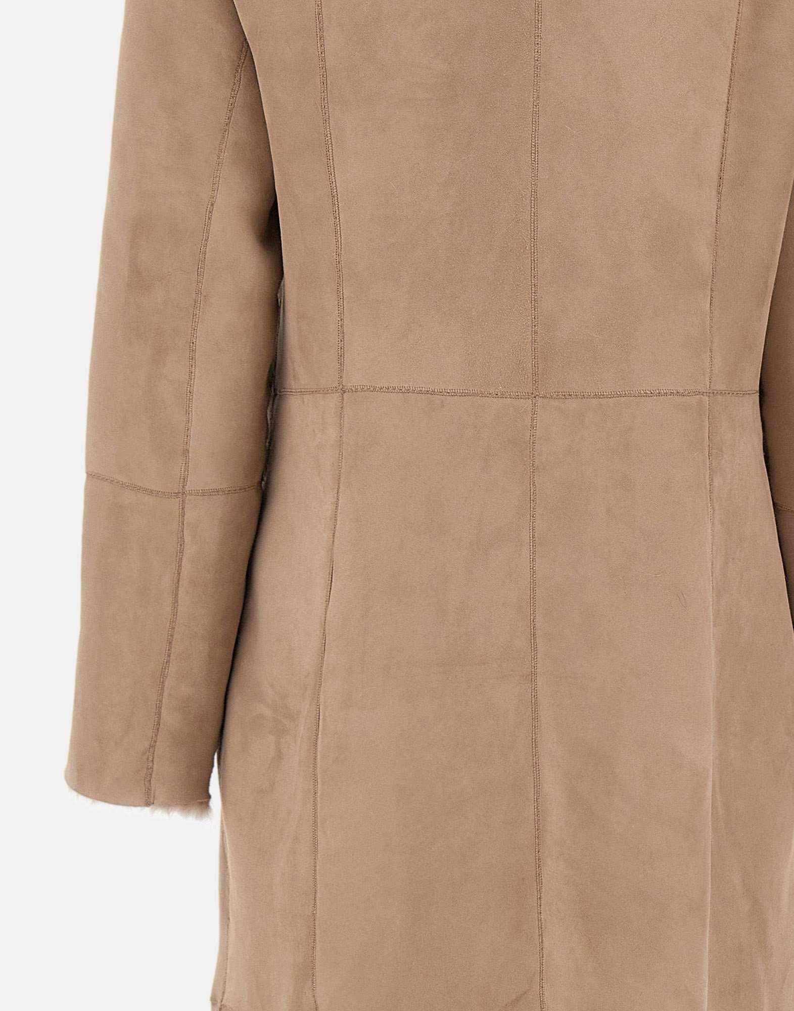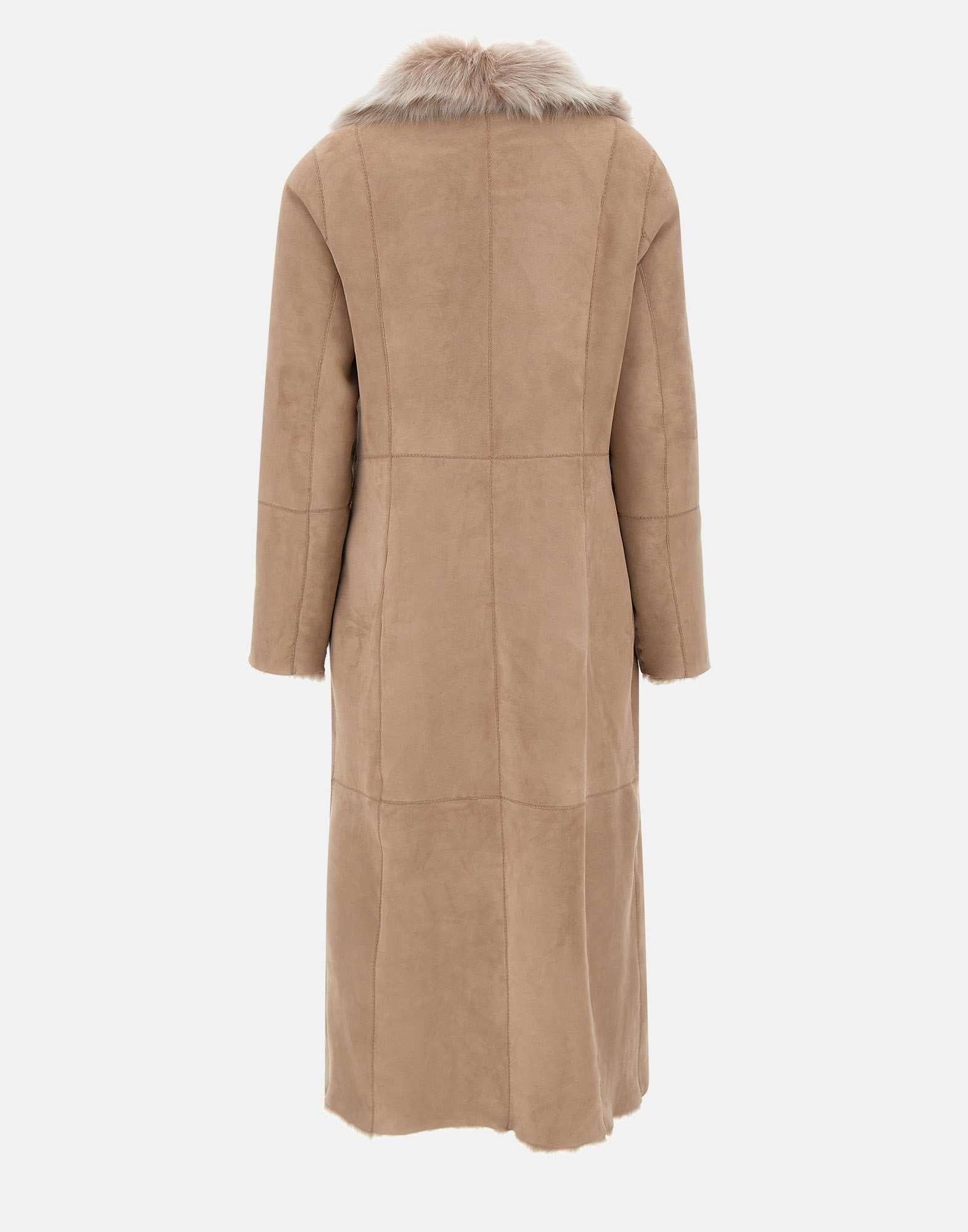 Cappotto donna Hiso "Maeve" beige, reversibile in suède e montone per uno stile raffinato e funzionale. La costruzione permette di passare con naturalezza da un lato in morbido shearling a un lato in elegante suede, offrendo massima versatilità tra quotidiano e doposci di lusso. Il design presenta colletto a lancia oversize, spalle scese per una maggiore libertà di movimento, tasche a filetto e chiusura frontale a scatto. Vestibilità regolare sul lato in montone, più aderente sul lato suède.