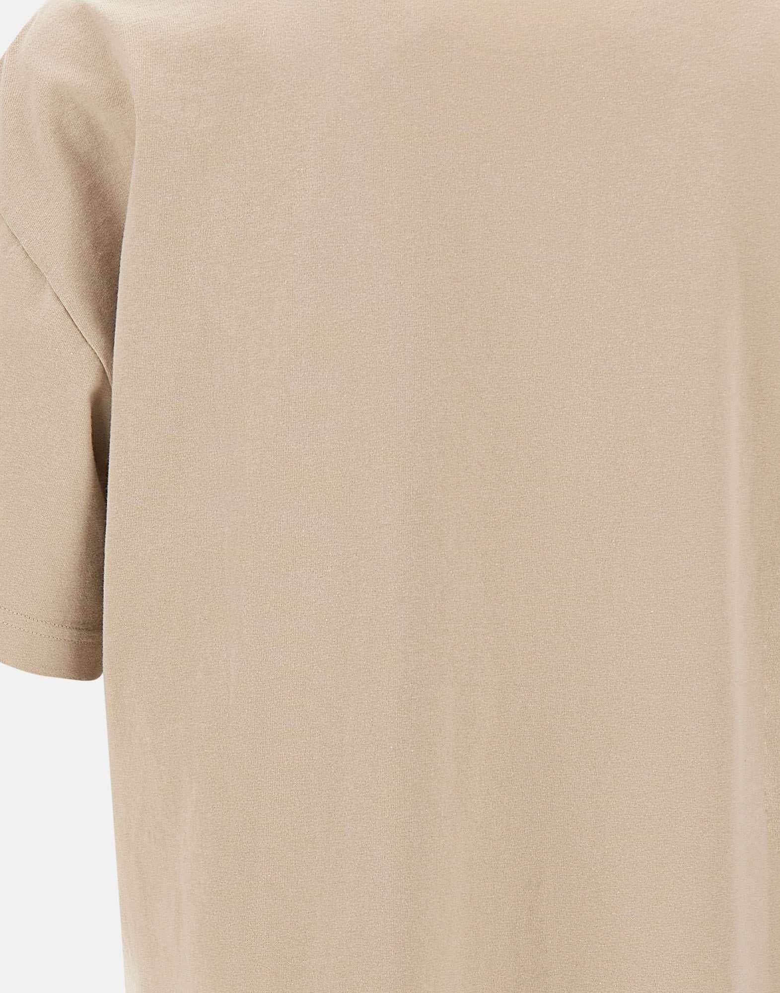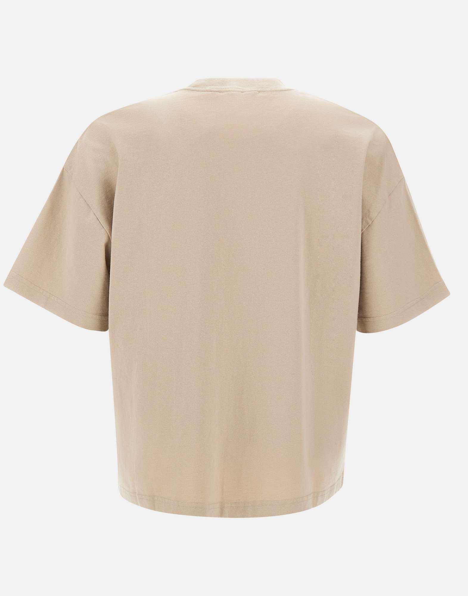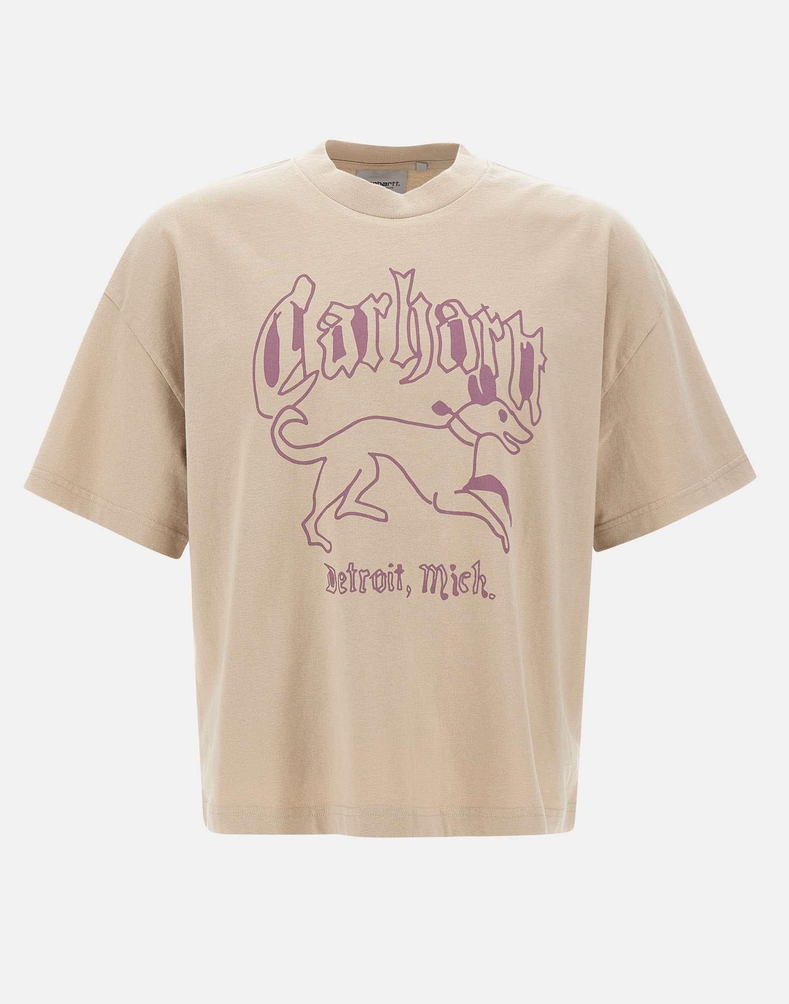 T-shirt uomo Carhartt WIP "S/S Hackwork" in jersey di cotone medio peso color beige sabbia, trattata con lavaggio a pietra per un effetto vissuto. Presenta maniche corte, girocollo e stampa grafica a contrasto sul fronte. La vestibilità boxy loose fit assicura un look rilassato e contemporaneo, in perfetto stile Carhartt.