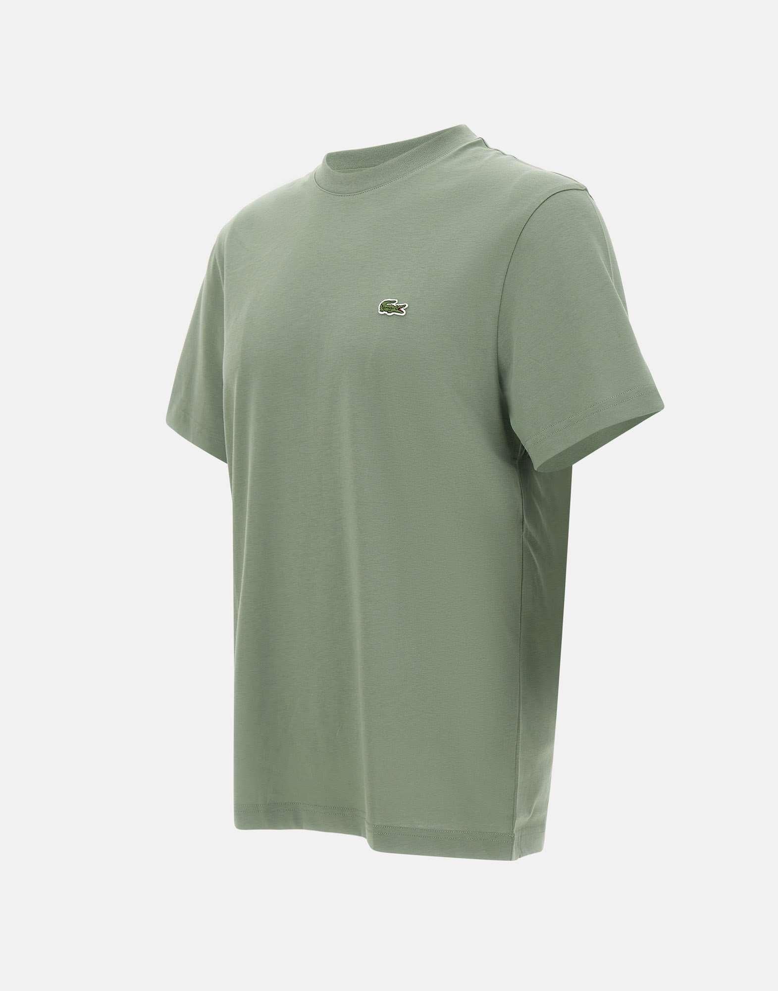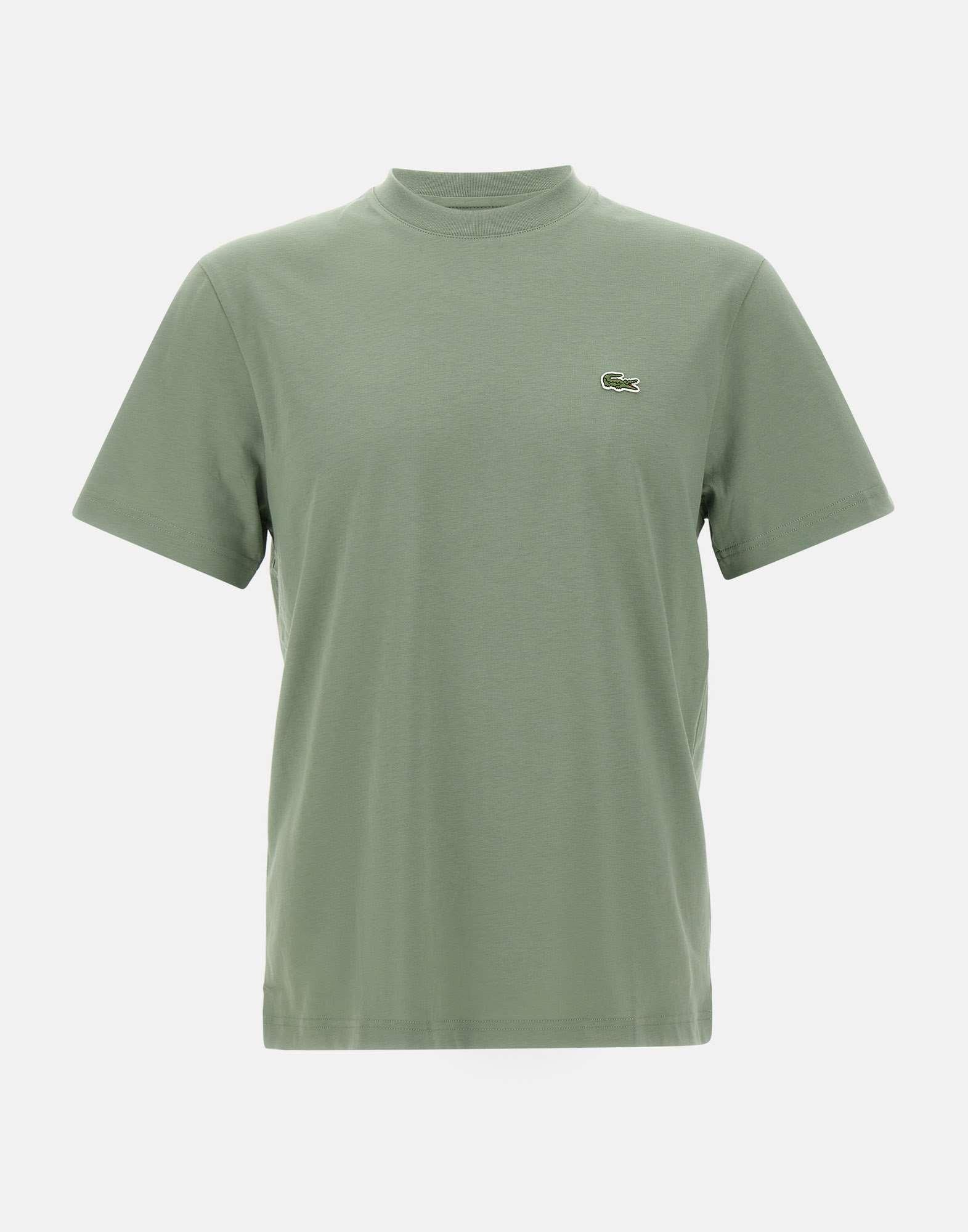 T-shirt uomo Lacoste in morbido cotone verde media pesantezza 180 g/m², dal design essenziale e intramontabile. Presenta maniche corte, girocollo a costine e liconico coccodrillo ricamato sul petto. Un capo versatile, perfetto per look casual e sportivi. Classic fit.