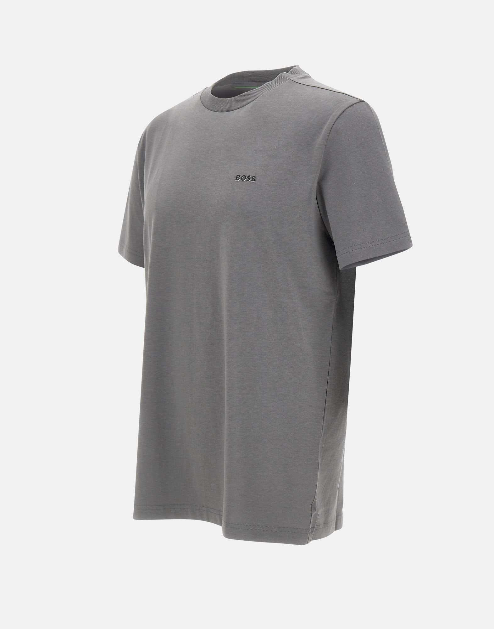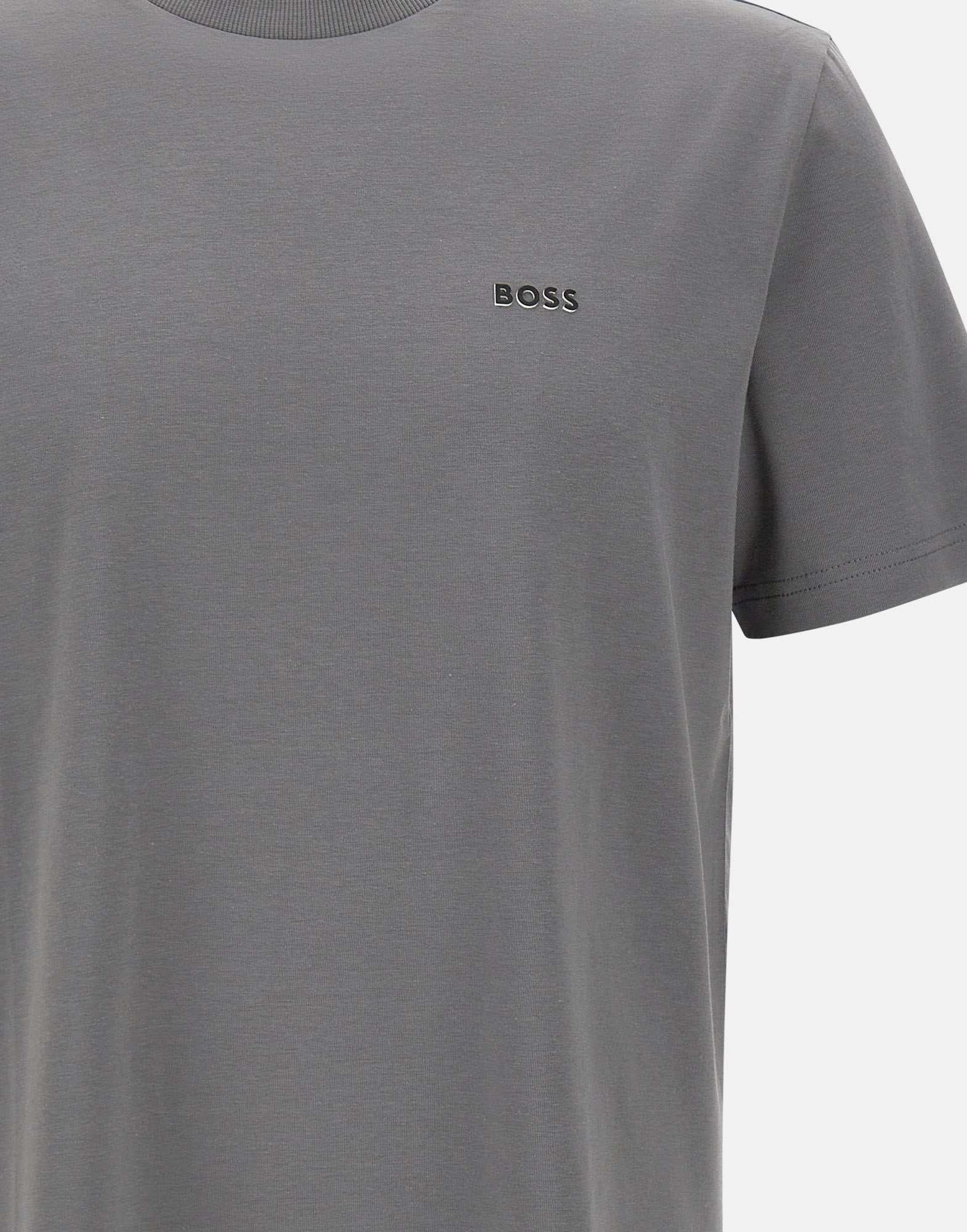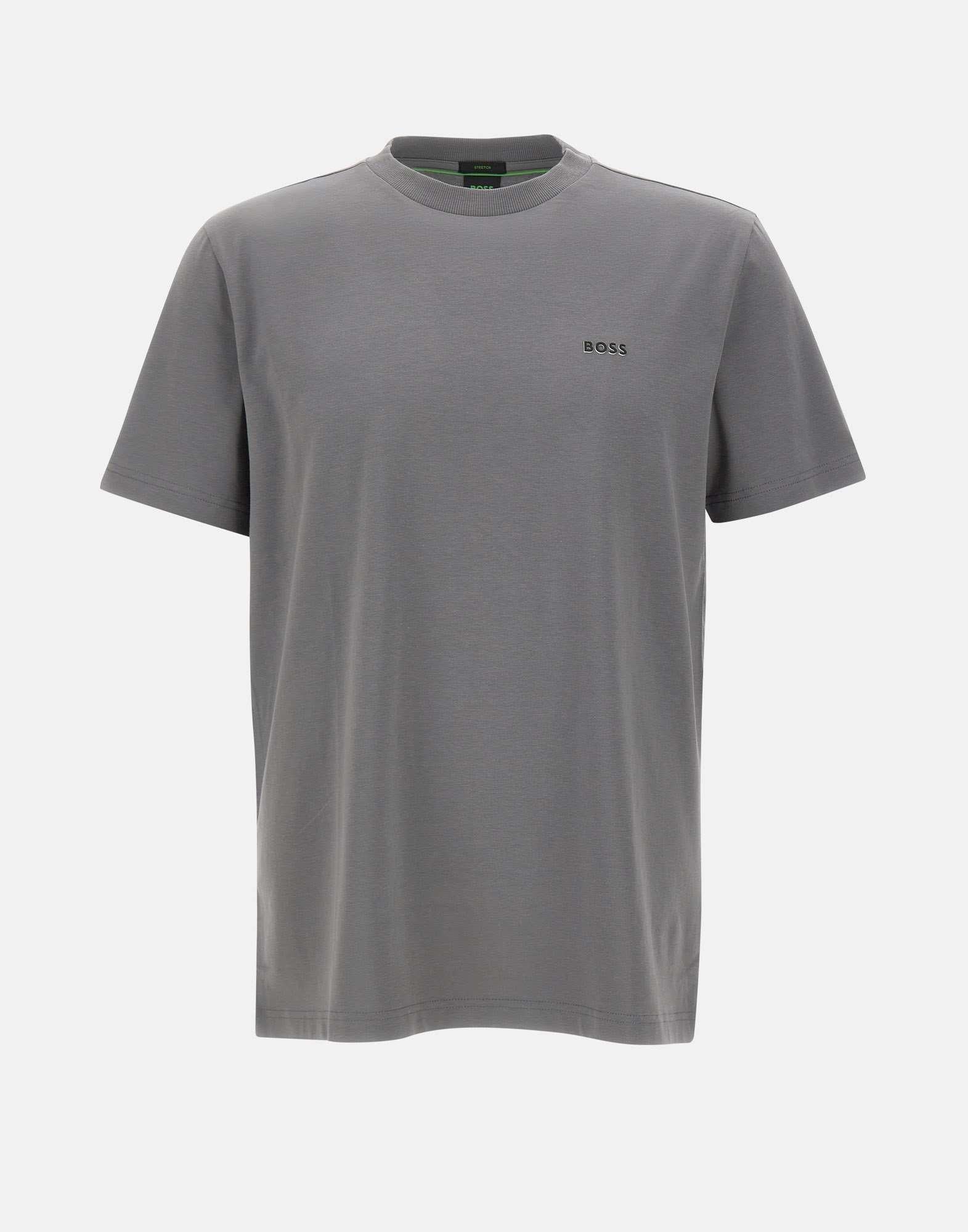 T-shirt uomo Boss "Tee" in cotone stretch color grigio, dal design essenziale e contemporaneo. Presenta maniche corte, girocollo a costine e logo sul petto. La vestibilità regular fit garantisce comfort e versatilità, ideale per completare look casual o sportivi con lo stile distintivo del brand.