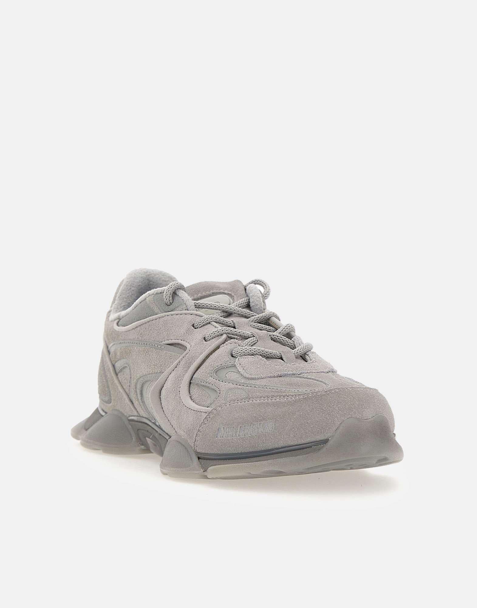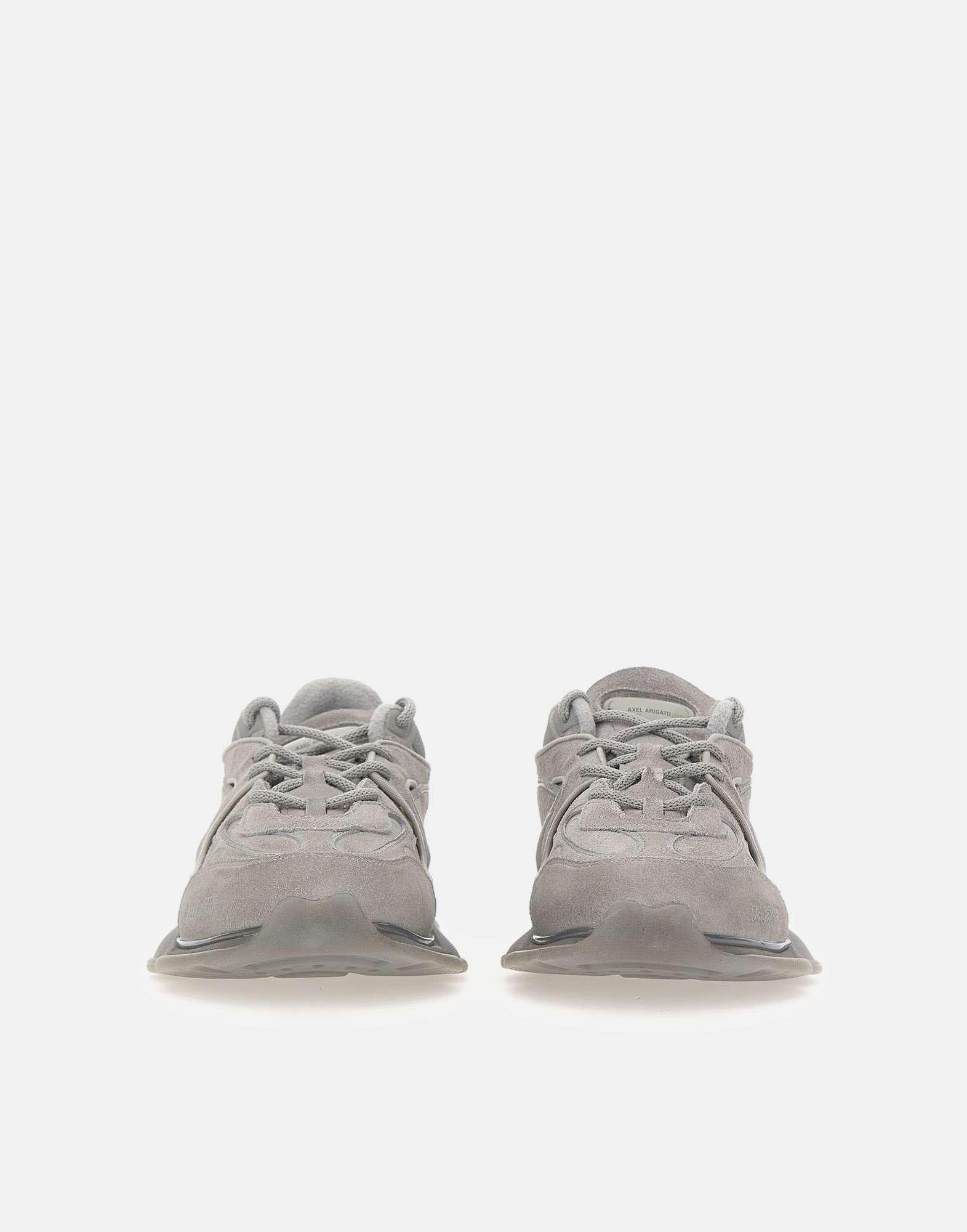 Sneakers uomo Axel Arigato "Eris" in pelle scamosciata grigia, simbolo dell'unione tra artigianalità d'eccellenza e design sperimentale. Realizzata a mano con 36 pannelli singoli intrecciati in pelle e suede, presenta una silhouette dal profilo basso con suola in gomma sovraproporzionata alta 2,5 cm, che si estende oltre la tomaia creando un contrasto visivo audace. I lacci rotondi con aghi rivestiti in silicone e la linguetta con bolla logata aggiungono dettagli distintivi. Ogni paio, completamente saturato in una singola tonalità e invecchiato a mano, è unico e irripetibile.