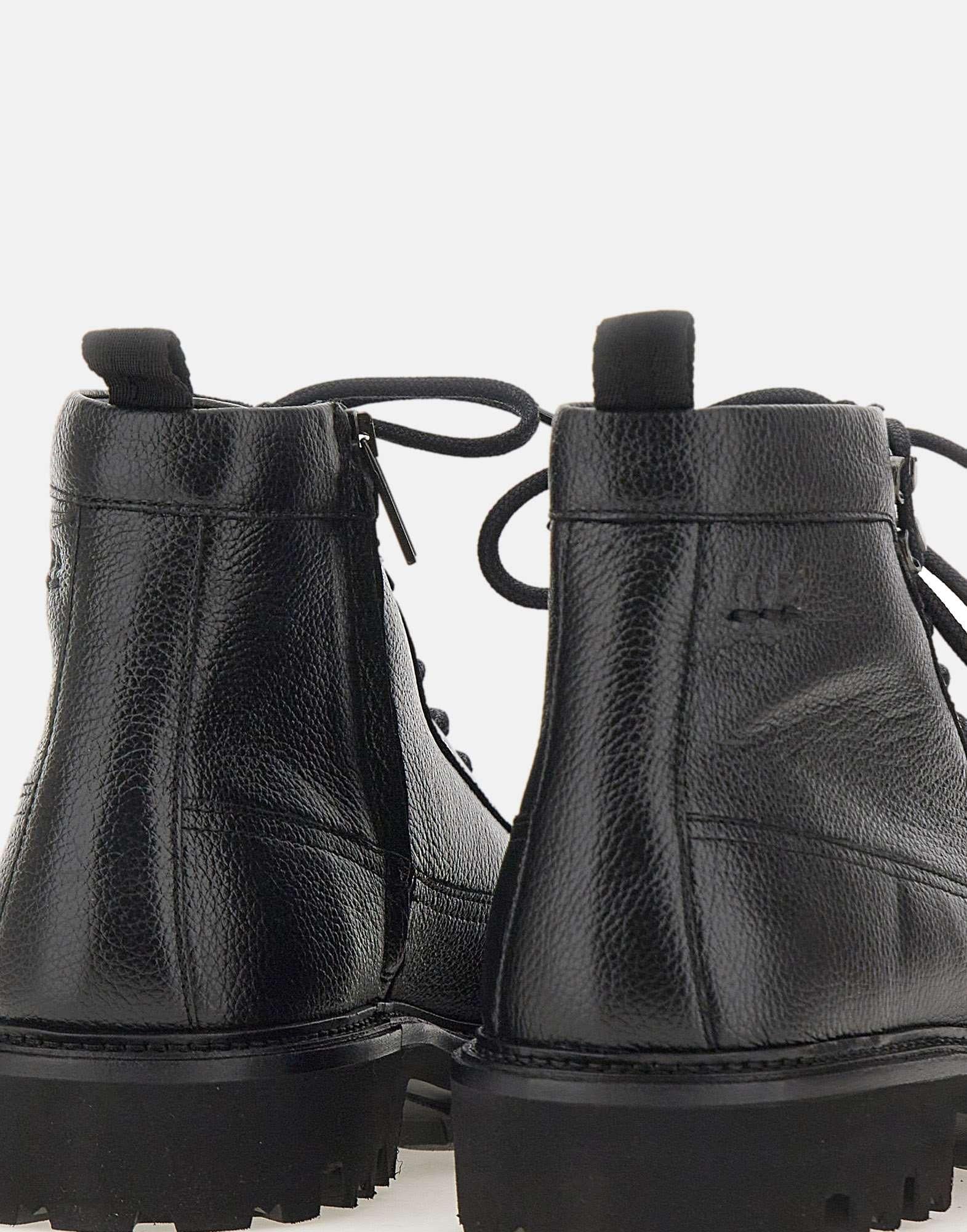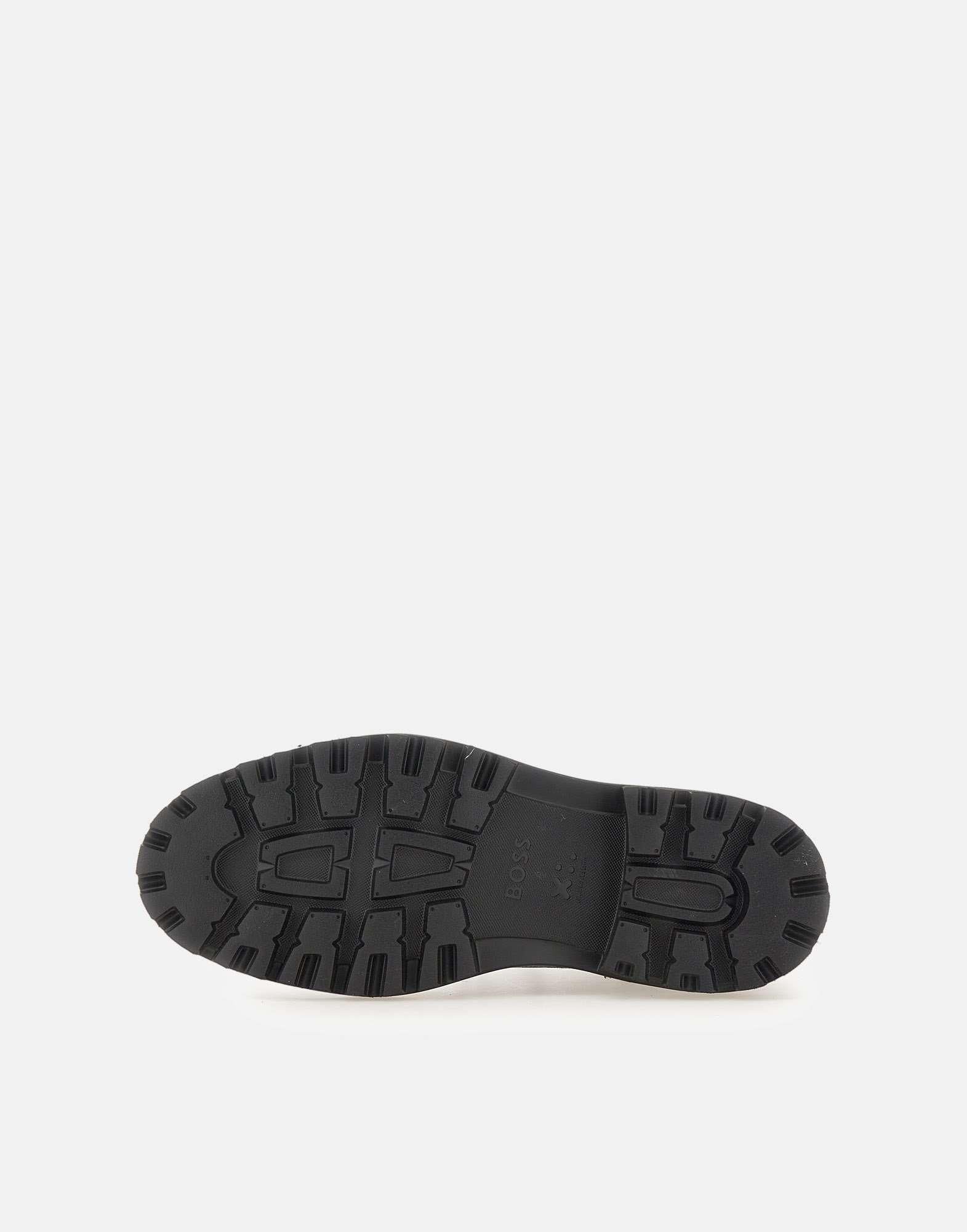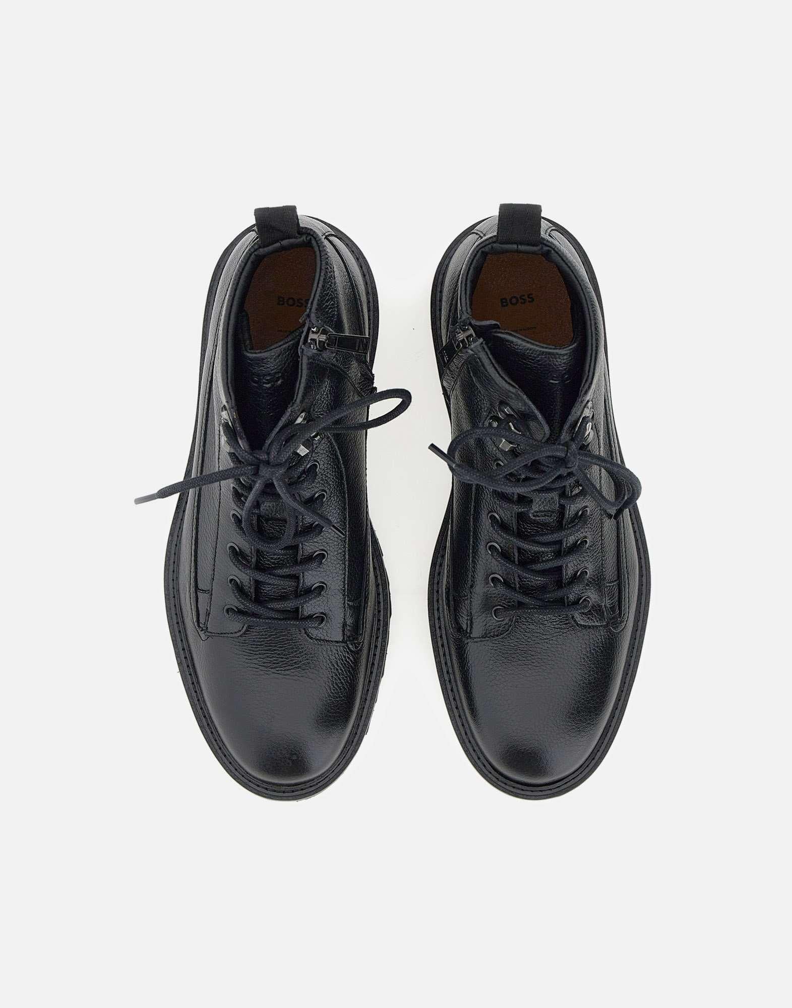 Stivali uomo Boss "Julyo Halb" in pelle martellata nera, caratterizzati da un sistema di allacciatura ispirato all’escursionismo per una calzata comoda e sicura. Dettagli con logo tono su tono, tirante posteriore e lacci coordinati per un look funzionale ed elegante. La suola con carrarmato e il tacco di 4 cm assicurano grip e stabilità. Perfetti per completare look casual o smart casual con un tocco moderno. Calzata regolare.