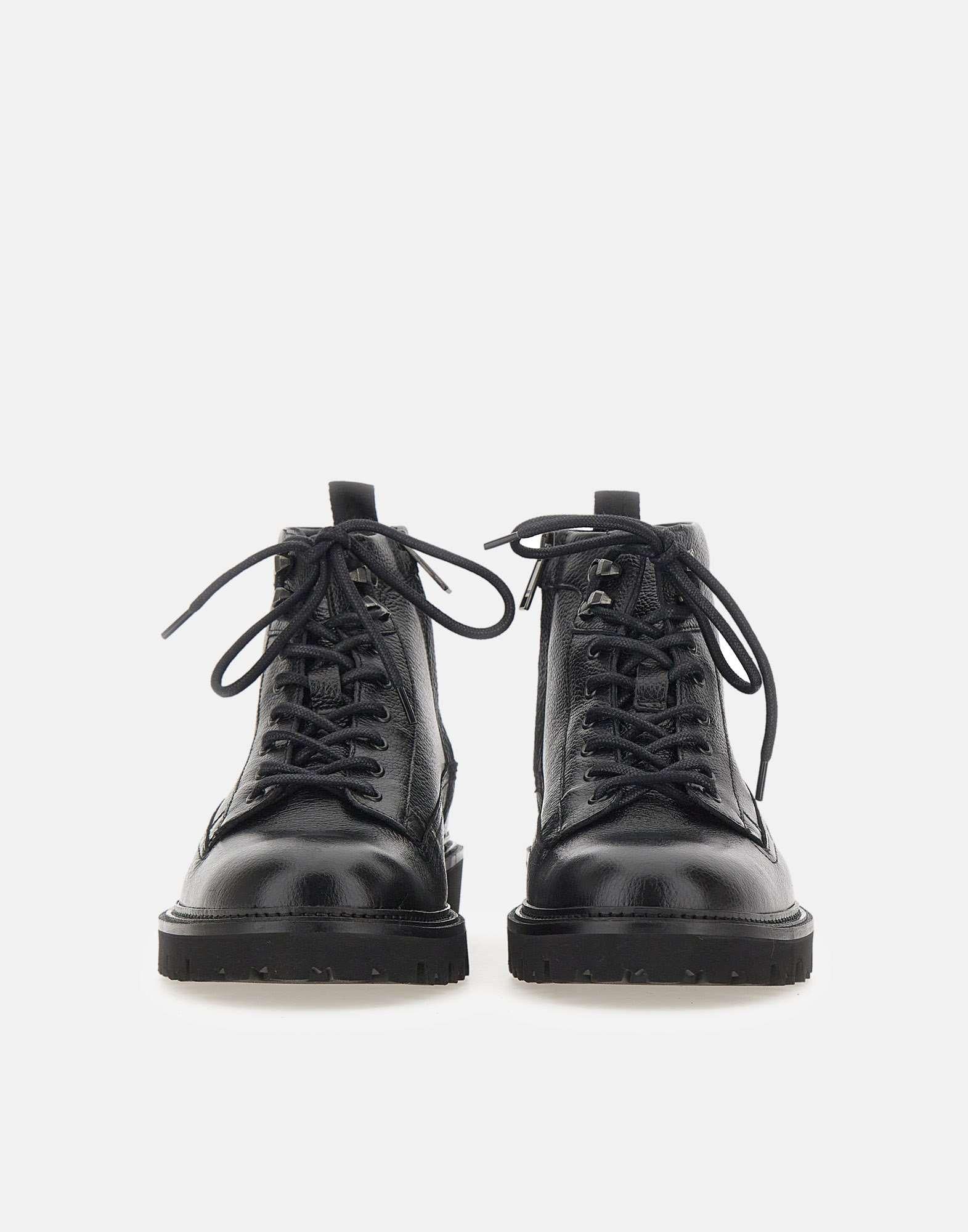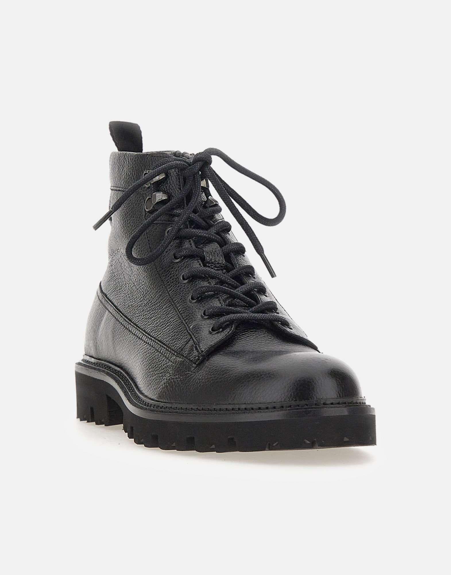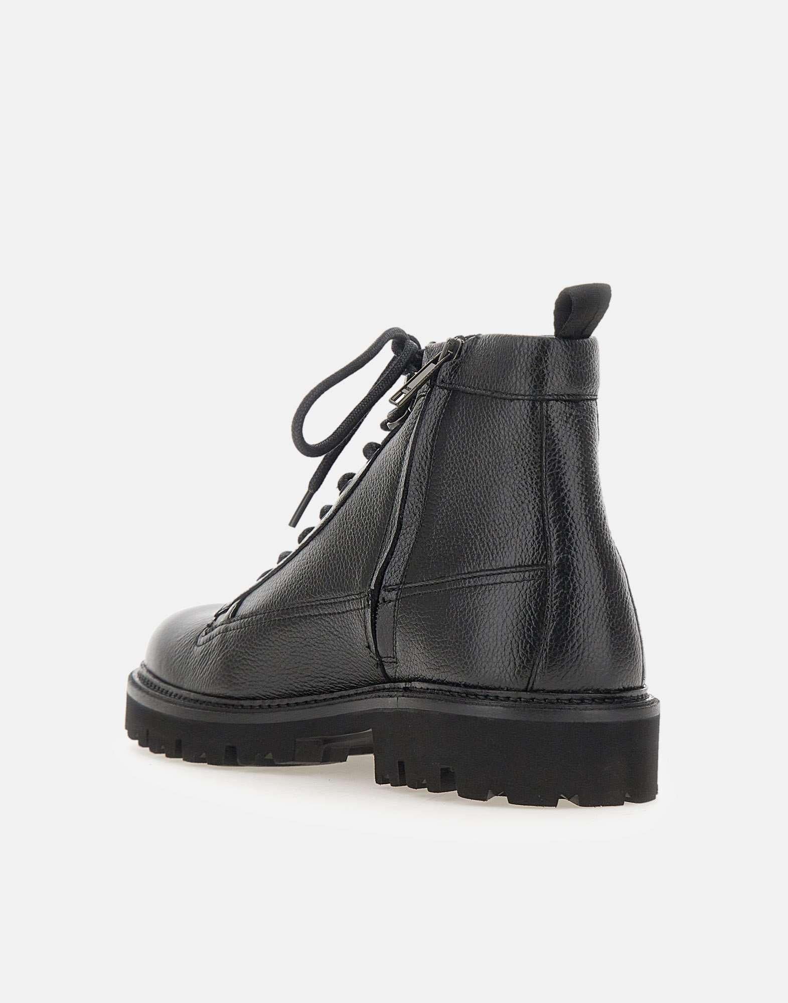 Stivali uomo Boss "Julyo Halb" in pelle martellata nera, caratterizzati da un sistema di allacciatura ispirato all’escursionismo per una calzata comoda e sicura. Dettagli con logo tono su tono, tirante posteriore e lacci coordinati per un look funzionale ed elegante. La suola con carrarmato e il tacco di 4 cm assicurano grip e stabilità. Perfetti per completare look casual o smart casual con un tocco moderno. Calzata regolare.