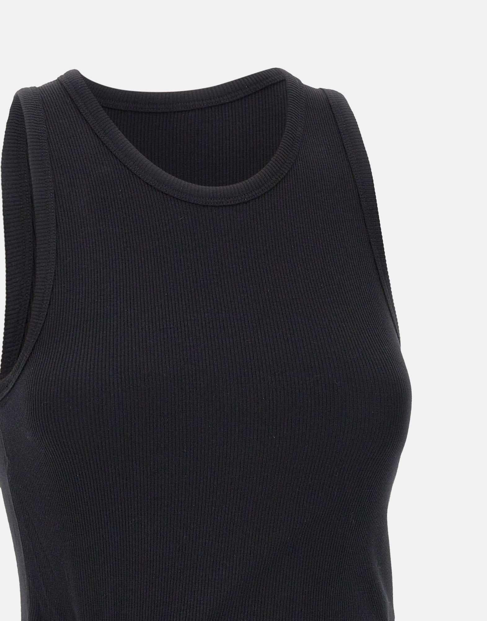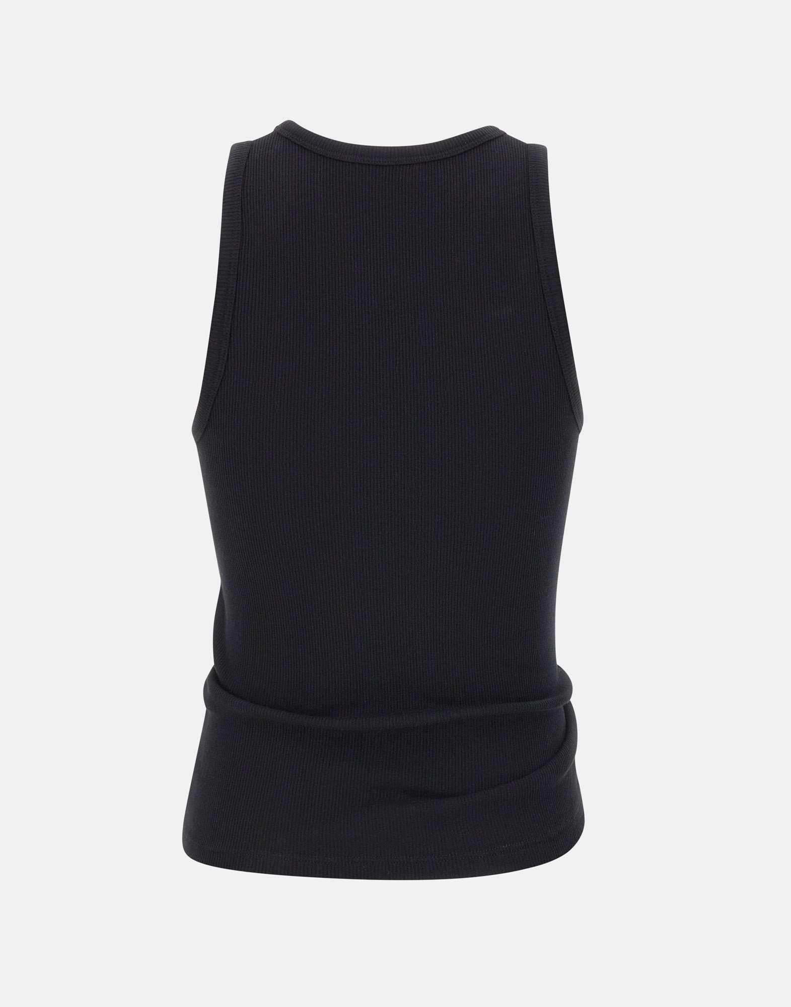 "Asymmetrical tank top" Rabanne in cotone, nero, girocollo, trama a costine, dettaglio piercing sul fondo, regular fit.