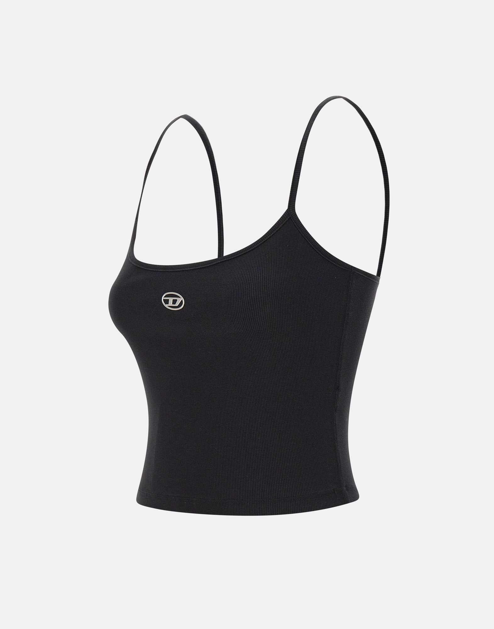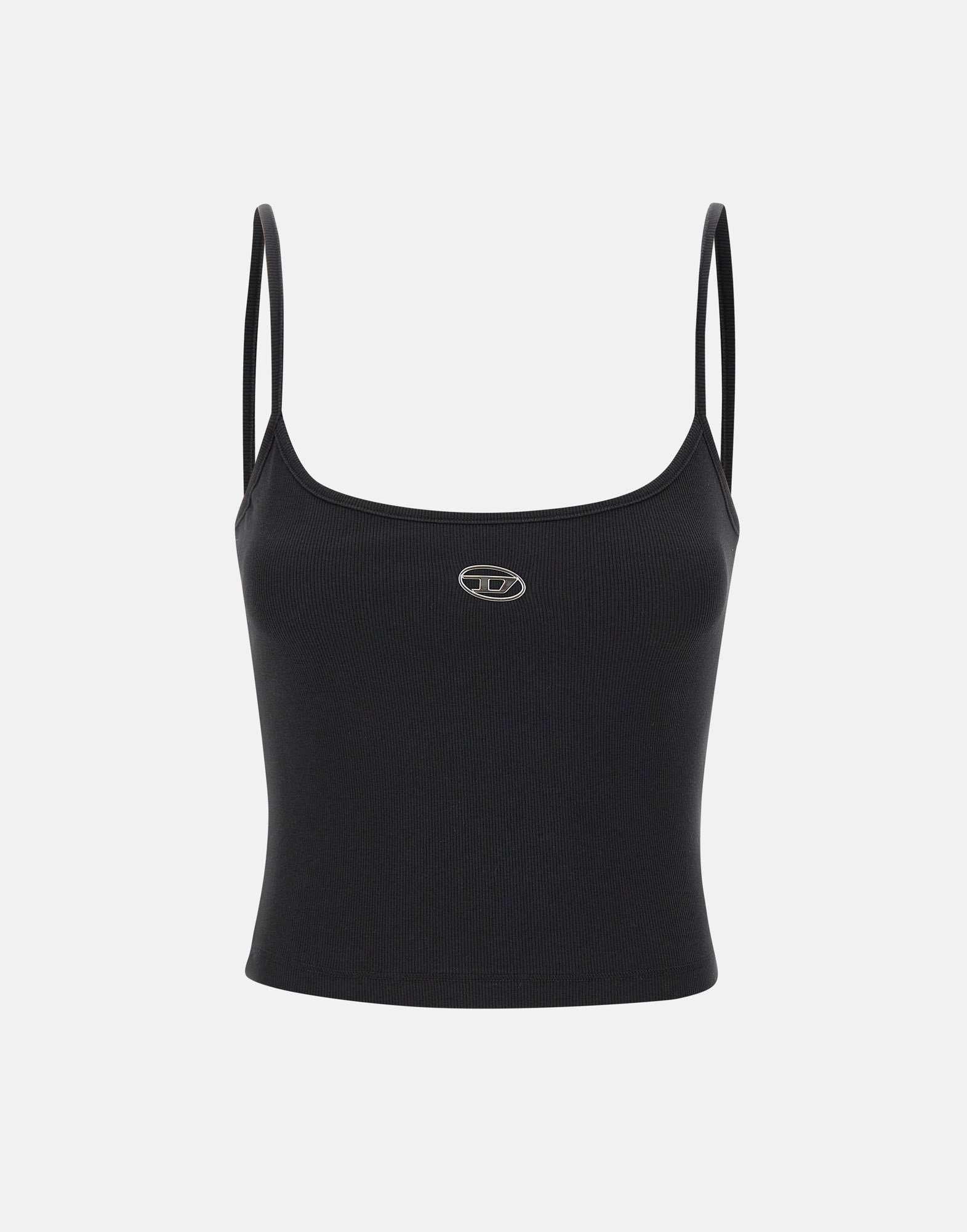 Top "T-hupy" Diesel nel colore nero è un capo essenziale dal design pulito e contemporaneo. Realizzata in 100% cotone organico stretch, garantisce comfort, traspirabilità e rispetto per lambiente. Il modello presenta scollo classico fronte e retro e una vestibilità regular fit, perfetta per un look casual ma curato. Il dettaglio distintivo è il logo Oval D Diesel silver al centro sul davanti, simbolo di autenticità e stile urbano.