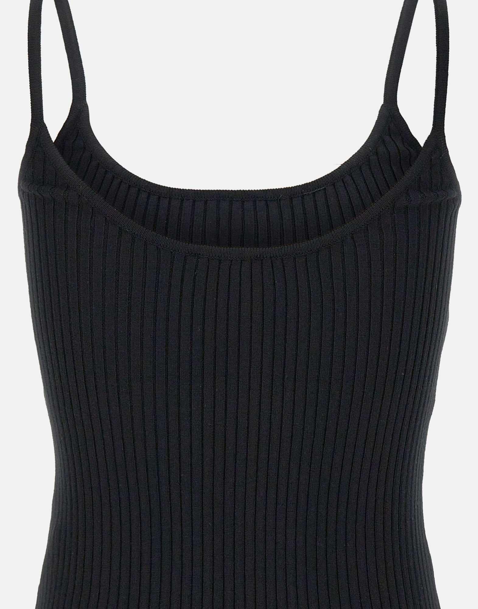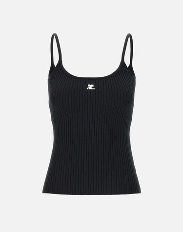 Top Courrèges donna "Reedition", colore nero, misto viscosa, trama della maglia a coste, scollo rotondo, logo AC a contrasto e ricamo sul davanti, slim fit.