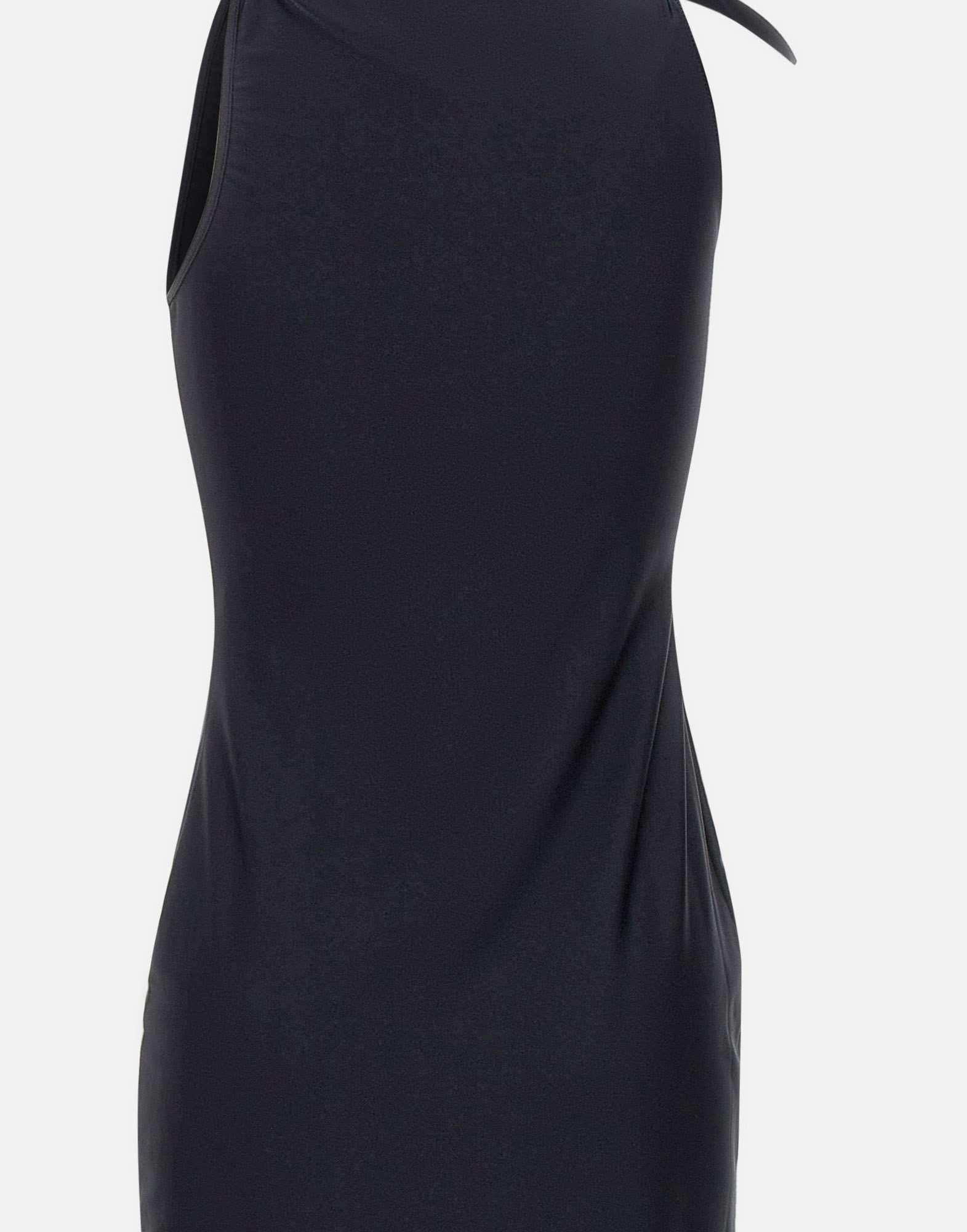 Abito donna Coperni modello "Flower" realizzato in un elegante jersey tecnico nero con una lucentezza satinata. Il design asimmetrico è definito da delicati nodi a rosetta che raccolgono il tessuto attorno al corpo, creando una silhouette sensuale che lascia intravedere la pelle. La lunghezza alla caviglia e lo spacco laterale completano la linea con un tocco deciso e contemporaneo, in perfetto equilibrio tra forme architettoniche e dettagli inaspettati.