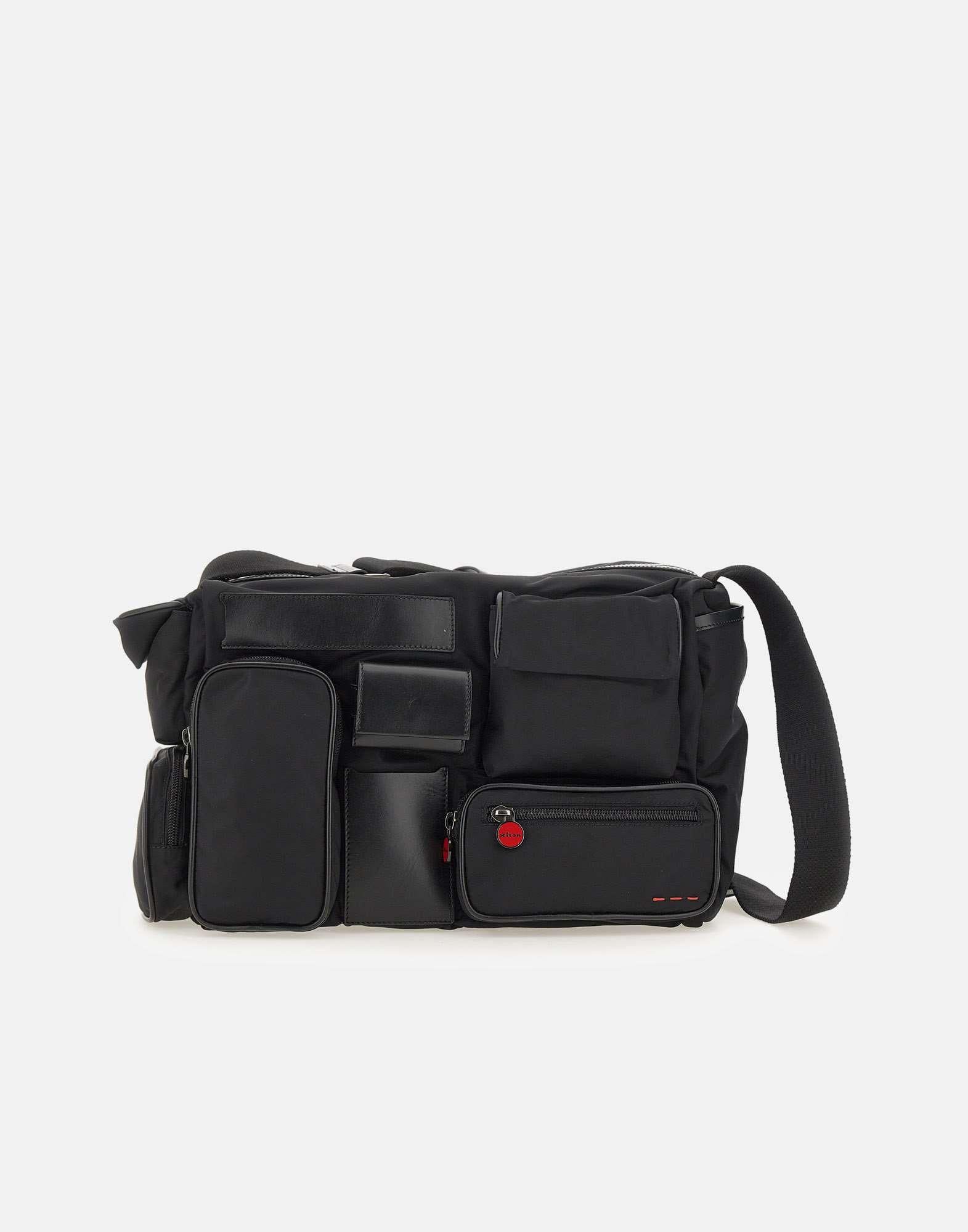 Borsa a tracolla Kiton, unisce funzionalità, stile e qualità artigianale italiana in un design moderno e versatile. Realizzata in nylon tecnico nero, è perfetta per luso quotidiano grazie alla sua resistenza, leggerezza e capienza. Dotata di multiple tasche esterne con chiusura a zip e tirazip logati, offre uno spazio ben organizzato per tenere tutto a portata di mano. Lo scomparto centrale con chiusura a zip custodisce un interno curato nei dettagli, con tasche interne e inserti in pelle che aggiungono un tocco di eleganza e raffinatezza. Ideale per chi è sempre in movimento ma non vuole rinunciare allo stile, questa borsa è pensata per accompagnarti con discrezione e classe. Dimensioni: 38x15x25 cm. Dustbag inclusa