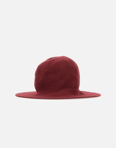 Cloche Borsalino modello "Angelina", realizzata in maglia fine color vino in misto eco cashmere, lana e viscosa. Il design elegante presenta corona rotonda, tesa larga e placca con logo dorato applicata lateralmente. Senza fodera, taglia unica. Made in Italy.