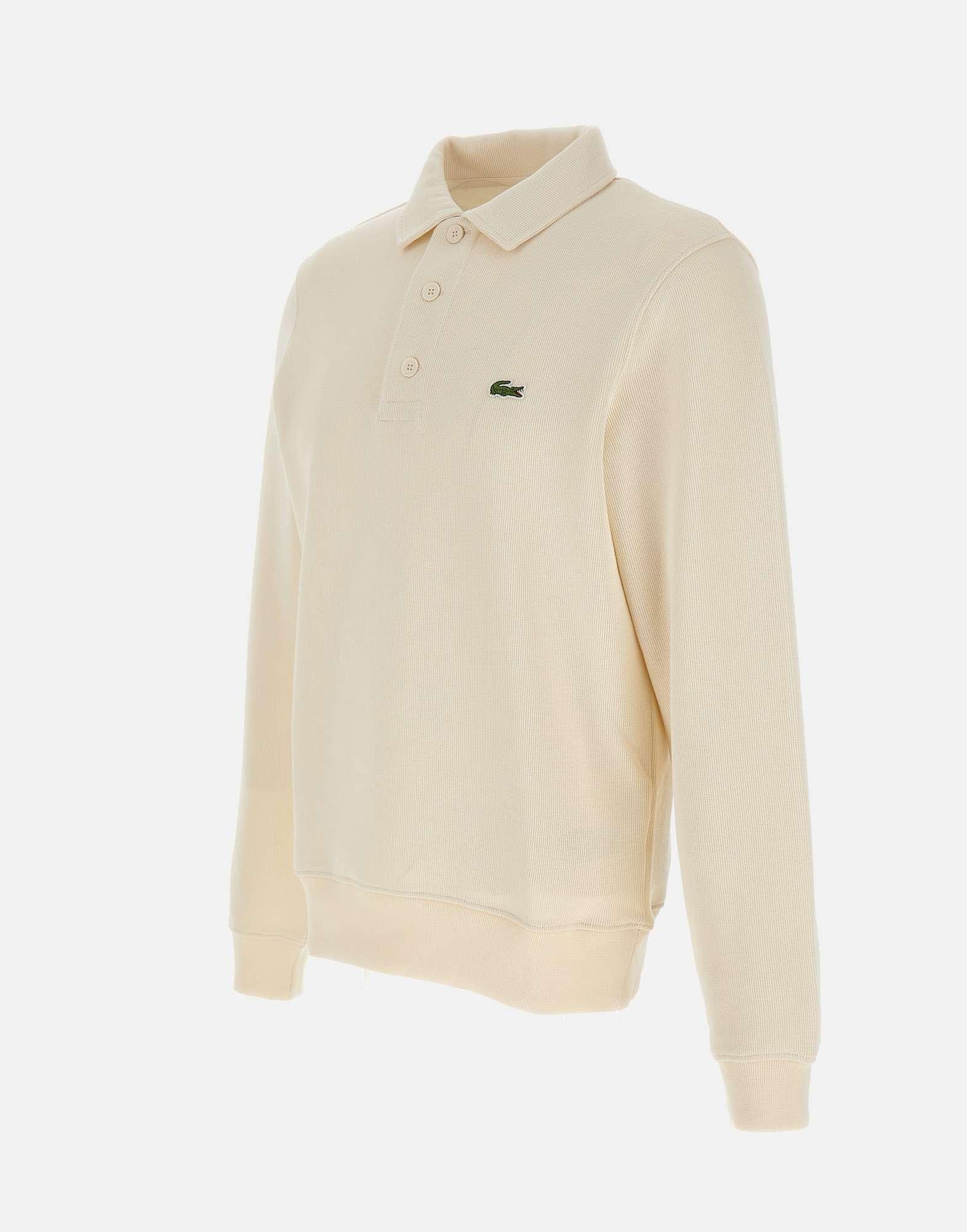 Felpa Lacoste uomo nel colore panna, combina stile sportivo e raffinatezza iconica. Realizzata in cotone interlock di alta qualità, presenta collo classico con bottoni tono su tono, maniche lunghe e vita e polsini a costine elasticizzate per il massimo comfort. Il celebre coccodrillo ricamato sul petto firma il capo con linconfondibile eleganza Lacoste.