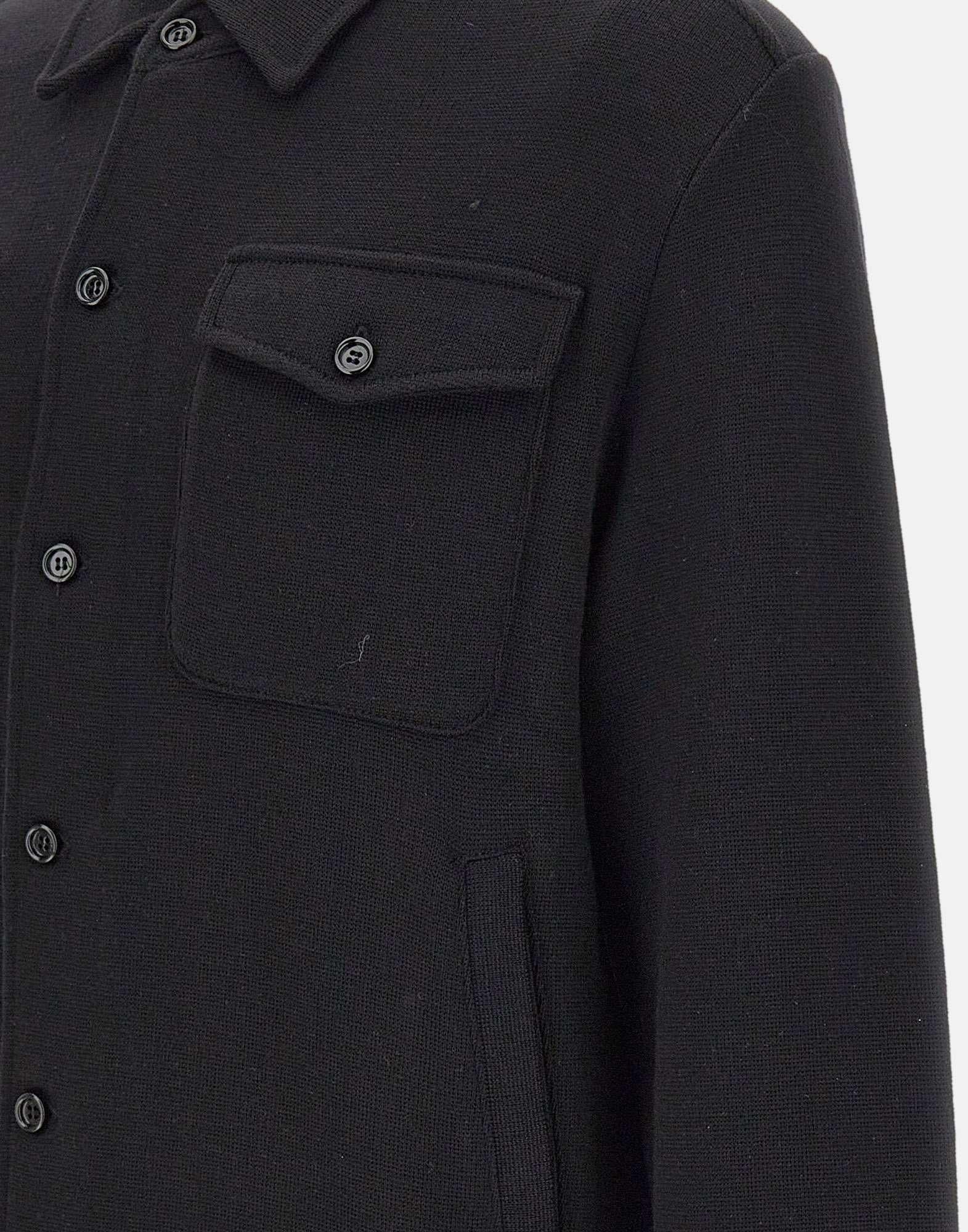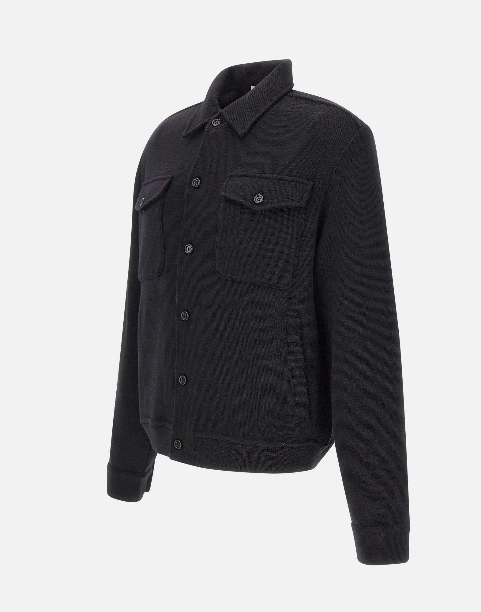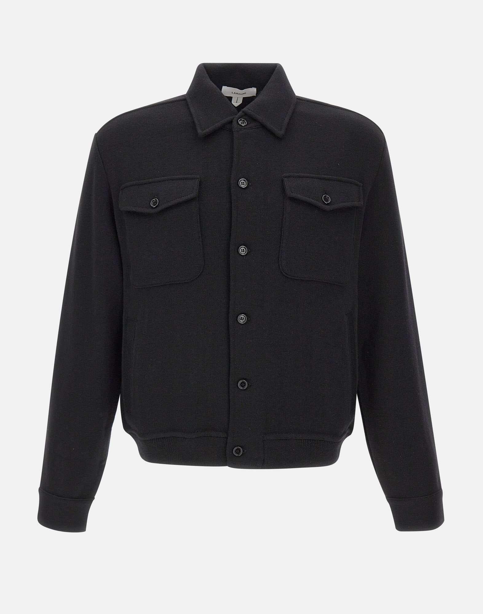 La giacca Lardini, in pura lana vergine e nel colore nero, reinterpreta il classico modello camicia in chiave contemporanea. Caratterizzata da colletto classico, maniche lunghe e quattro tasche frontali, di cui due applicate sul petto, presenta una chiusura con bottoni tono su tono e bordi a costine che ne valorizzano la struttura. Realizzata con maestria artigianale, unisce eleganza, comfort e versatilità tipici del Made in Italy.