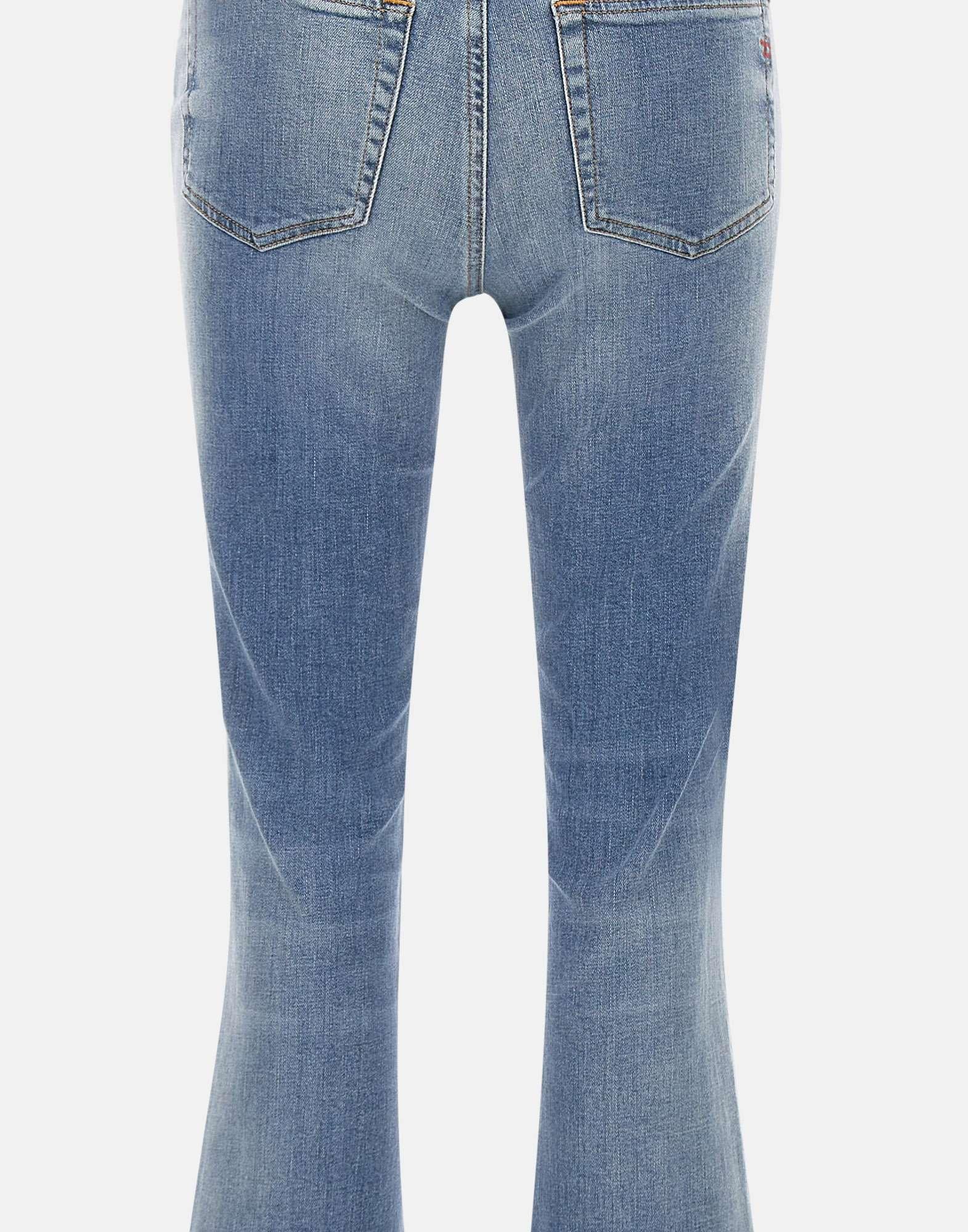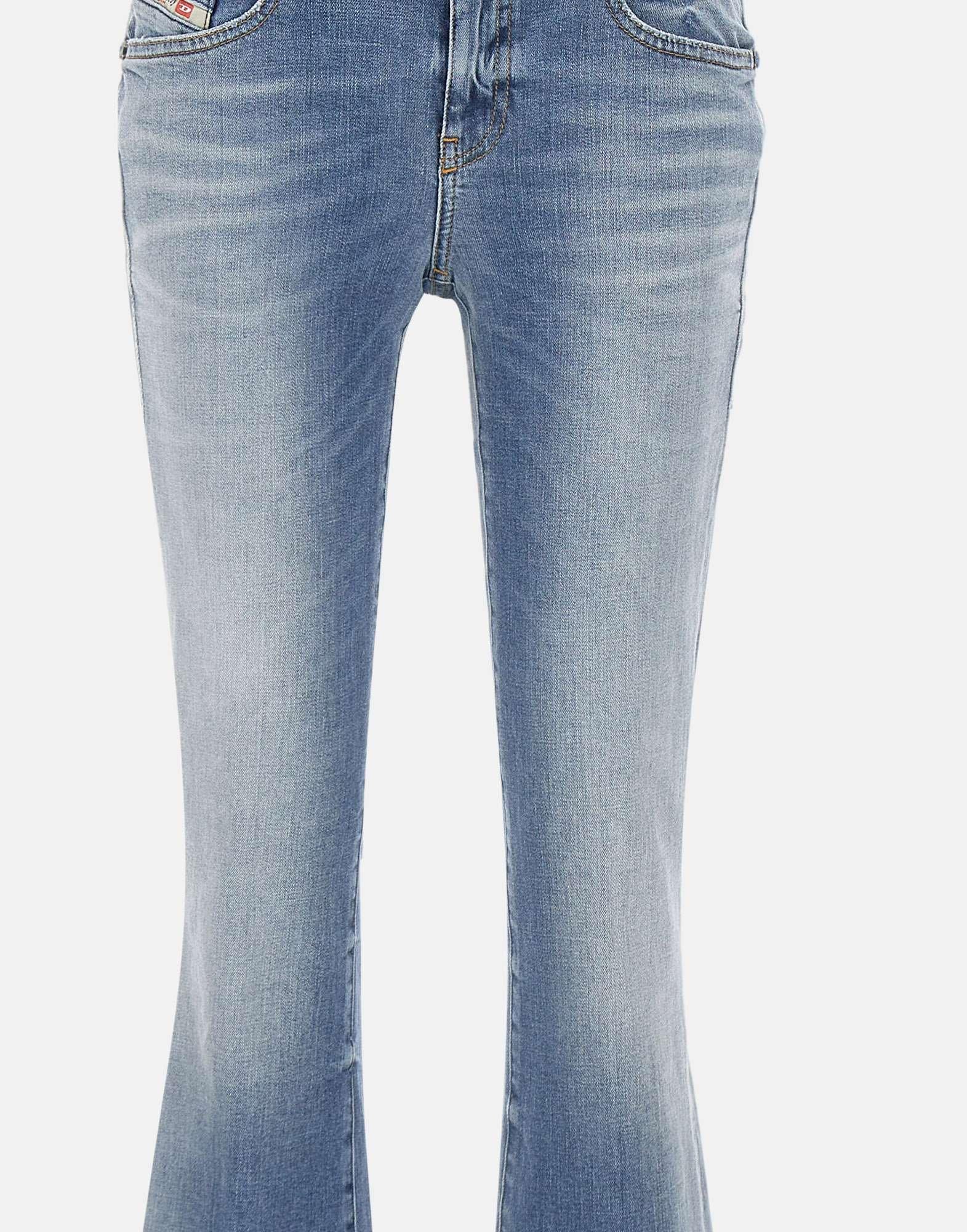 Jeans donna Diesel "1969 D-Ebbey" in denim stretch blu chiaro, caratterizzati da fit bootcut con vita bassa sagomata. Il modello avvolge la silhouette dai fianchi alle ginocchia, slanciando visivamente la gamba grazie al taglio slim e alla svasatura finale. Parte della serie DNA di Diesel, si distingue per laspetto worn-in e luso di cotone parzialmente riciclato. Un capo versatile e attuale, pensato per valorizzare la figura con uno stile autentico. Fondo ampio 20cm.