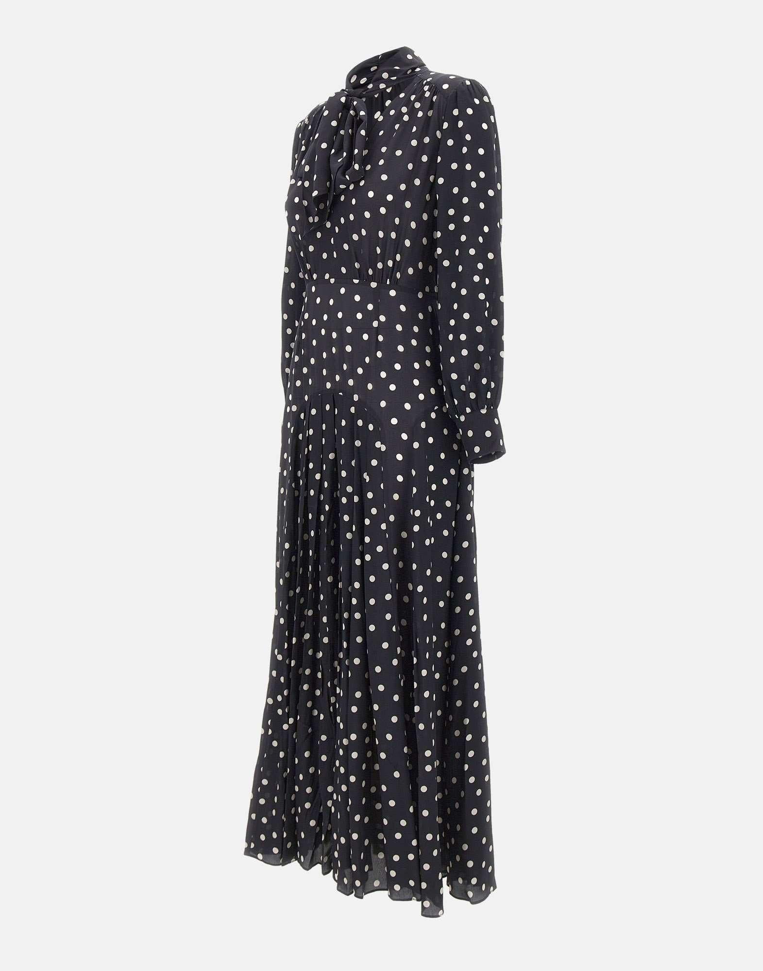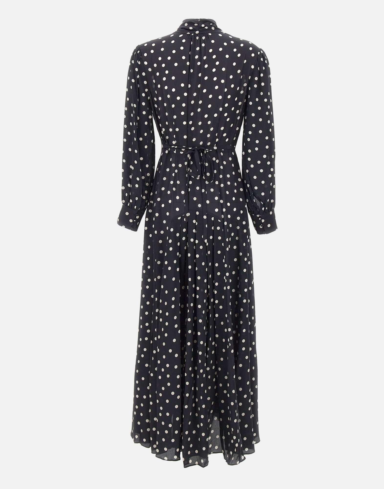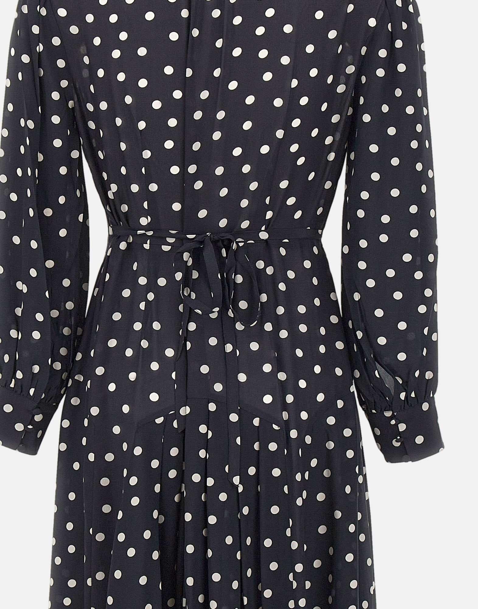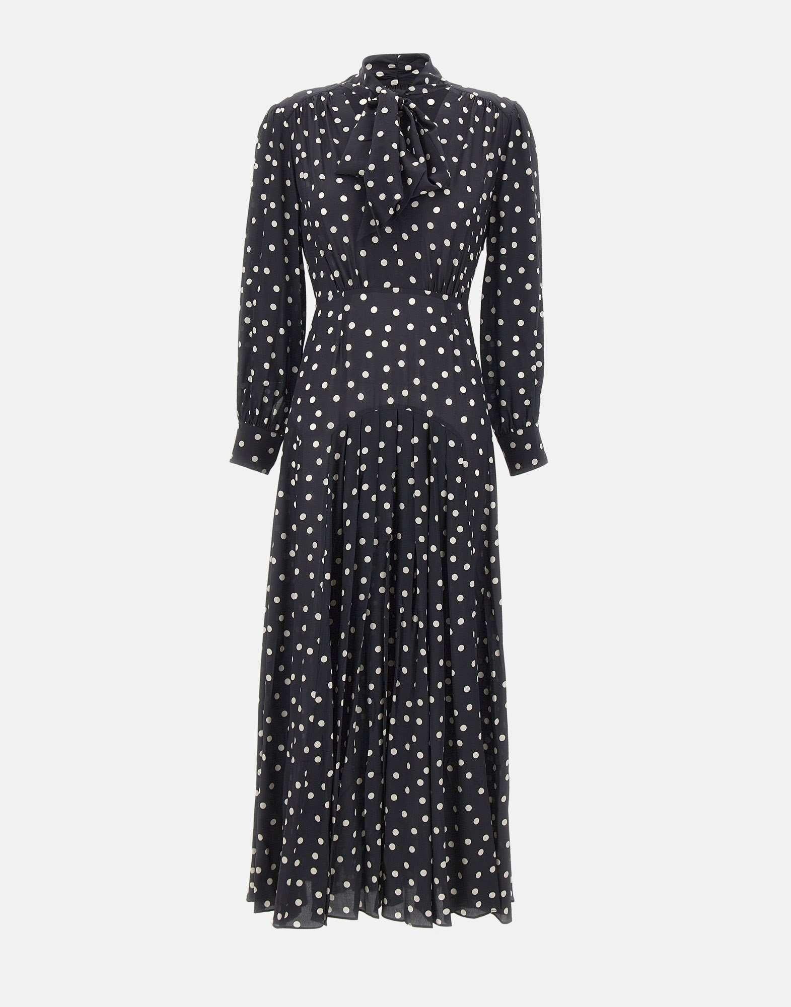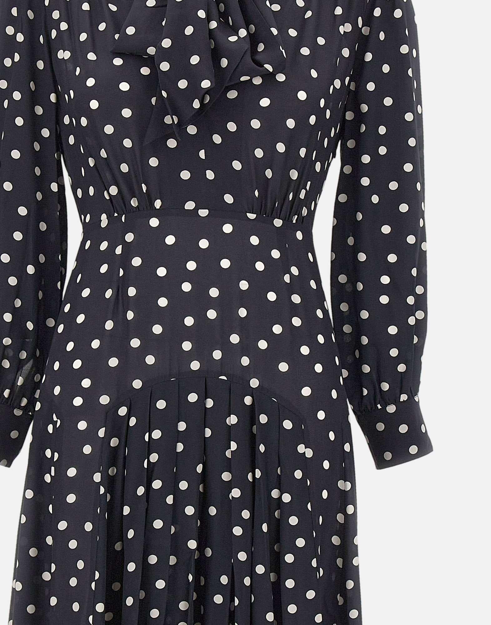 Abito midi Rixo "Marigold" in fantasia a pois su fondo blu, realizzato in tessuto fluido di peso medio. Il taglio leggermente aderente su busto e vita e la linea morbida sui fianchi valorizzano la silhouette in modo naturale. Caratterizzato da maniche lunghe con polsini abbottonati, collo lavallière con fiocco e una lunghezza midi con piegoline che conferisce eleganza e movimento. Tessuto non stretch, vestibilità regolare e raffinata.