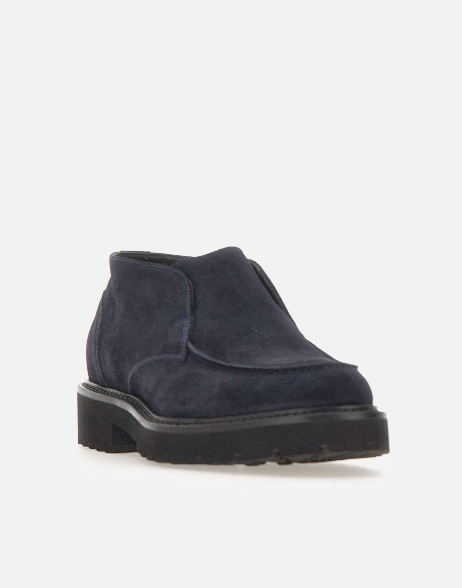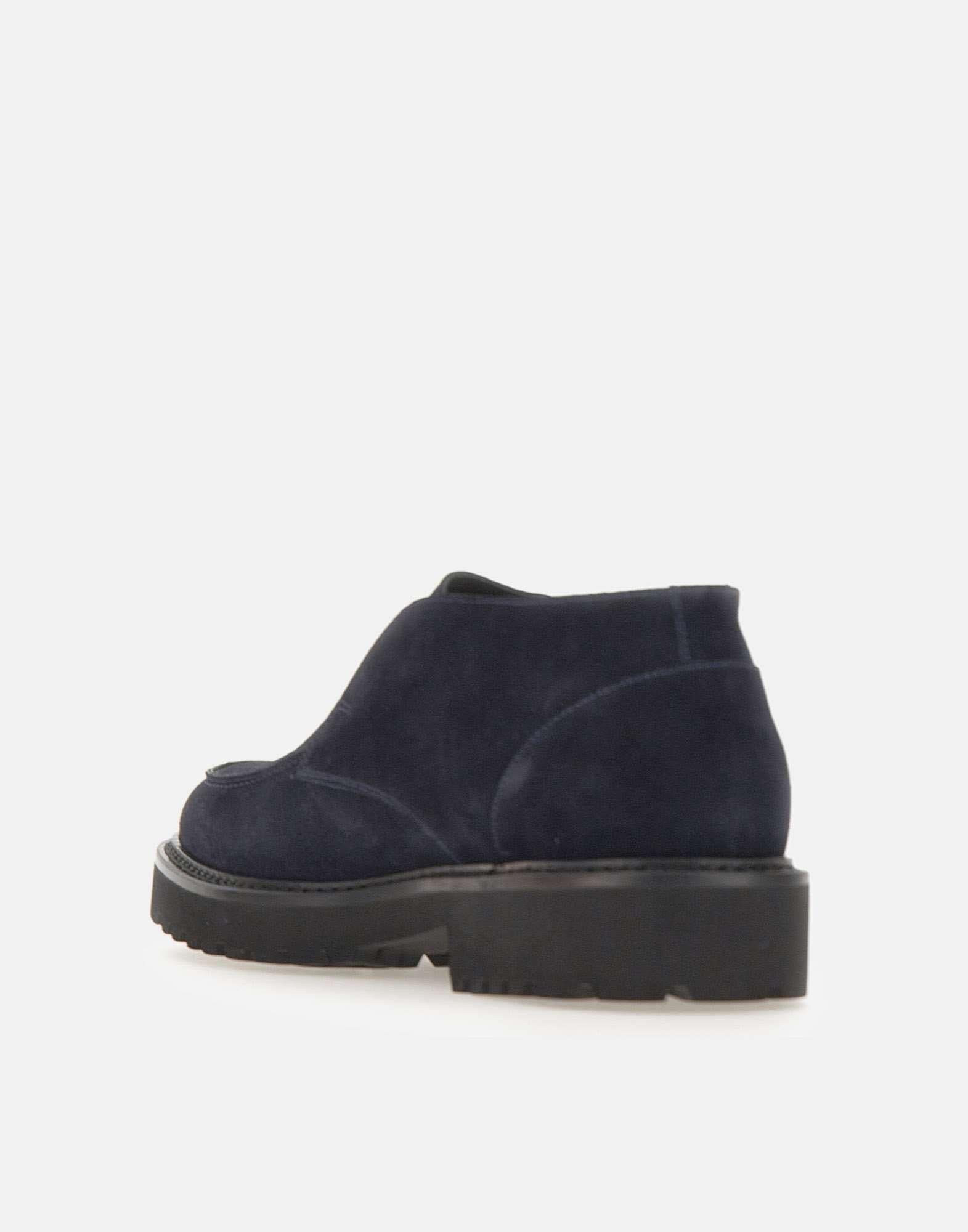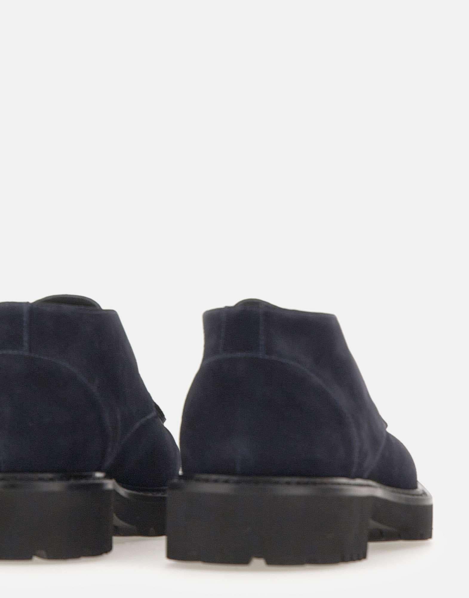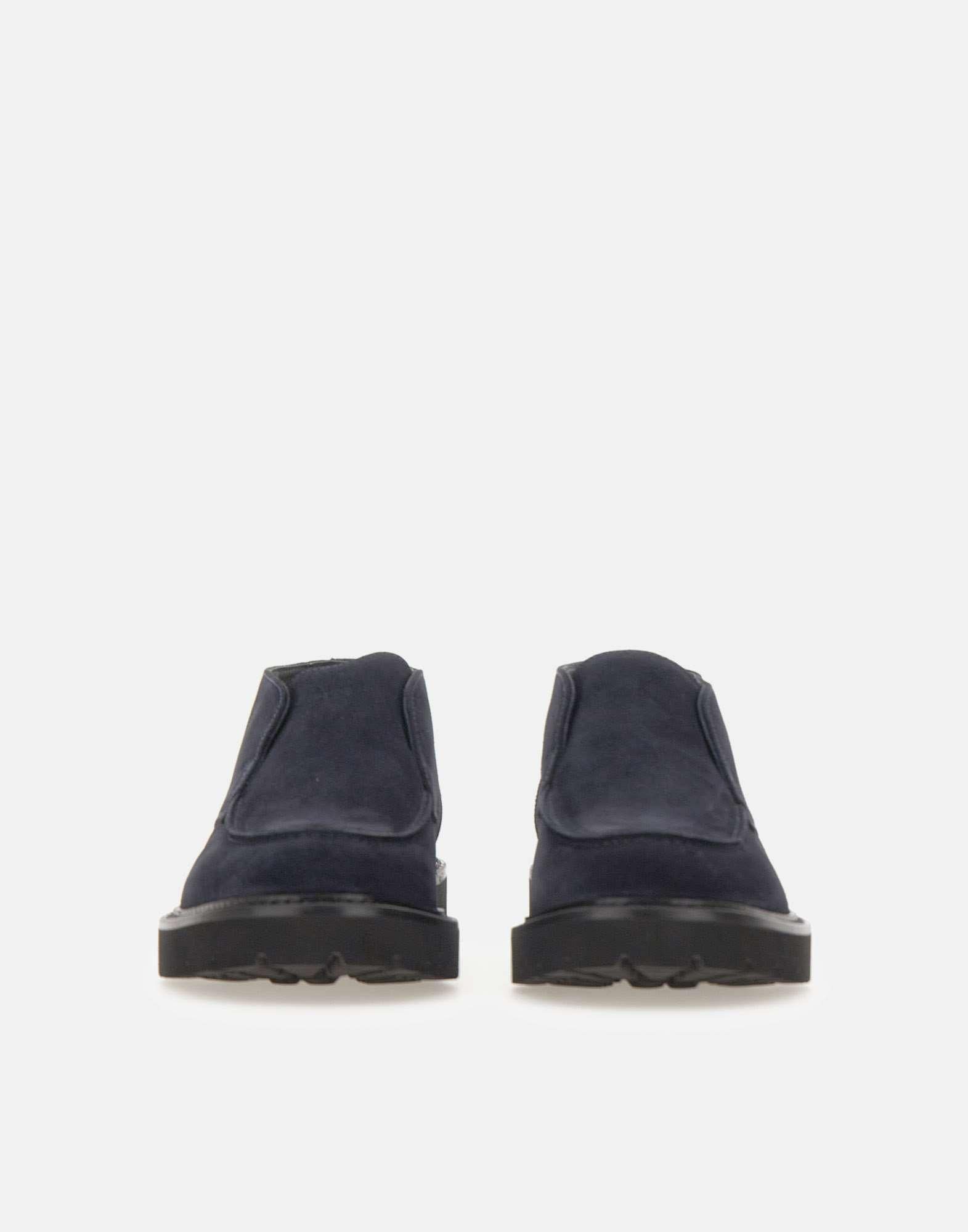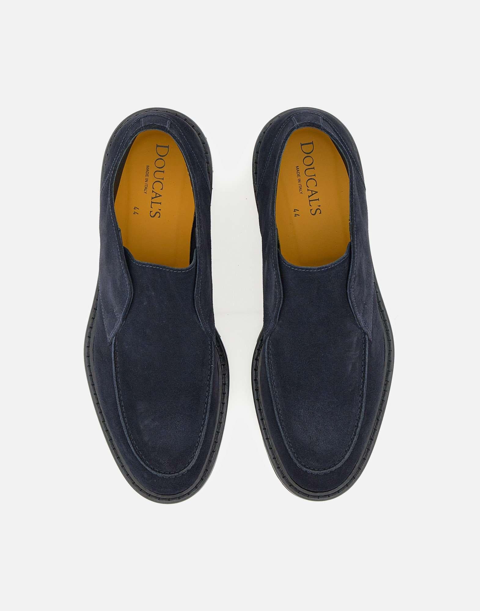 Mocassini uomo Doucal's "Visone" realizzati in pregiata pelle scamosciata colore blu notte, con impunture a vista e punta tonda. La suola in gomma carrarmato color nero garantisce aderenza e comfort, mentre il tacco da 3,5 cm conferisce un tocco elegante e deciso. Calzata regolare, perfetti per completare look casual e formali. Made in Italy. Custodia in tessuto inclusa.