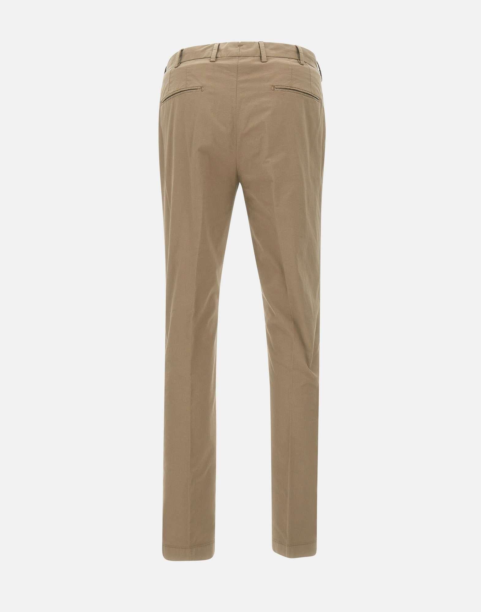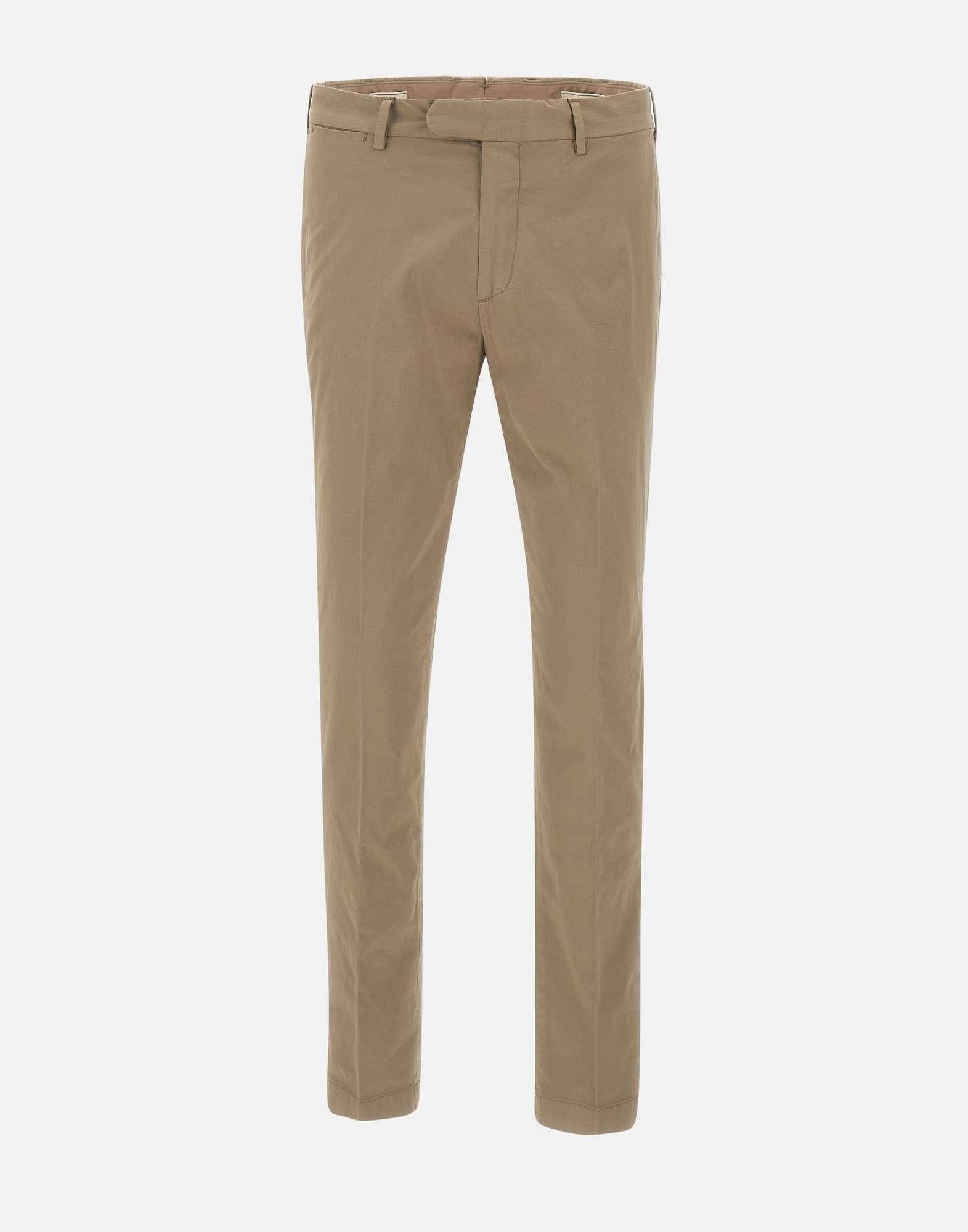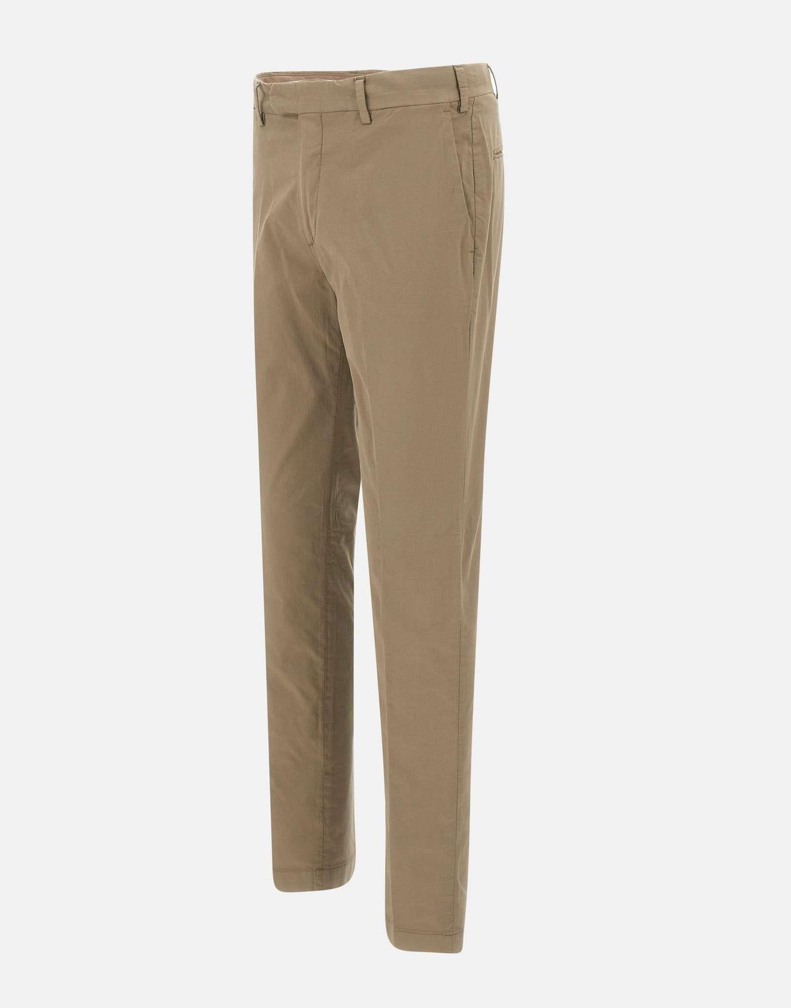 Pantaloni Devore Incipit uomo "Dvr3", nocciola, esclusiva Cavarly in cotone giza e seta stretch, tessuto lussuoso al tatto e all'indosso, chiusura con bottoni e zip, gamba dritta con fondo 17cm, passanti per cintura, tasche alla francese, tasche posteriori monofiletto, slim fit, made in Italy