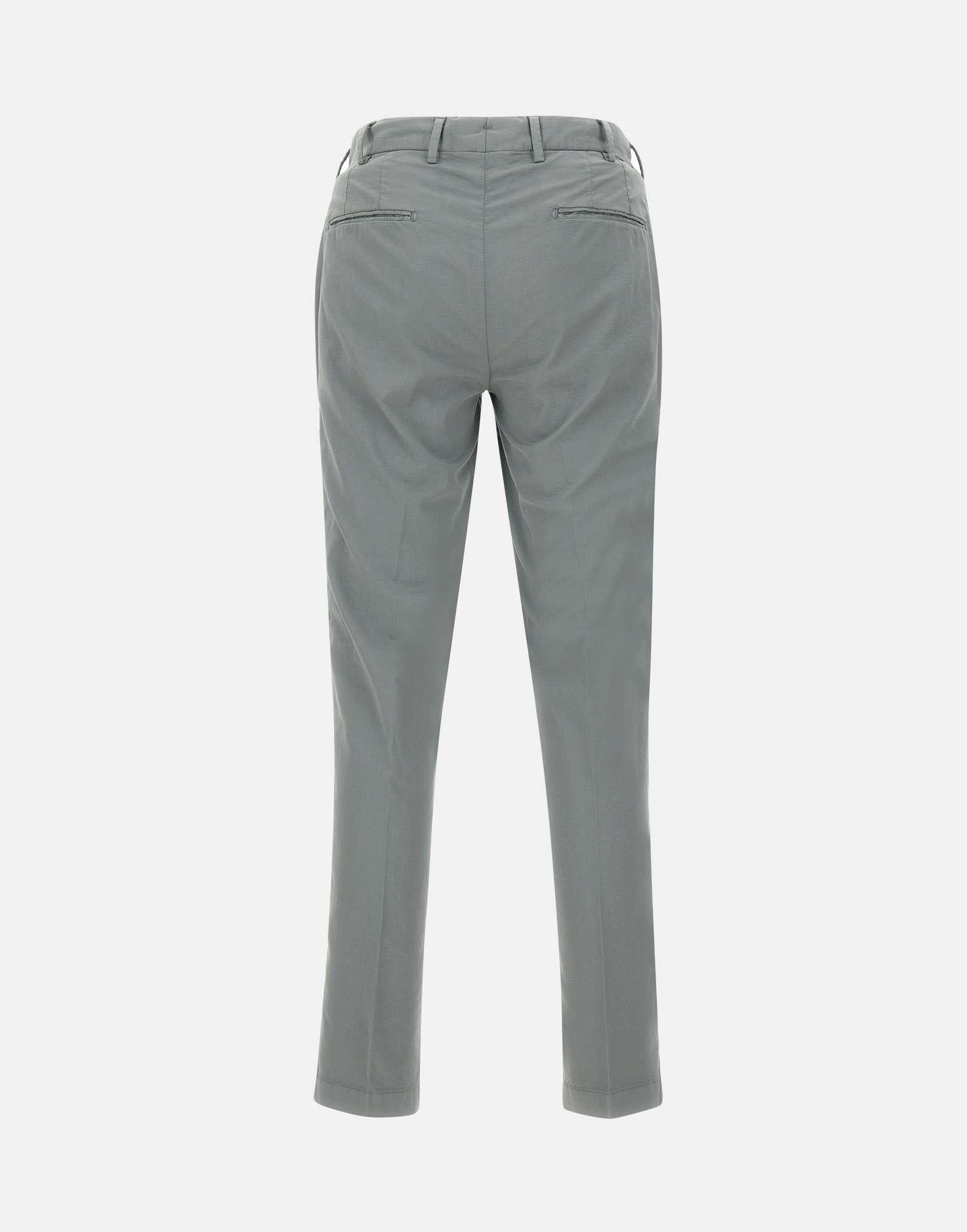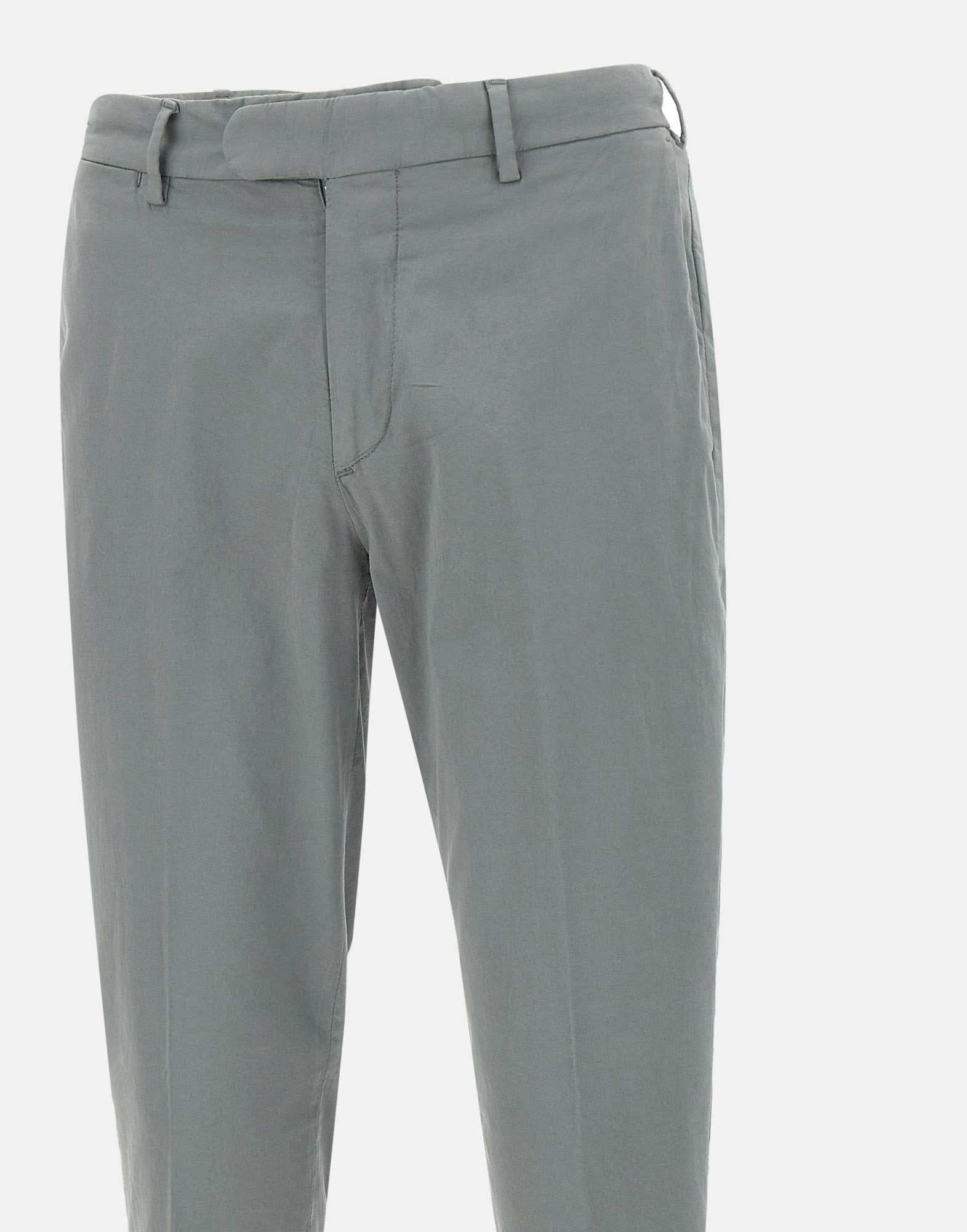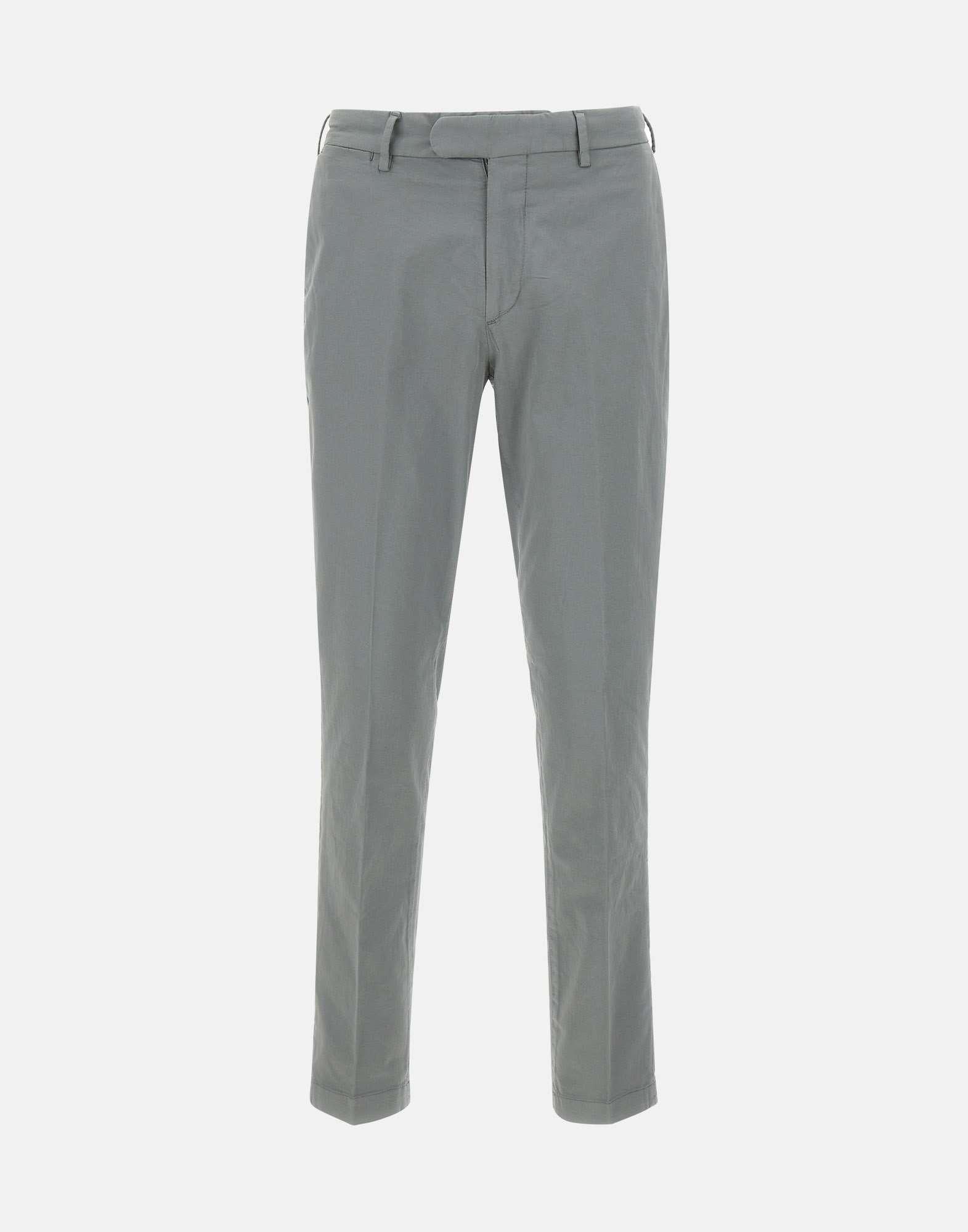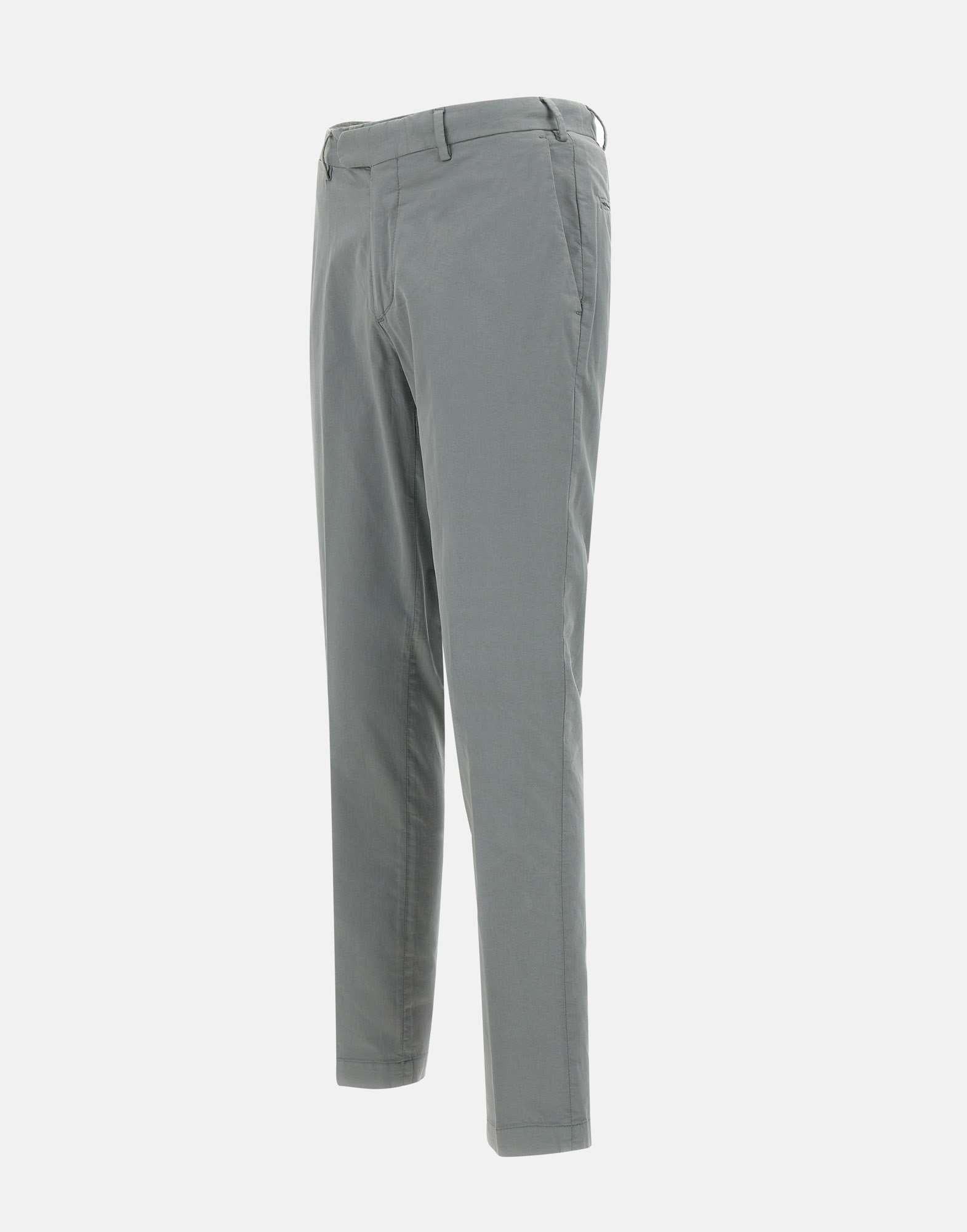 Pantaloni Devore Incipit uomo "Dvr3", colore grigio, in cotone pima peruviano e seta stretch, tessuto lussuoso al tatto e all'indosso, chiusura con bottoni e zip, gamba dritta con fondo 17cm, passanti per cintura, tasche alla francese, tasche posteriori monofiletto, slim fit, made in Italy