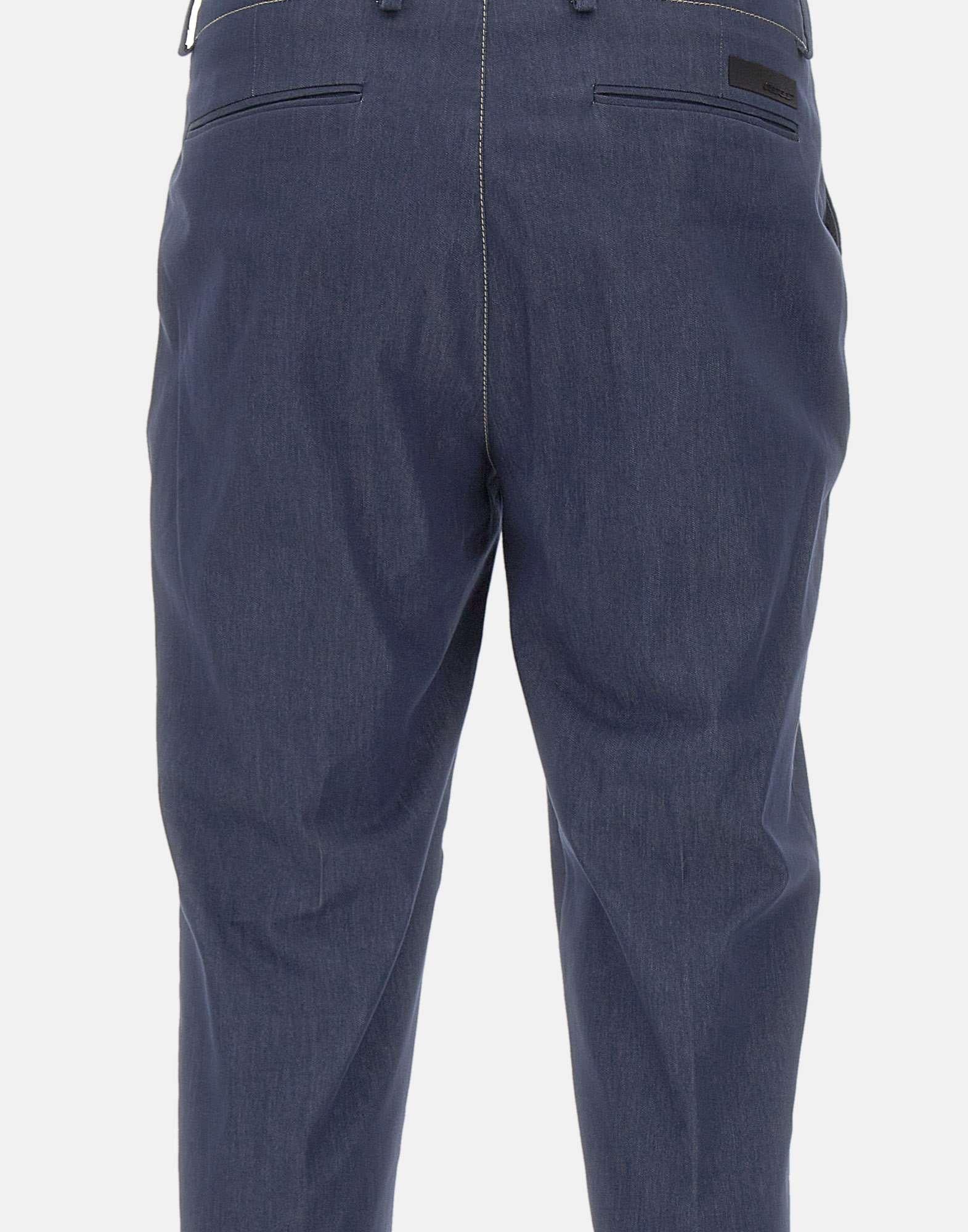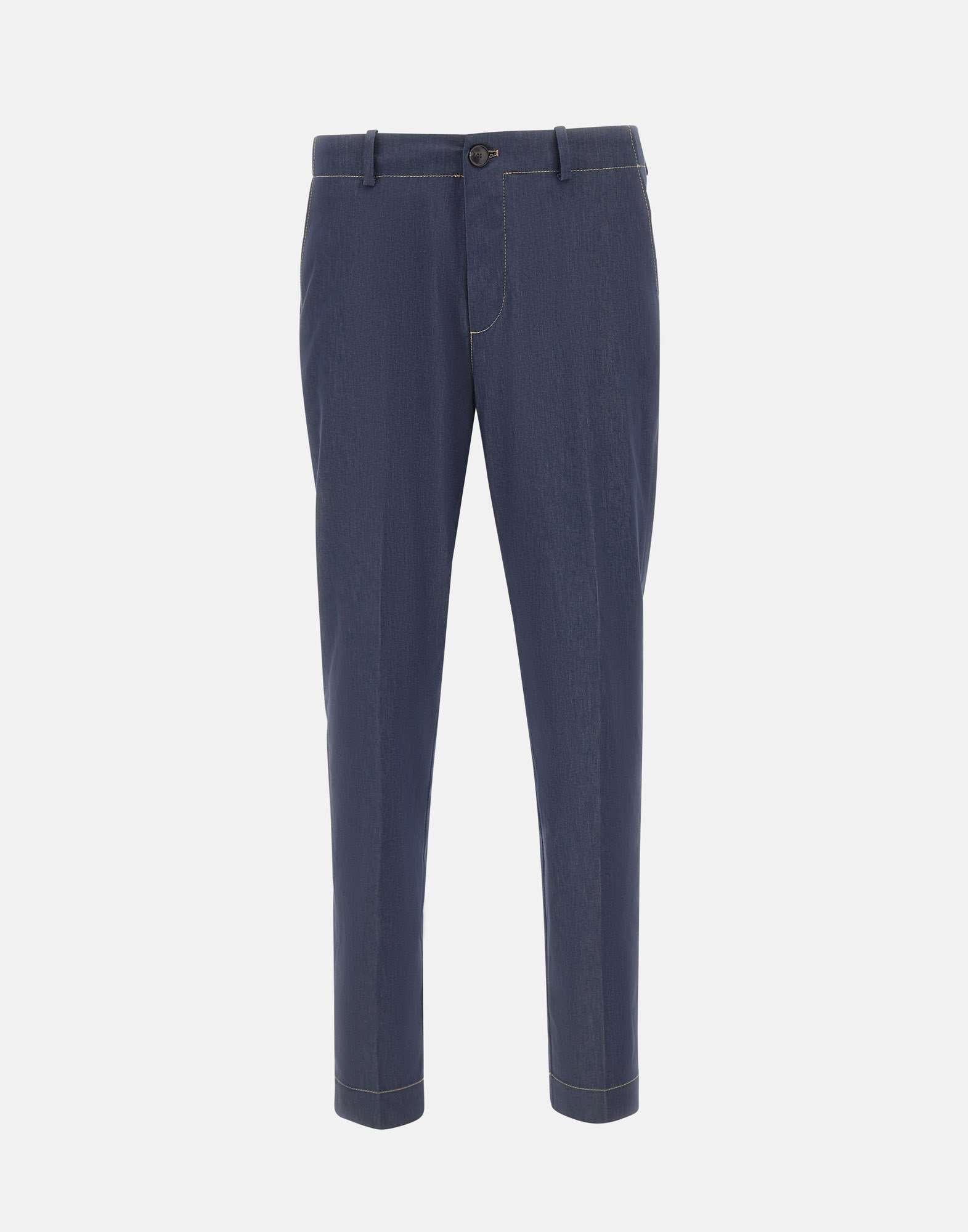 Pantaloni uomo RRD "Marina Weekend" realizzati in denim tecnico elasticizzato color blu, progettati per offrire leggerezza e comfort rispetto alla tela tradizionale. Questi pantaloni uomo a vita media presentano fit regolare e una linea leggermente affusolata che rende la silhouette equilibrata, con un'estetica che unisce stile casual e raffinatezza contemporanea. La costruzione è definita da abbottonatura in corno celata dalla pattina, cuciture a vista sulla vita con passanti e tasche laterali alla francese, essenziali e funzionali. Sul retro, le tasche a filetto sono completate da logo a microiniezione nero. Ampiezza fondo 16 cm, ideali per look di tempo libero curati e per uno stile luxury casual di stagione.