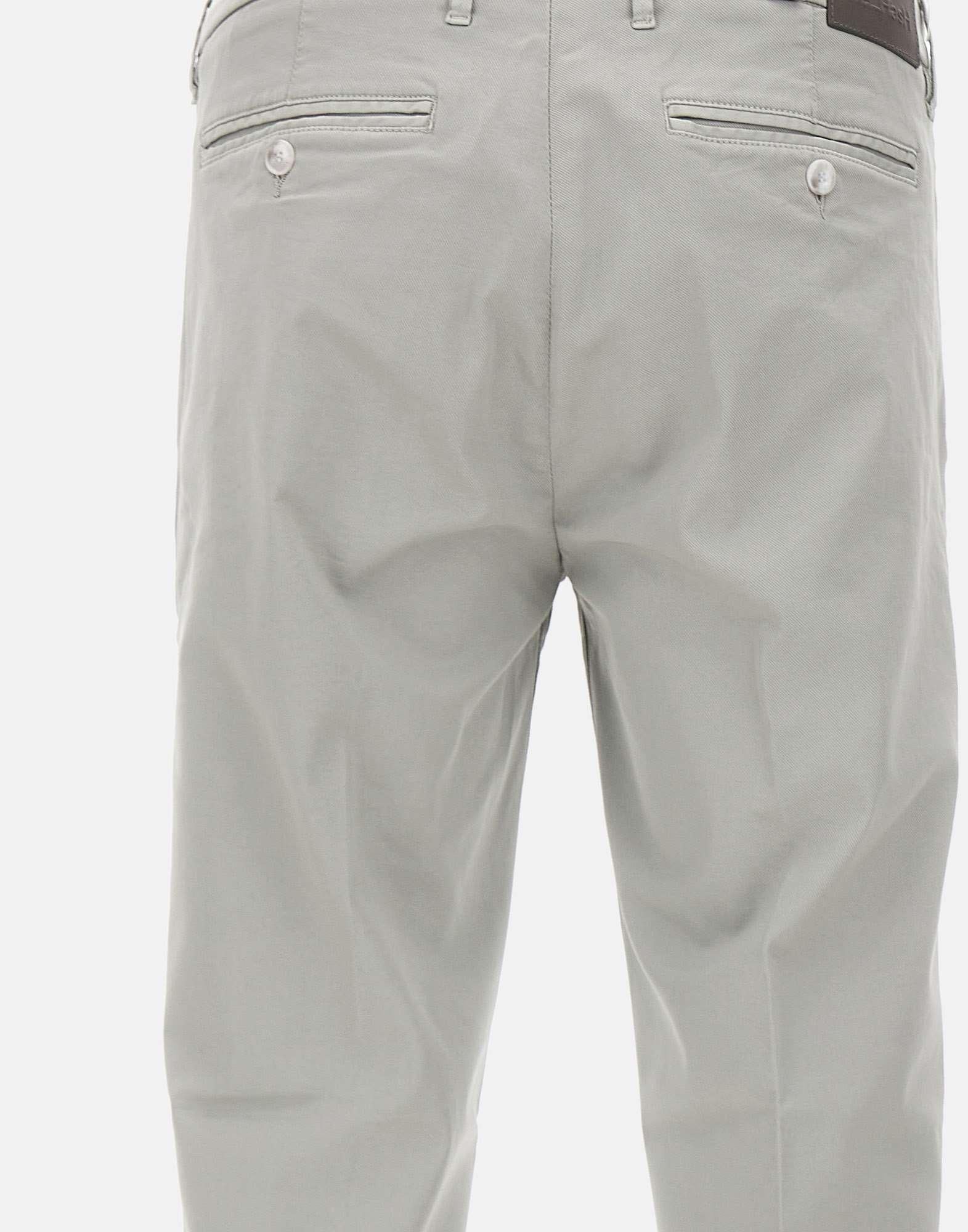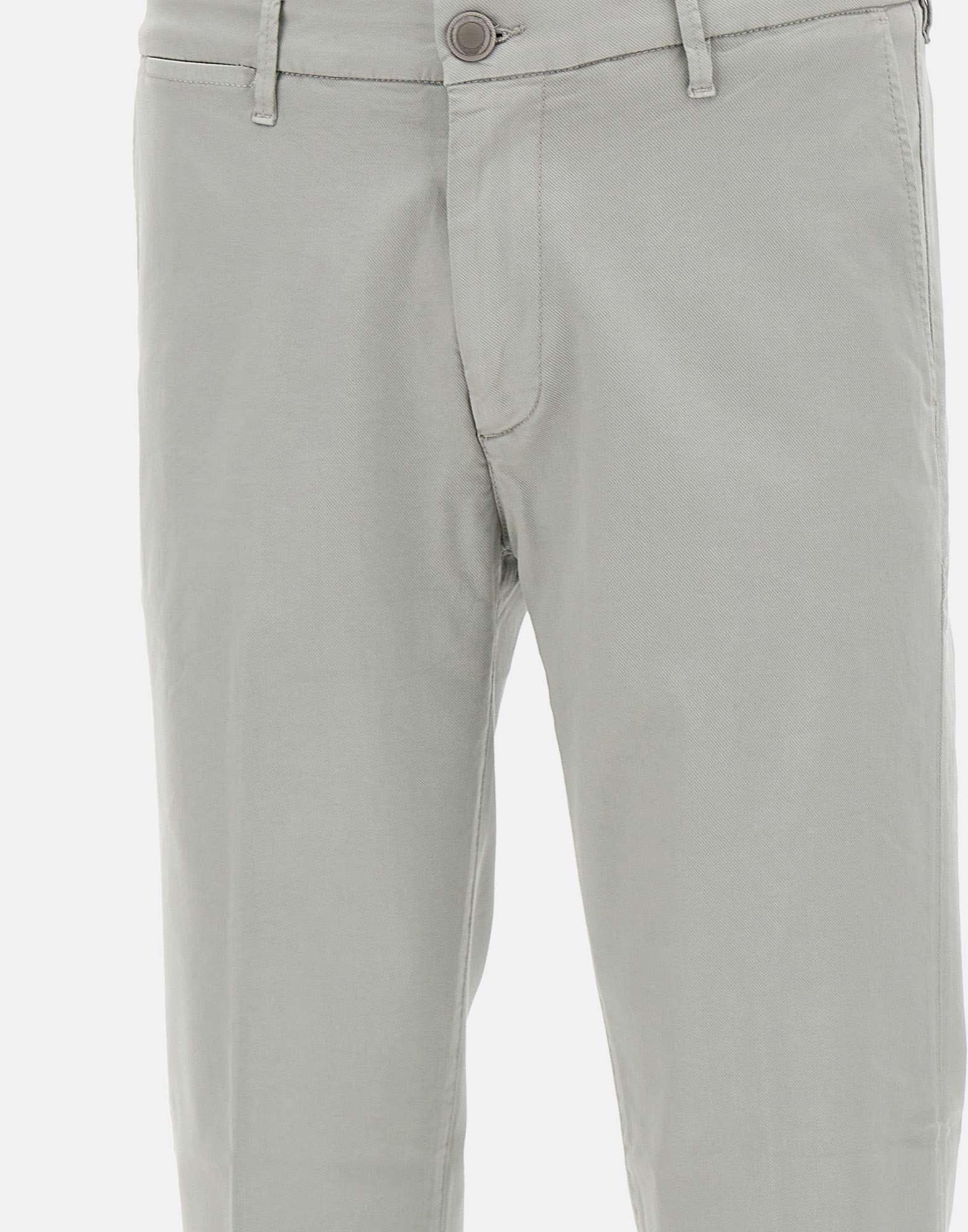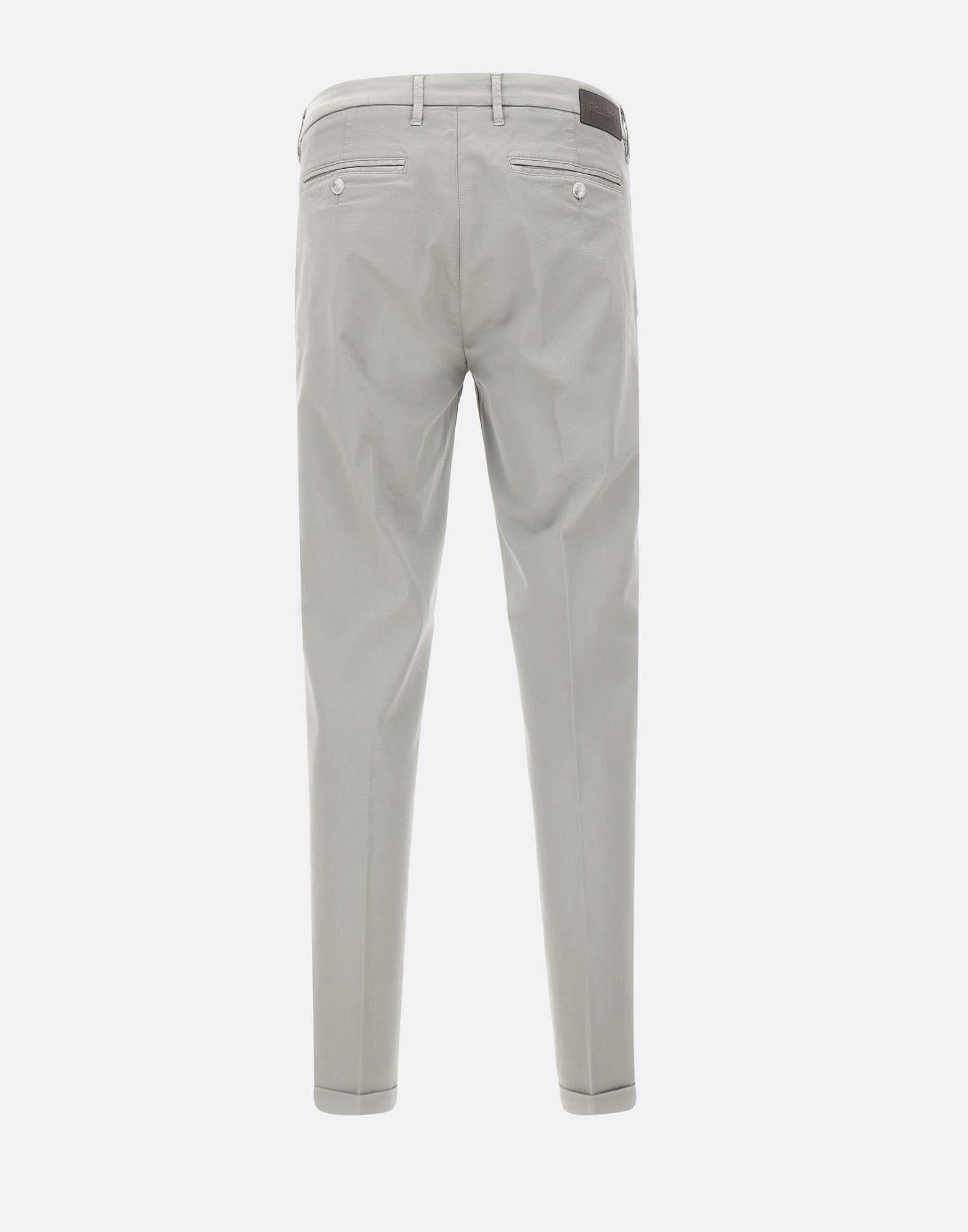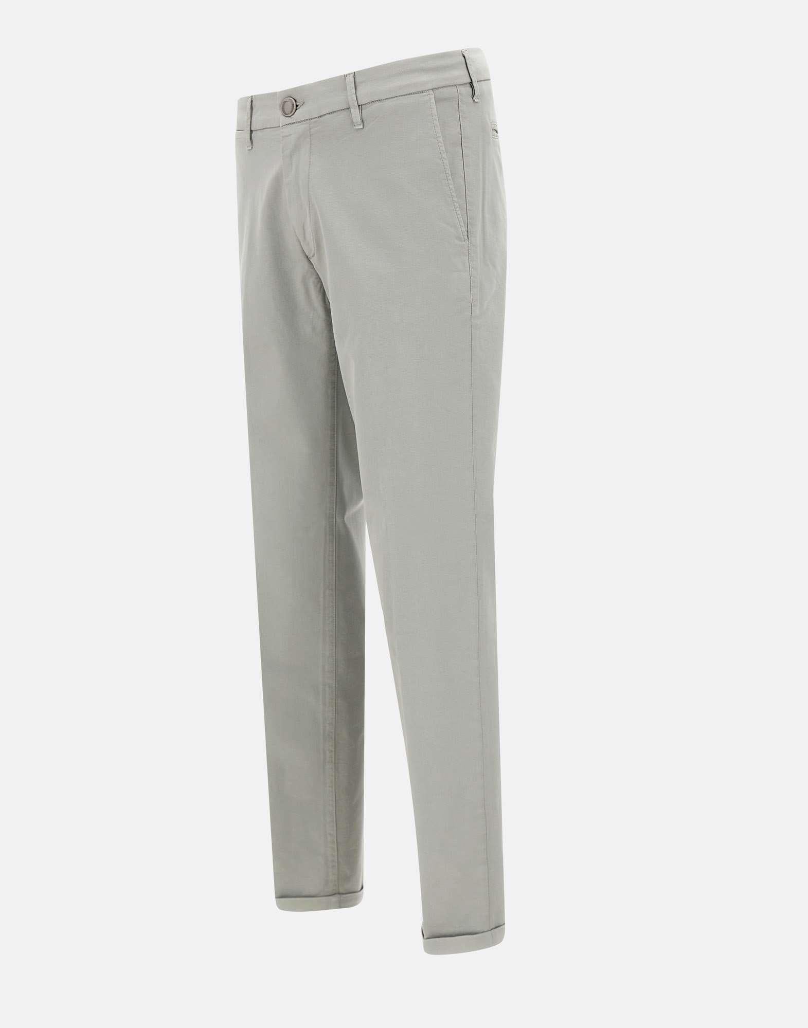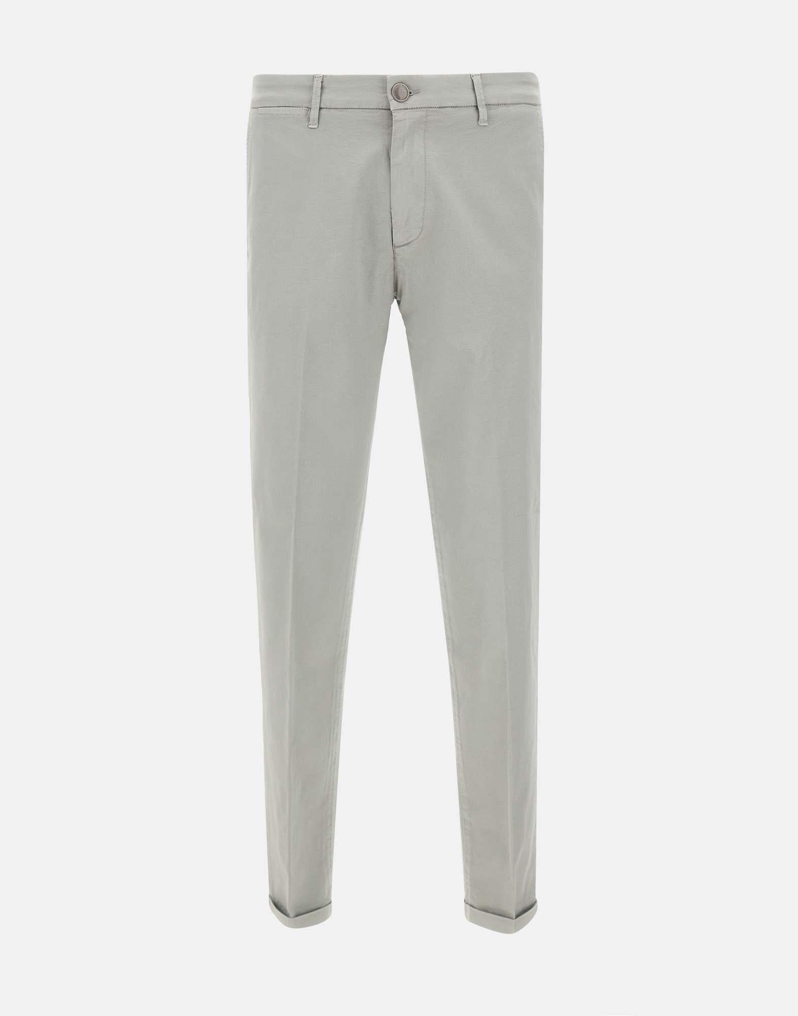 Pantaloni uomo Re-Hash "Mucha Chinos" in misto cotone, grigio chiaro, chiusura con zip e bottone logato silver, tasche laterali a filetto, tasche monofiletto sul retro con bottone, fondo con risvolto, slim fit. Made in Italy