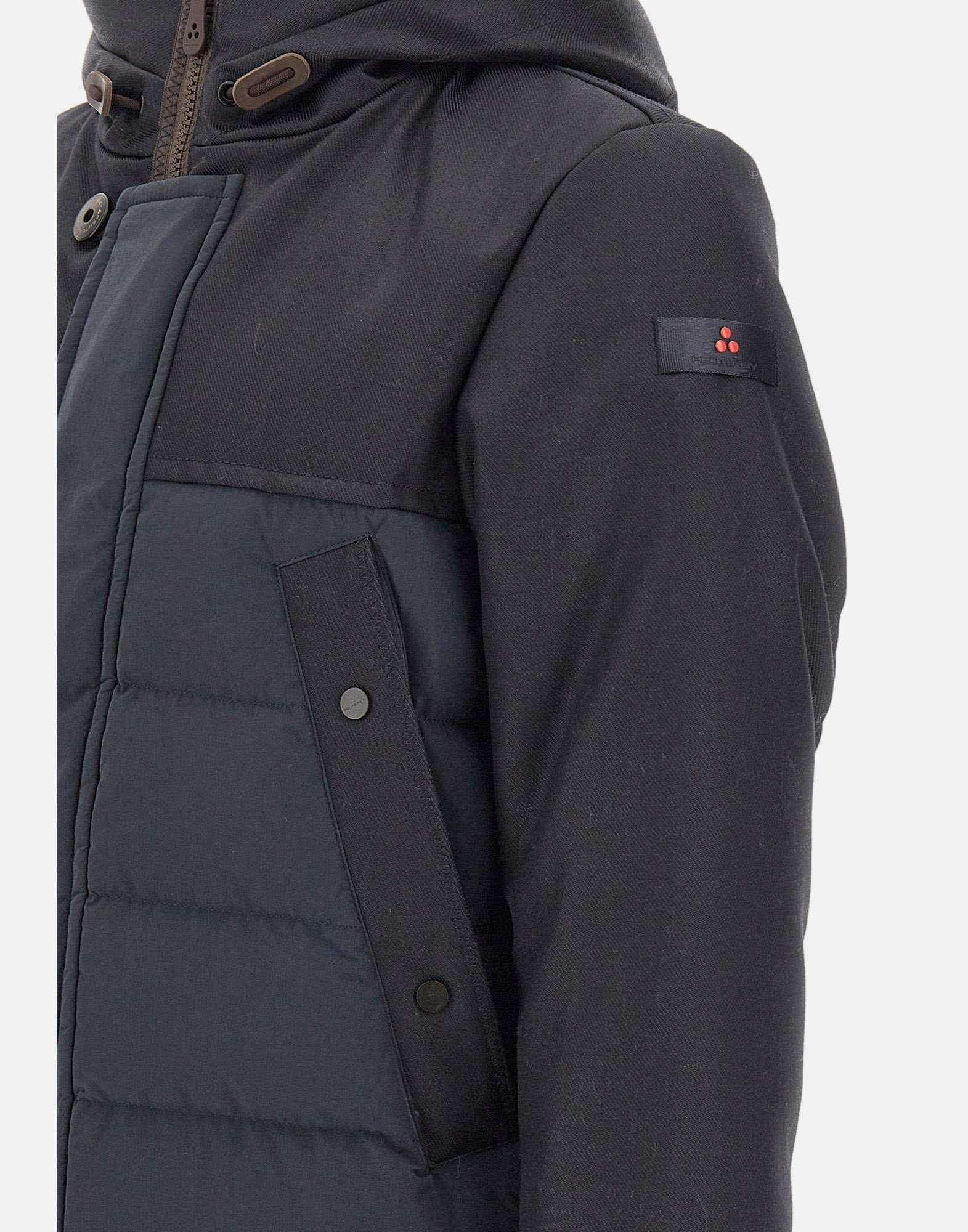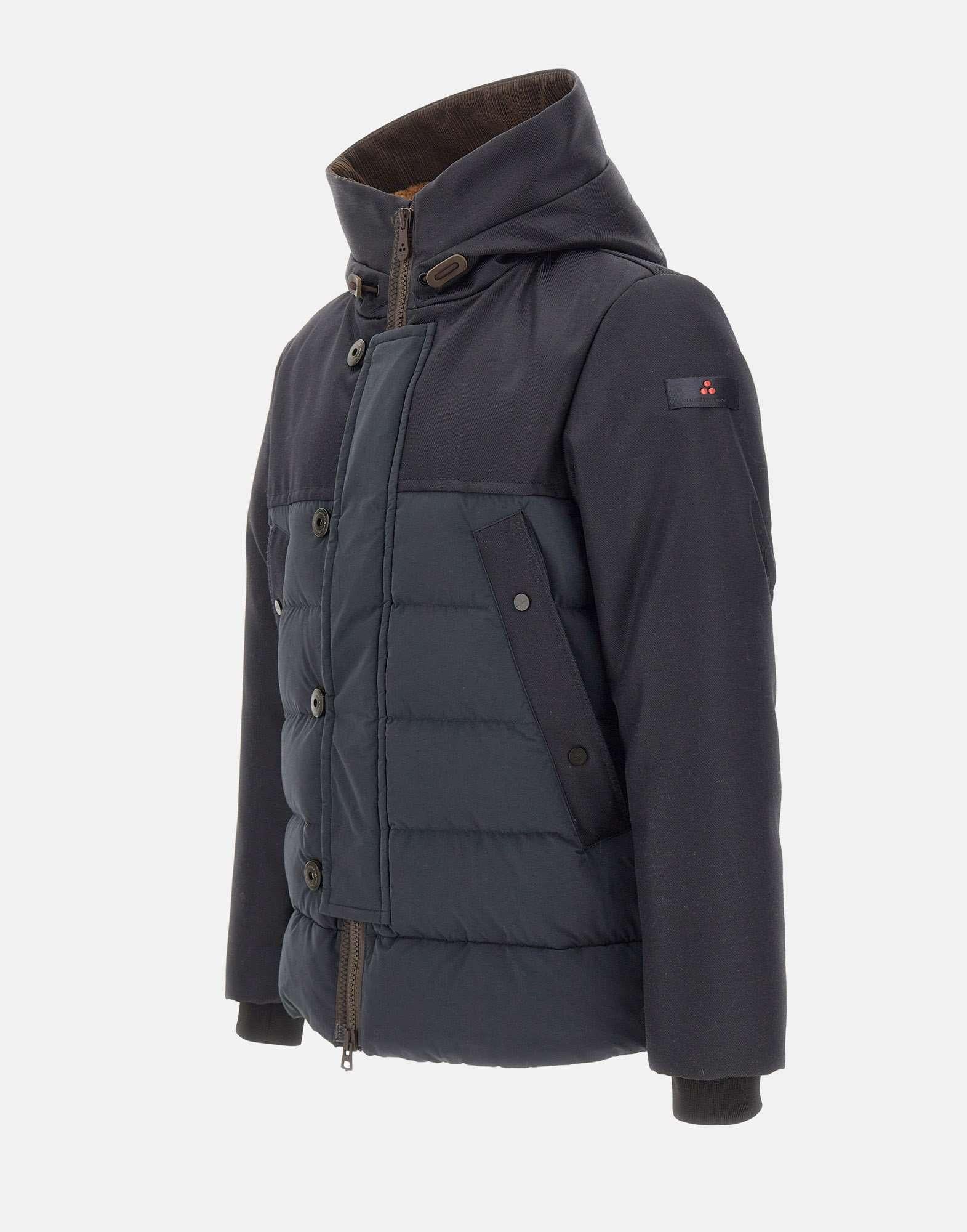 Piumino uomo Peuterey "Niall SRP Bmat Ecofur" realizzato in doppio materiale nei toni del nero e blu, pensato per coniugare resistenza, comfort e stile urbano. Il tessuto principale, un pregiato drill di lana e nylon Cordura, garantisce alta tenacità e un aspetto tecnico con finitura semi-lucida. Il popeline leggero di nylon, poliestere e cotone crea un elegante contrasto materico, mentre l’imbottitura in piuma naturale certificata assicura calore e leggerezza. Il design è completato da cappuccio fisso rivestito in orsetto, chiusura con zip coperta da patta e bottoni, coulisse regolabile in vita, tasche laterali a filetto e polsini antivento. Il trattamento idrorepellente PFC Free offre protezione efficace nel rispetto dell’ambiente. Vestibilità regolare.
