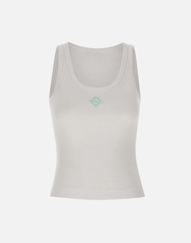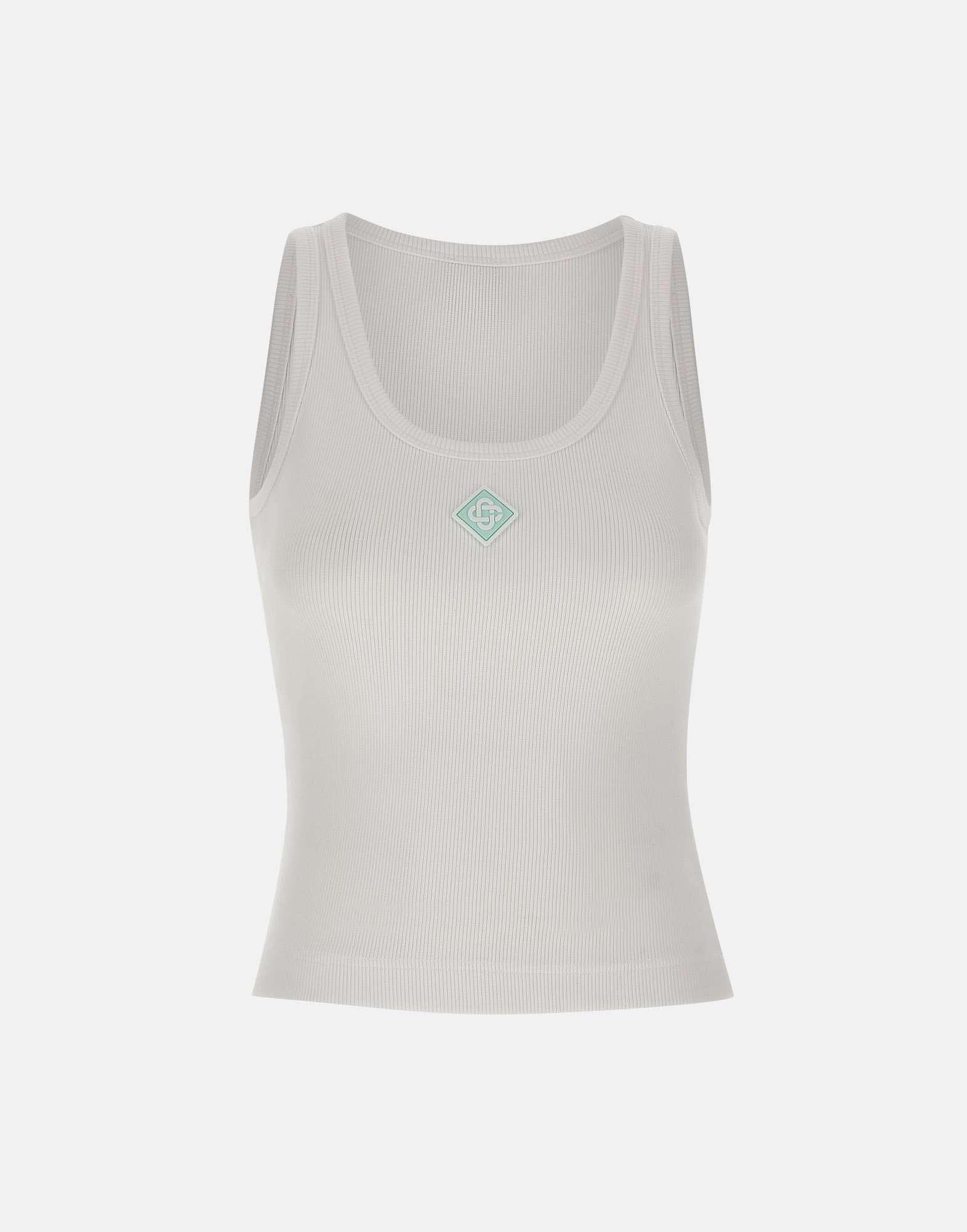 "Ribbed tank top" Casablanca, colore bianco, in cotone, trama a costine, patch logo diamante centrale sul davanti, regular fit