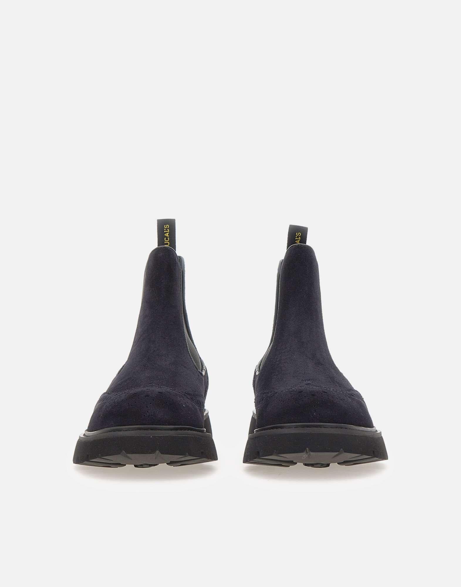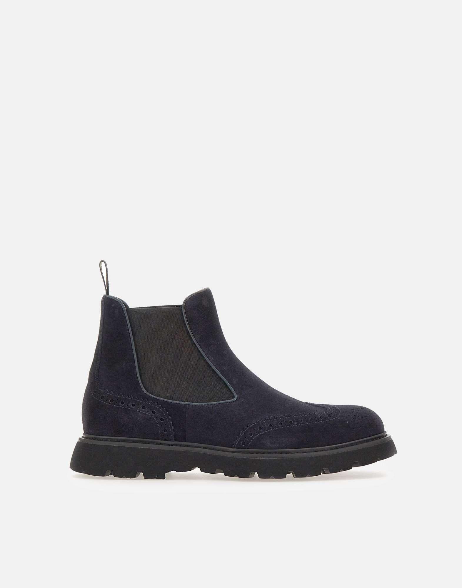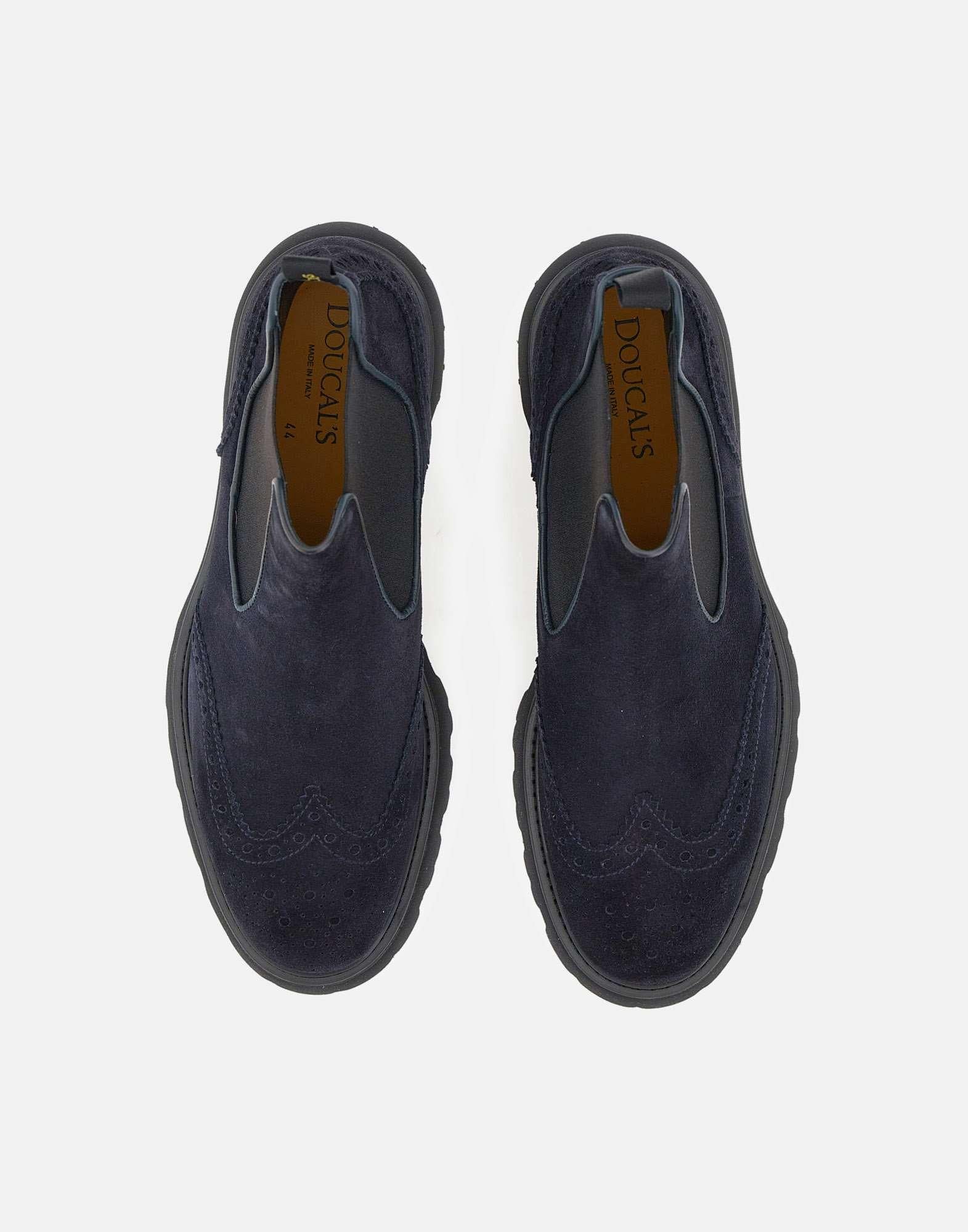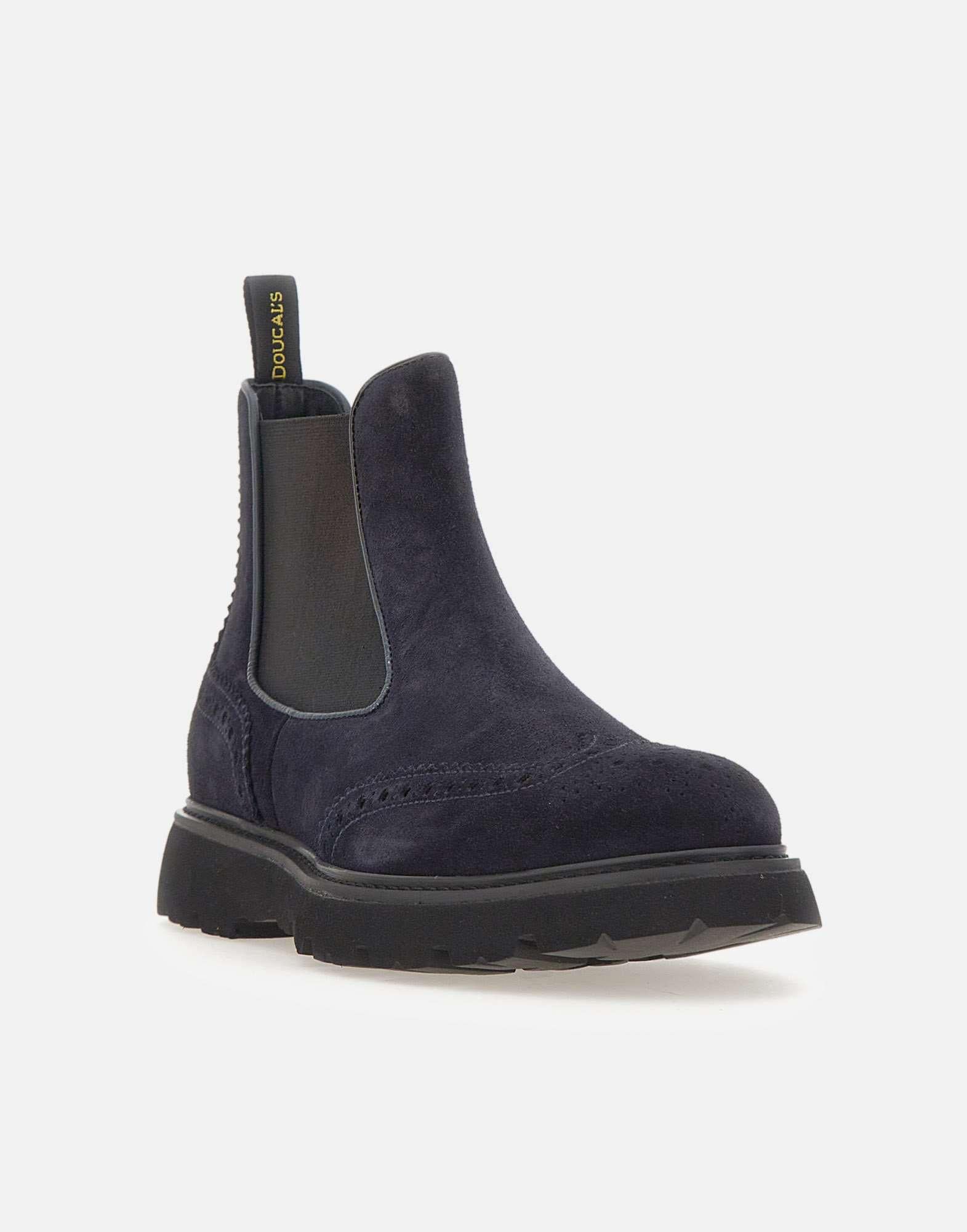 Stivali Doucal’s "Point" da uomo realizzati in morbido camoscio blu, linea alla caviglia e inserti elasticati per una calzata comoda e pratica. Presentano punta tonda, dettagli ricamati a coda di rondine e tirante posteriore. La suola in gomma carrarmato colore nero con tacco da 3 cm garantisce stabilità e un look raffinato dal gusto contemporaneo.Calzata regolare. Made in Italy. Custodia in tessuto inclusa.