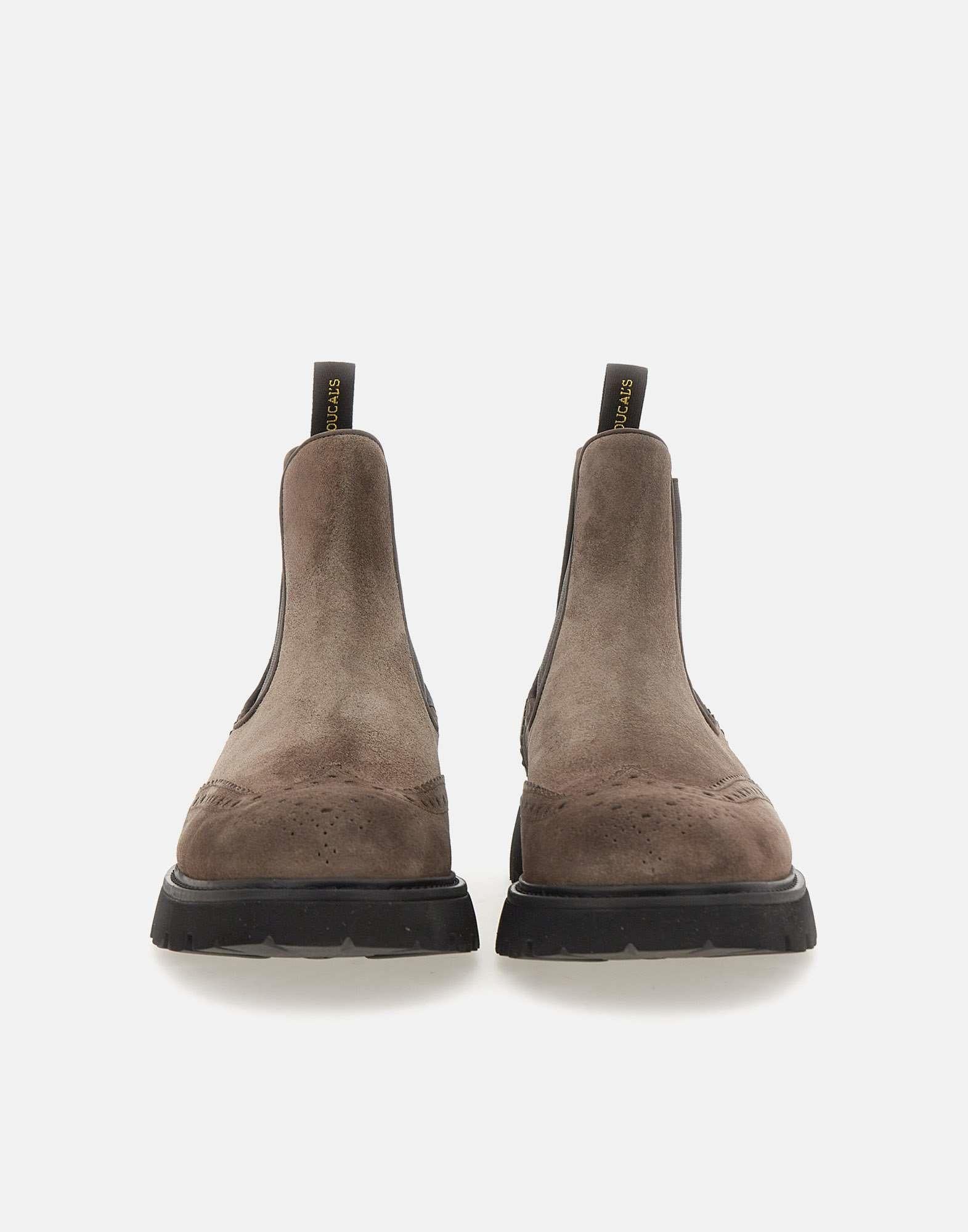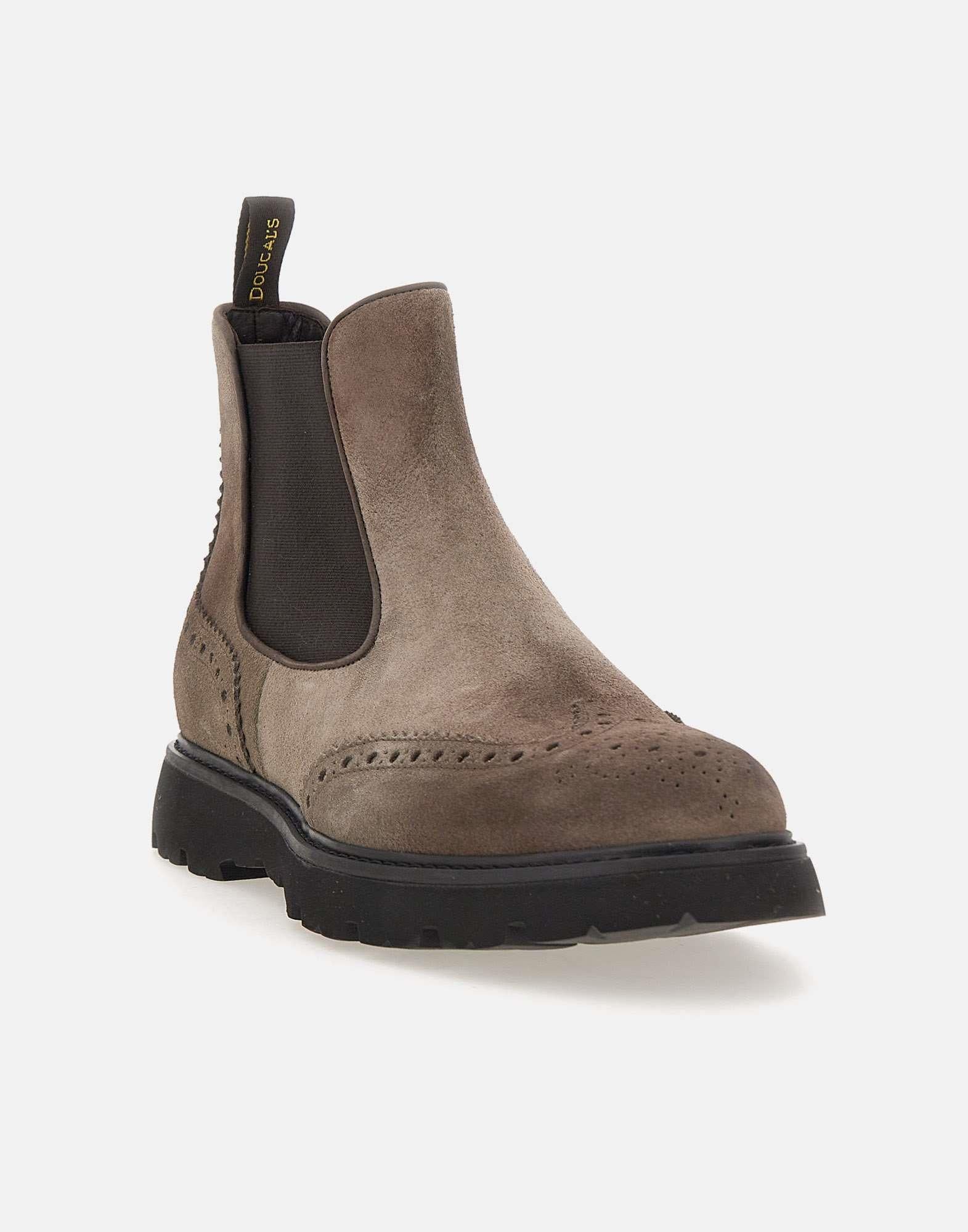 Stivali Doucal’s "Point" da uomo realizzati in morbido camoscio nei toni del tortora e marrone, linea alla caviglia e inserti elasticati per una calzata comoda e pratica. Presentano punta tonda, dettagli ricamati a coda di rondine e tirante posteriore. La suola in gomma carrarmato con tacco da 3 cm garantisce stabilità e un look raffinato dal gusto contemporaneo. Calzata regolare. Made in Italy. Custodia in tessuto inclusa.