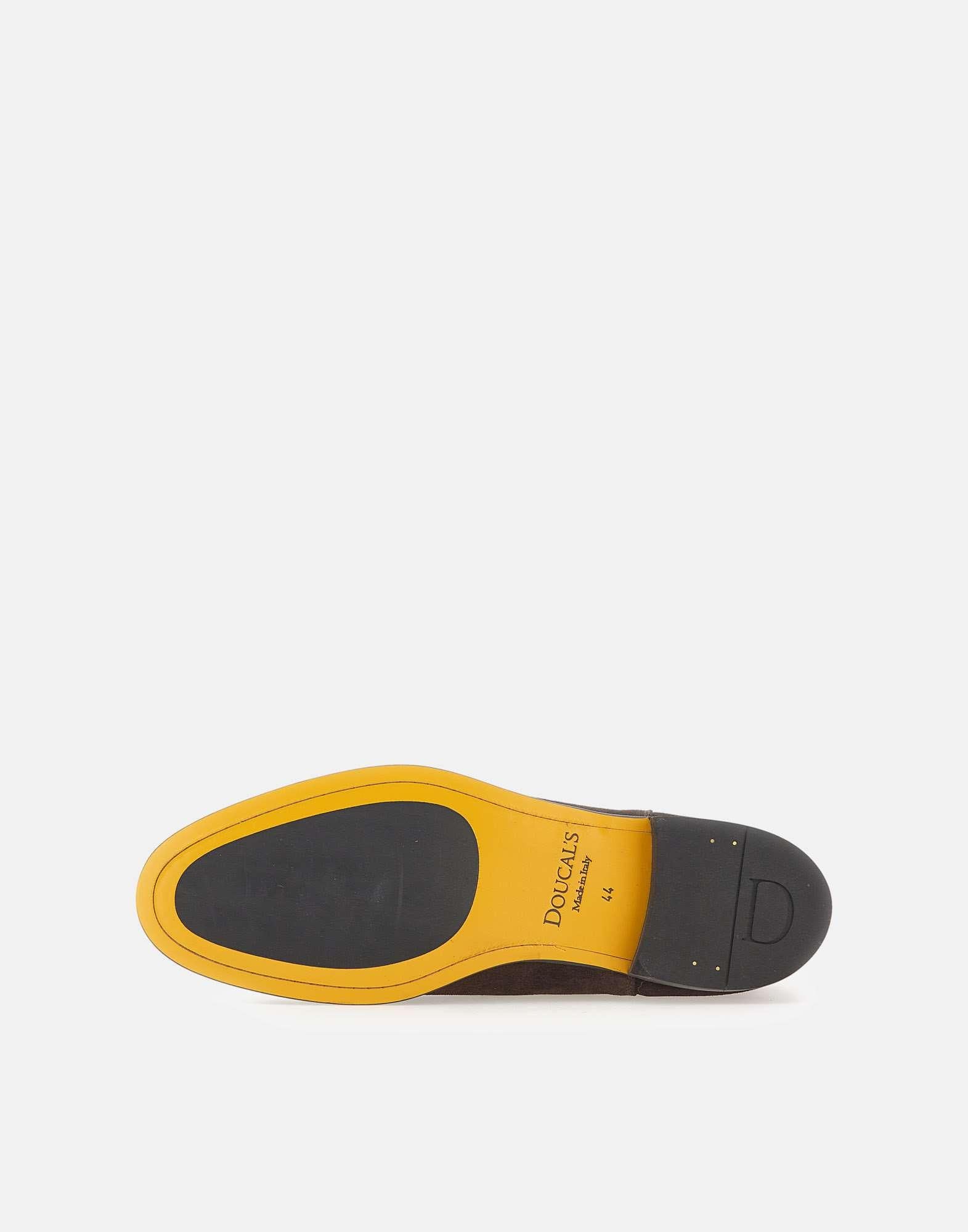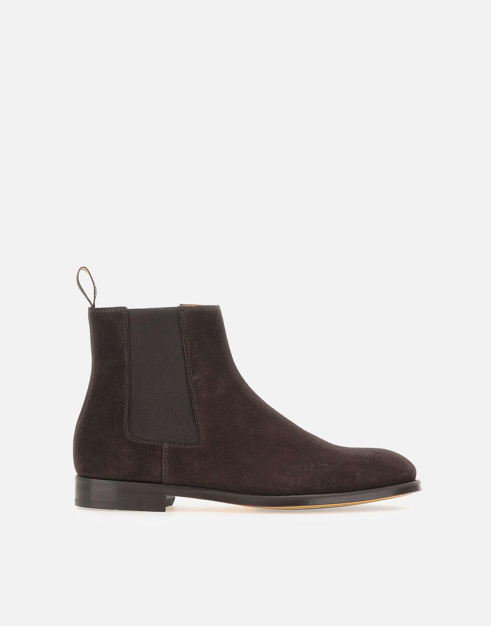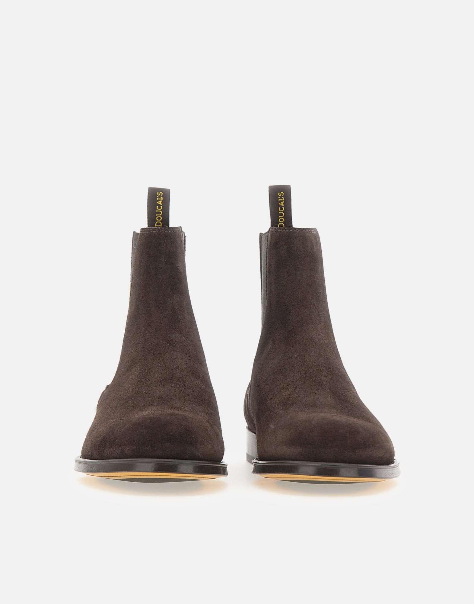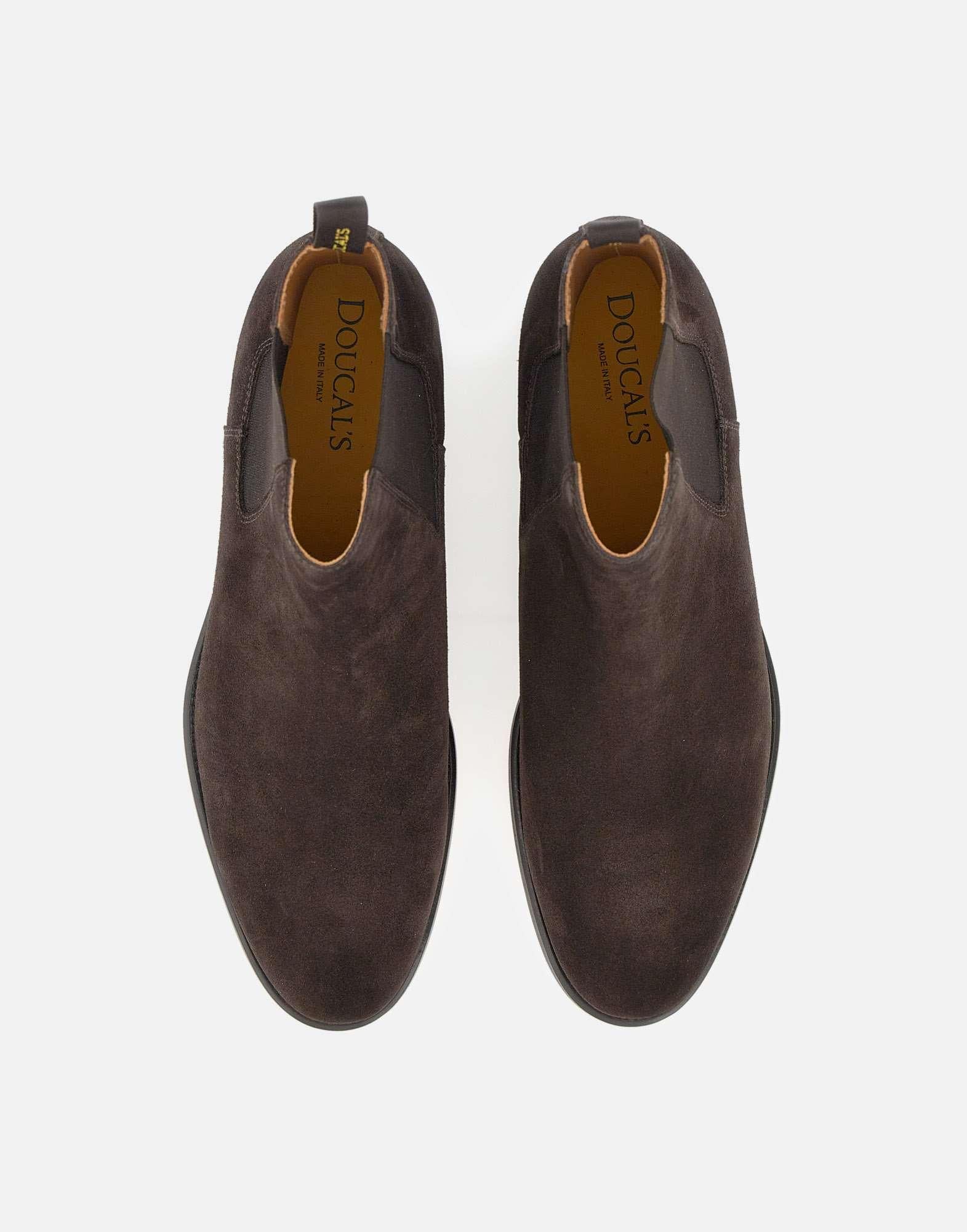 Stivali Doucal's "Visone" realizzati in pelle scamosciata color testa di moro, dal design essenziale e raffinato. Presentano inserto elasticato laterale per una calzata confortevole, tirante posteriore e suola in cuoio e gomma con tacco da 3 cm. Un modello versatile e artigianale, perfetto per look casual o più formali.Made in Italy. Custodia in tessuto inclusa. Calzata regolare.