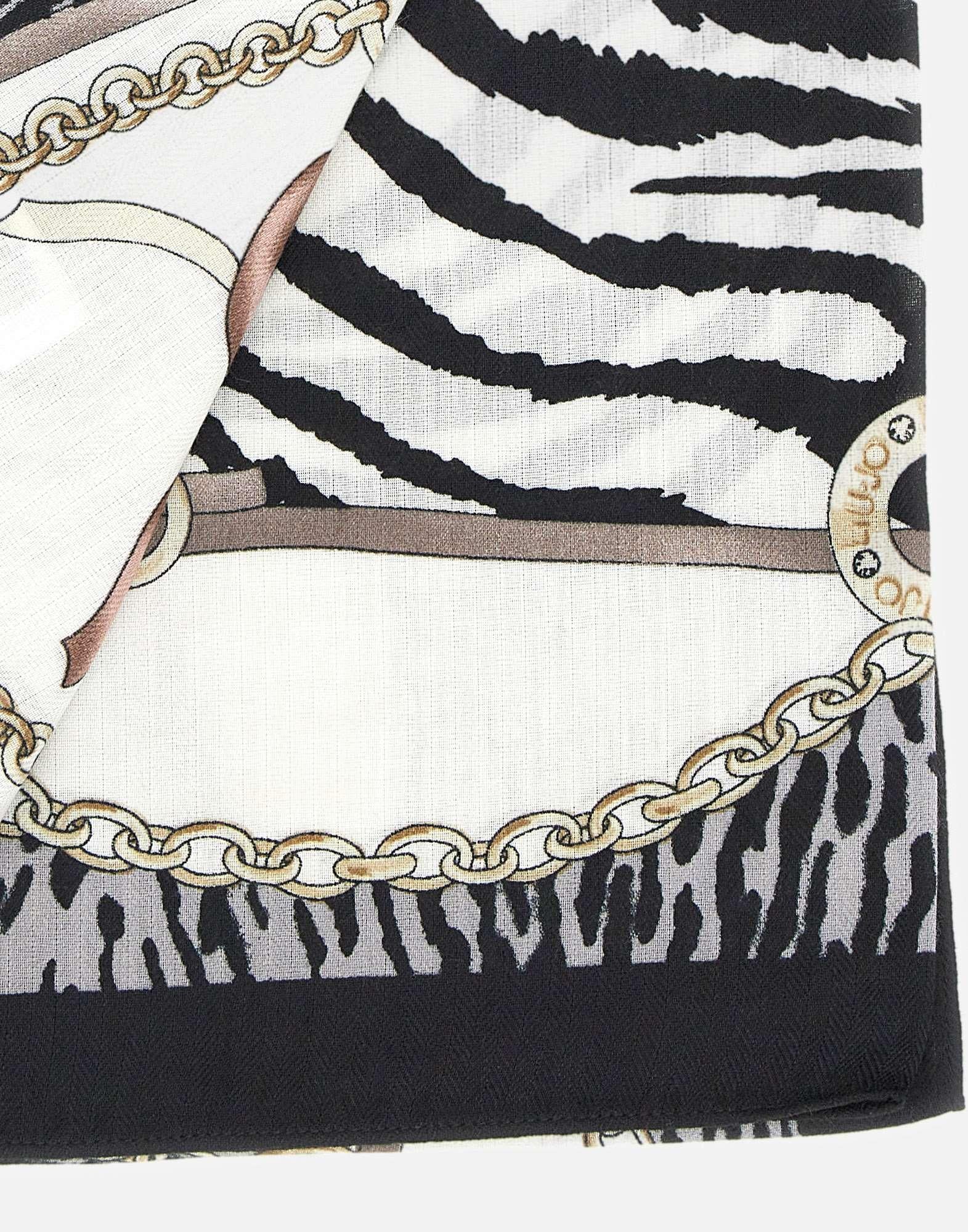 Stola donna Liu-Jo in tessuto stampato con motivo grafico a catene e fantasia animalier multicolore, per un look sofisticato e dimpatto. Morbida e avvolgente, è perfetta per aggiungere un tocco di eleganza e colore a qualsiasi outfit. Dimensioni: 120 x 120 cm.