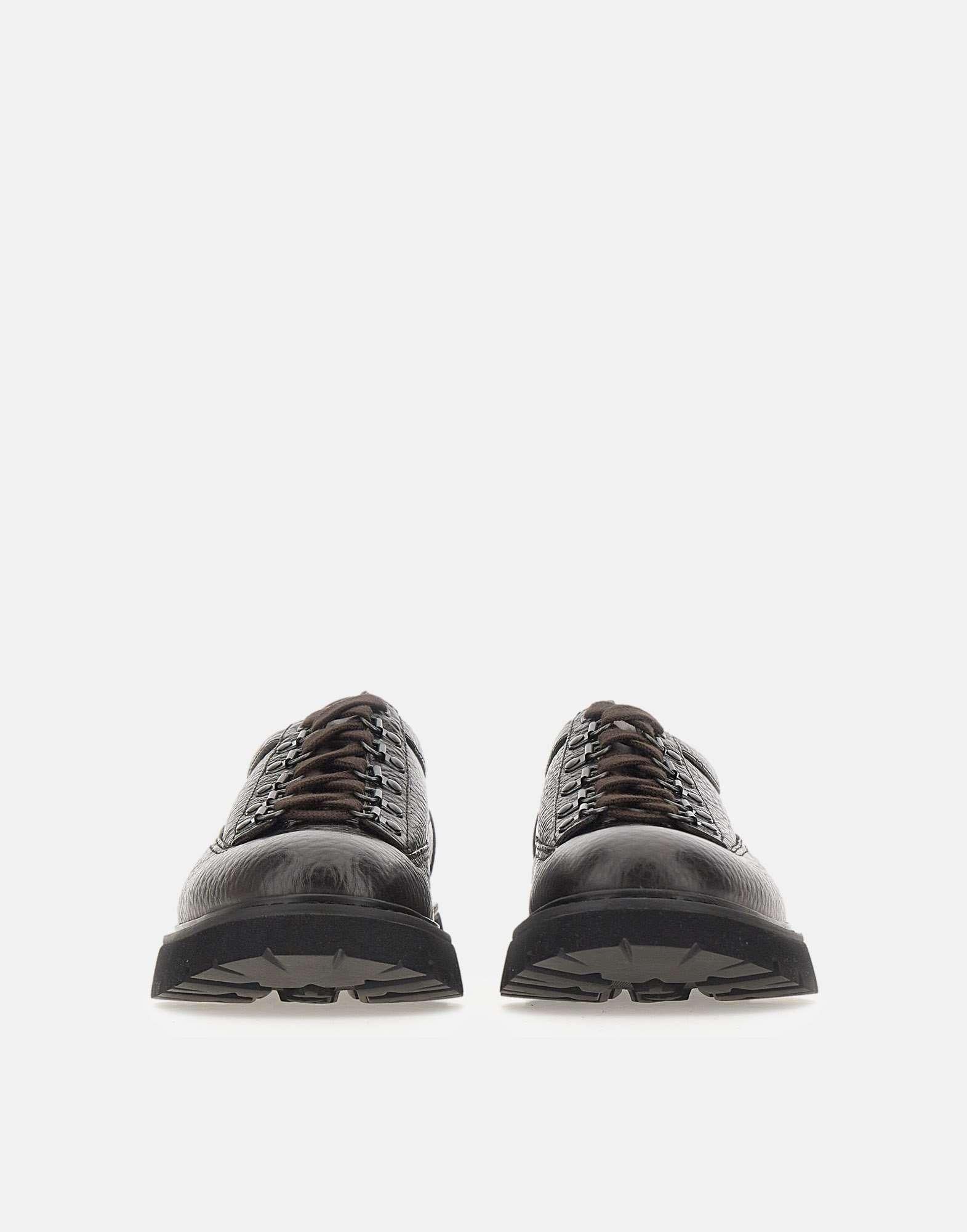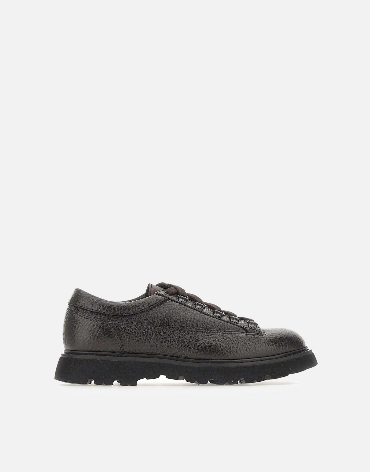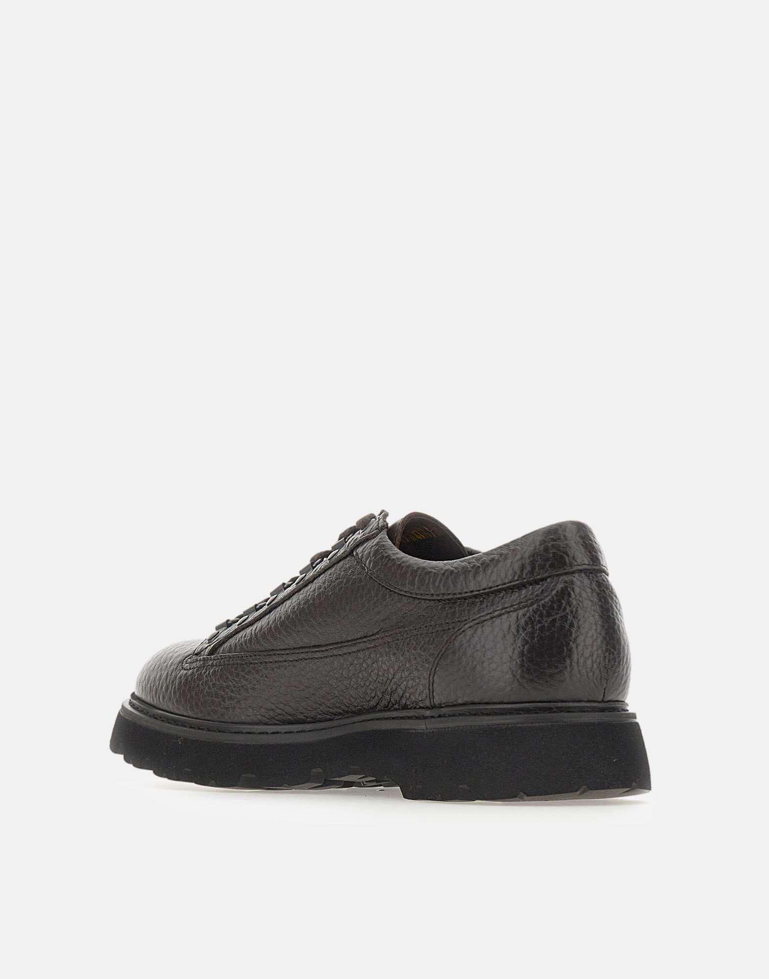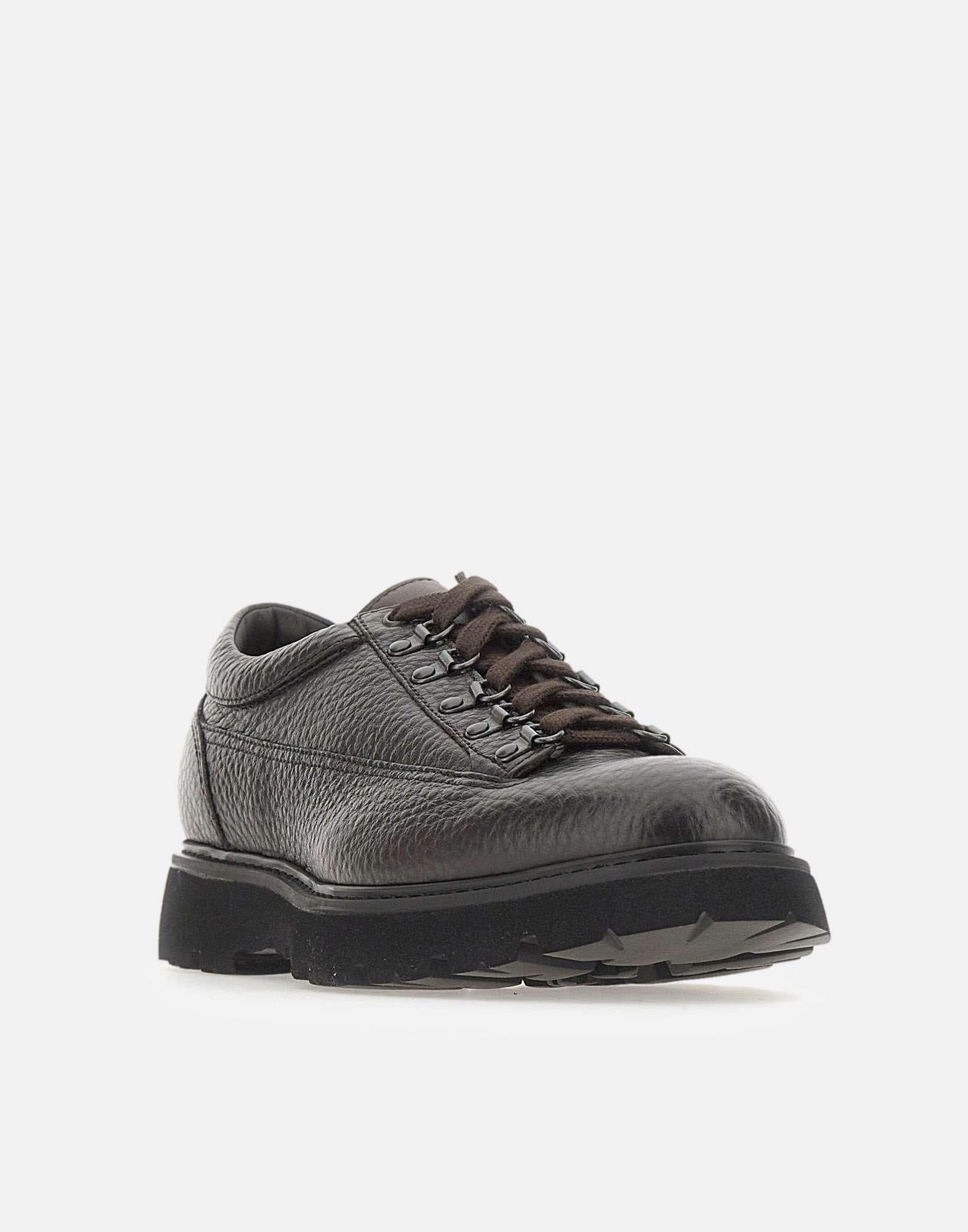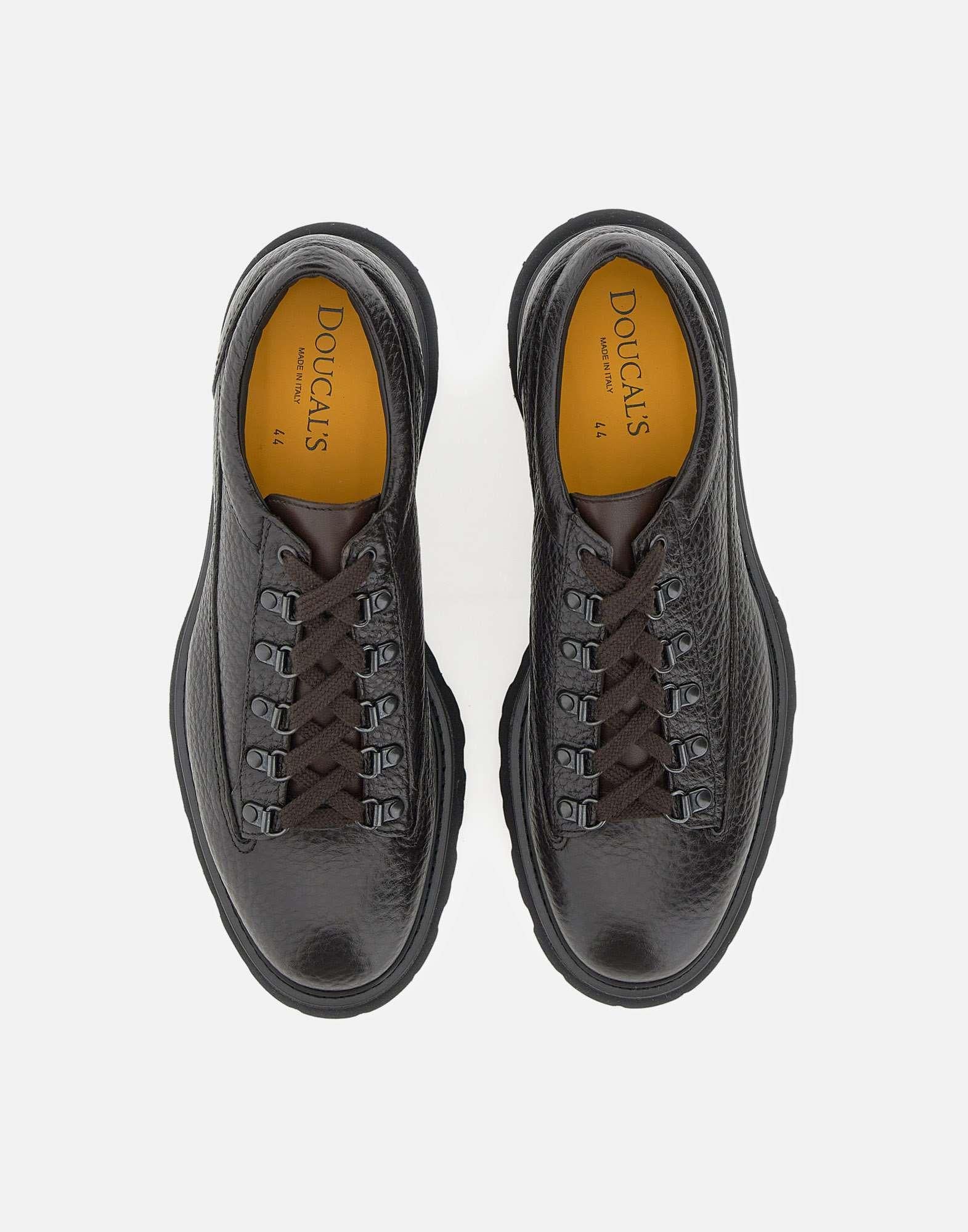 Stringate Doucal’s "Ciro" realizzate in pelle bottalata testa di moro, con chiusura a lacci e occhielli in finitura canna di fucile. La punta tonda e le impunture artigianali valorizzano l’estetica sofisticata del modello. Completa il design la suola in gomma carrarmato con tacco da 3,5 cm, che assicura comfort e stabilità senza rinunciare allo stile. Calzata regolare. Made in Italy. Custodia in tessuto inclusa.