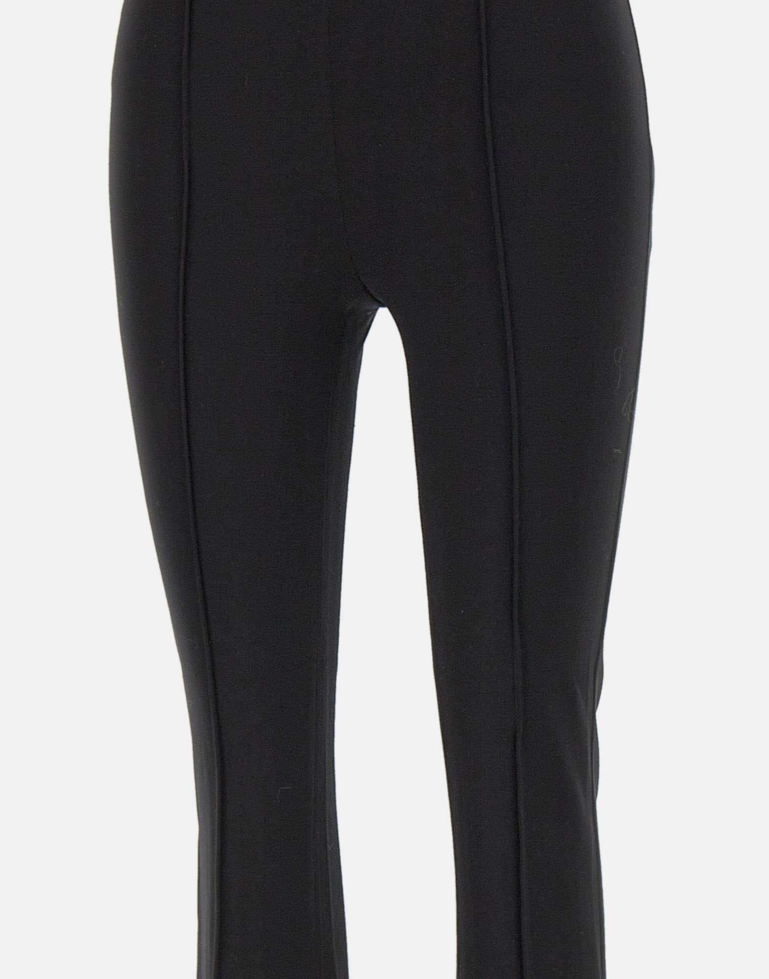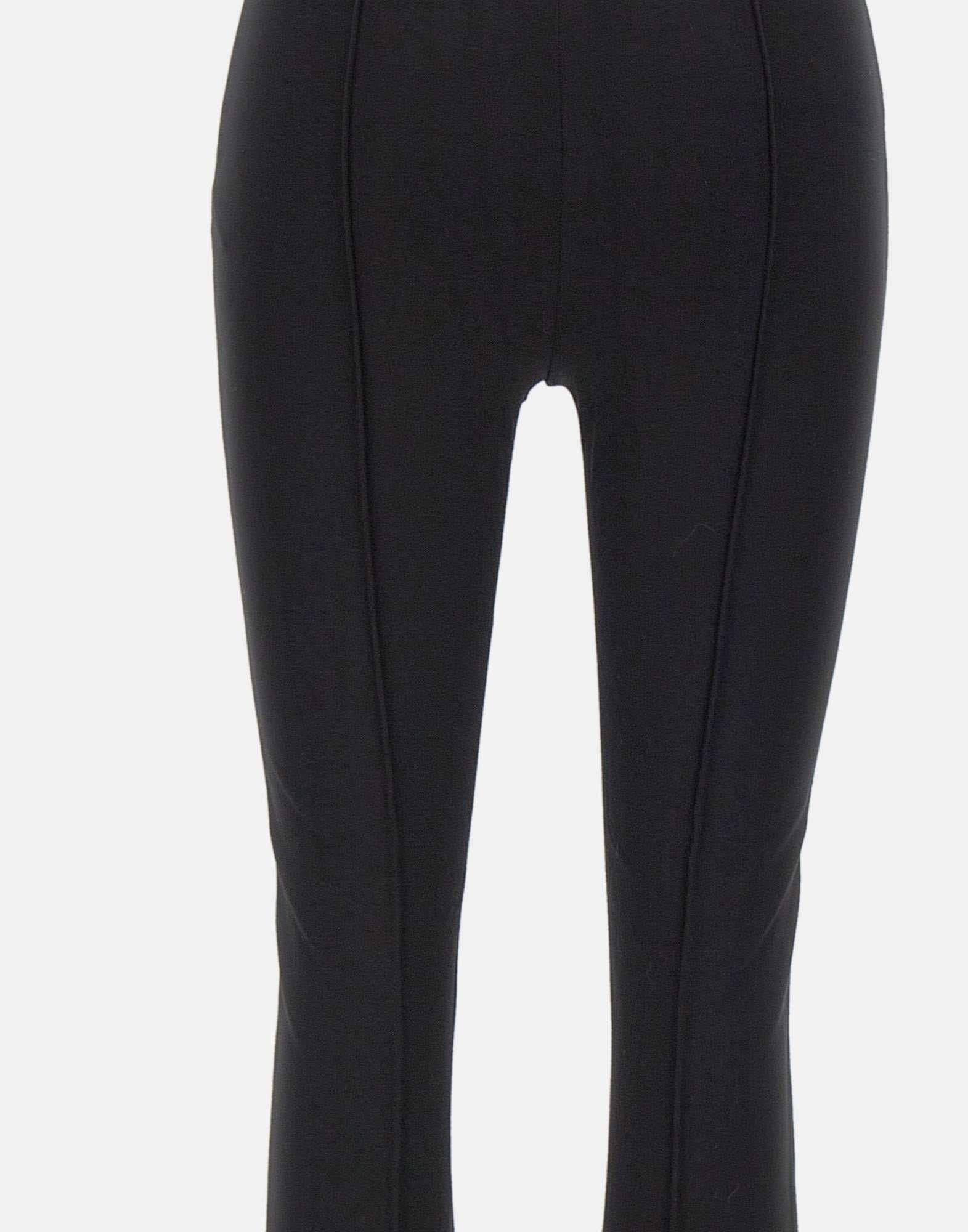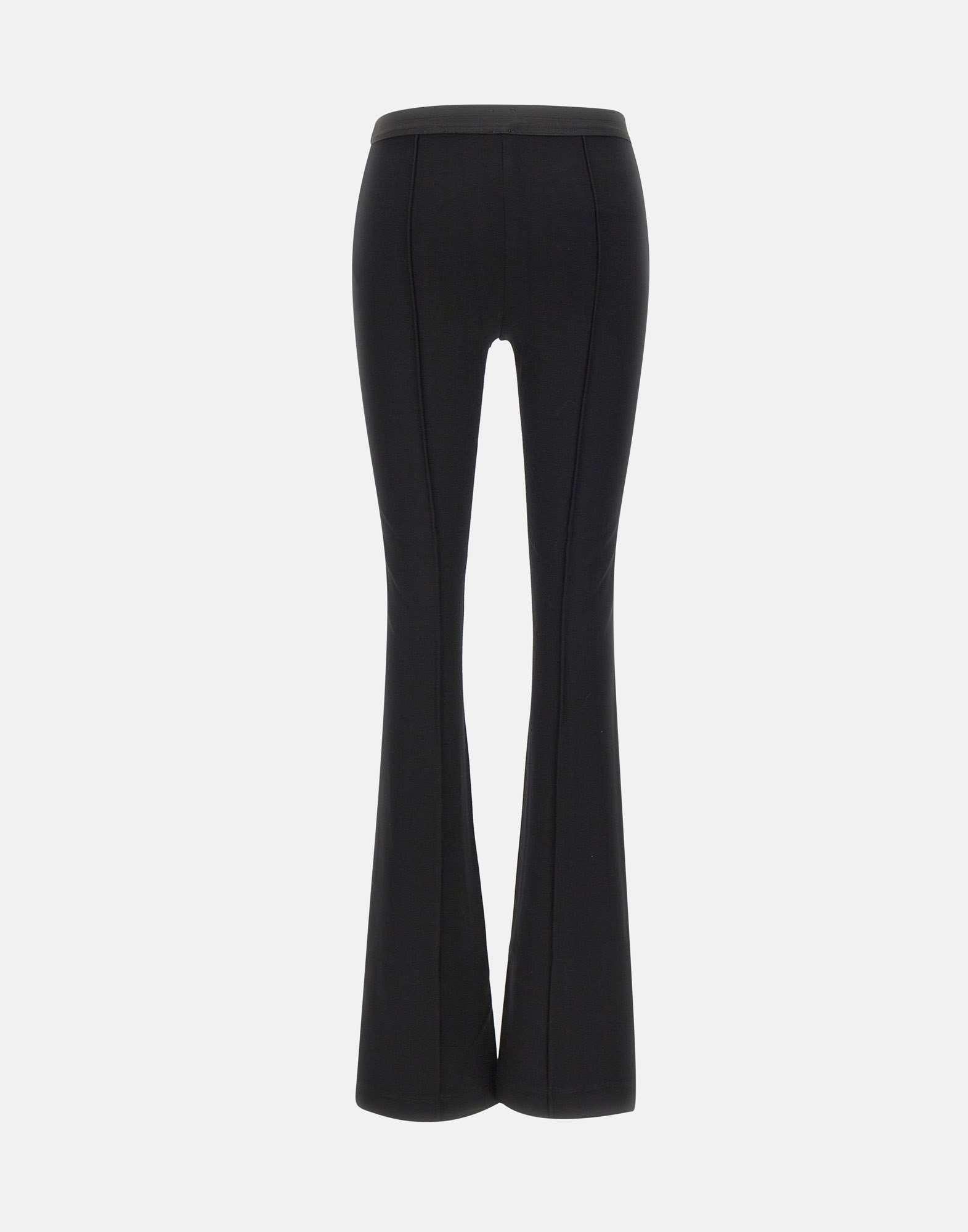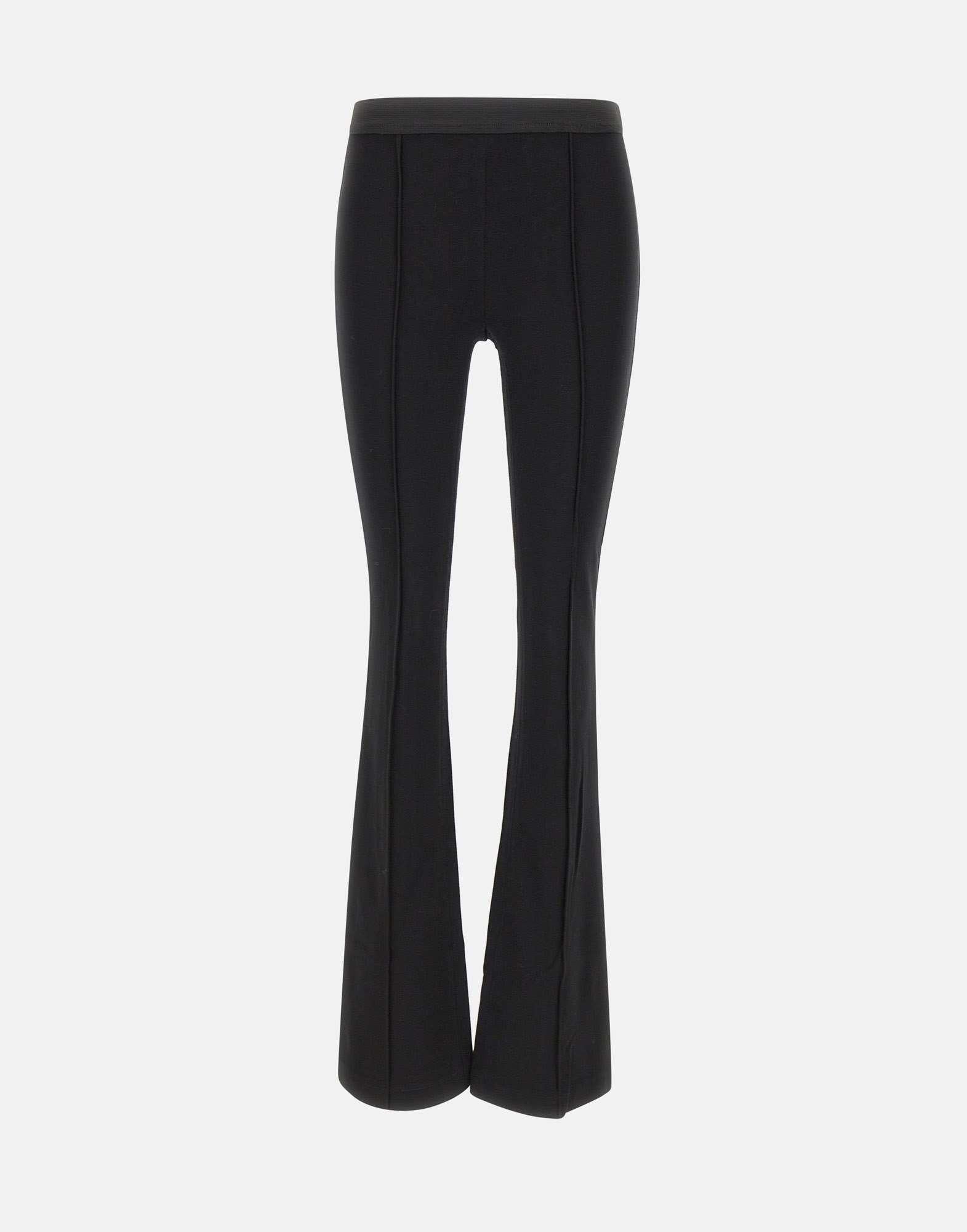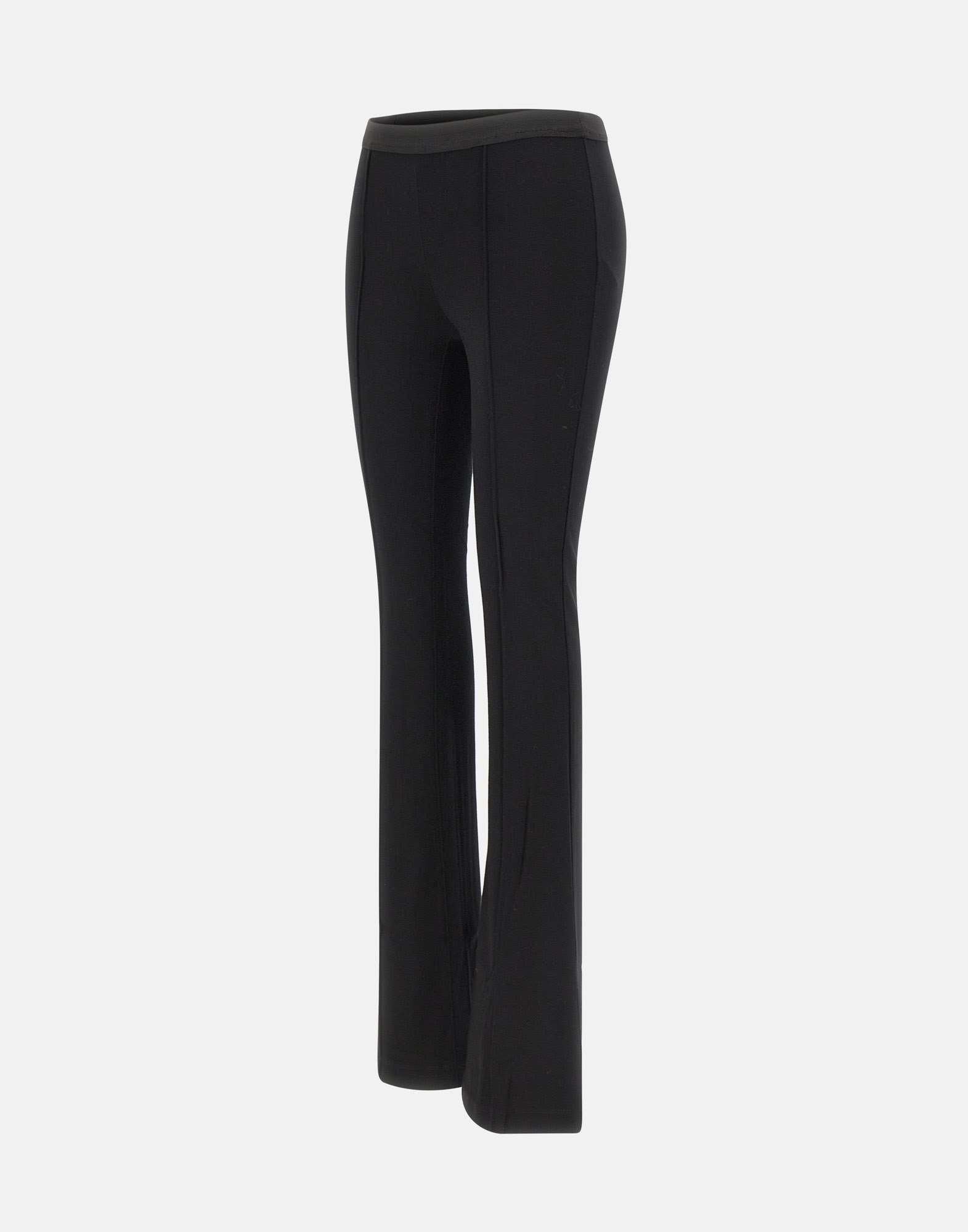 Pantaloni The Garment "Chloe Ultra Long" in jersey di viscosa stretch nero, dal design sofisticato ed essenziale. Caratterizzati da vita con elastico per una calzata confortevole, presentano nervatura centrale che slancia la silhouette e fondo a zampetta da 22 cm, ideale per un look elegante e contemporaneo. Vestibilità slim fit. Consigliato il lavaggio a freddo.