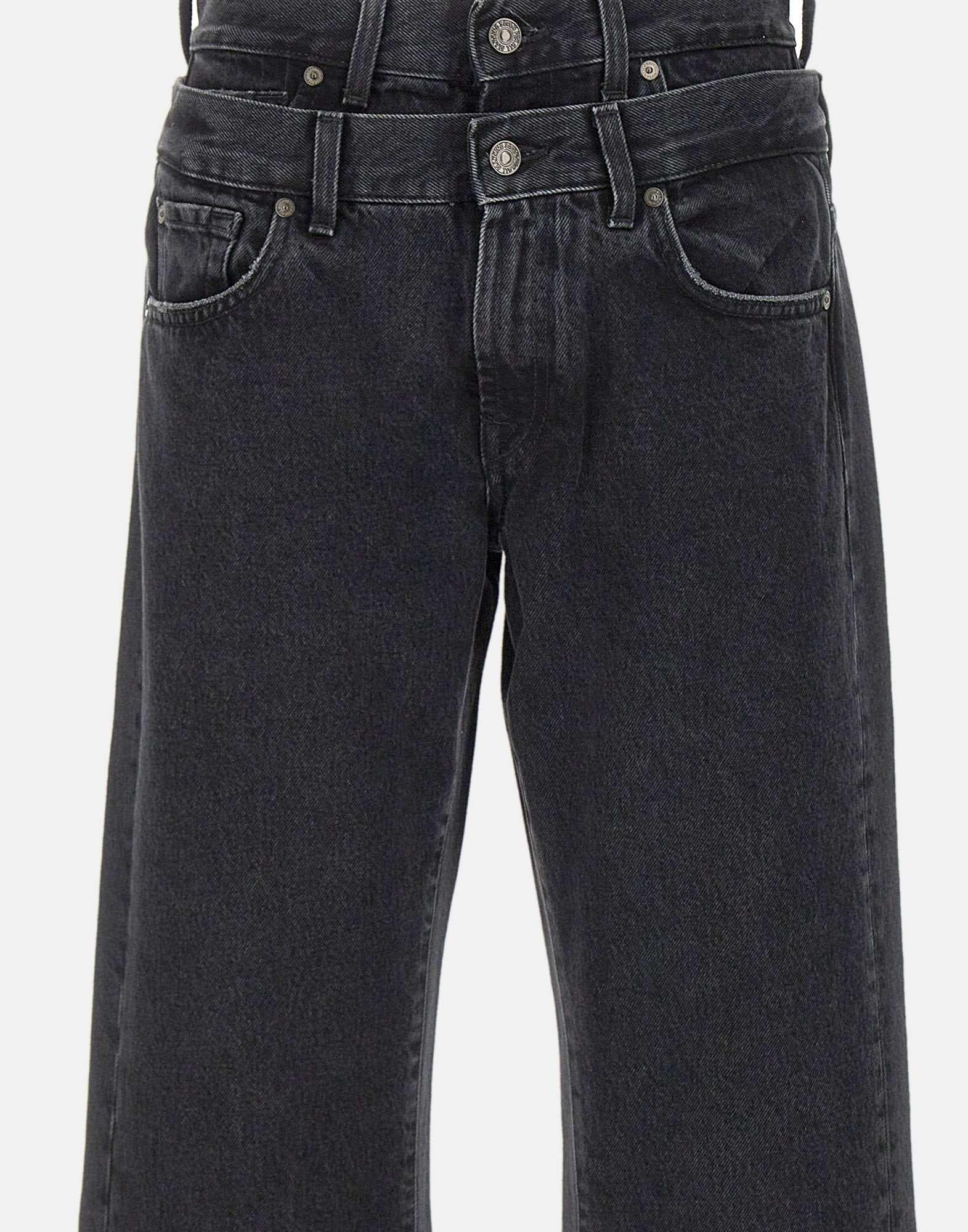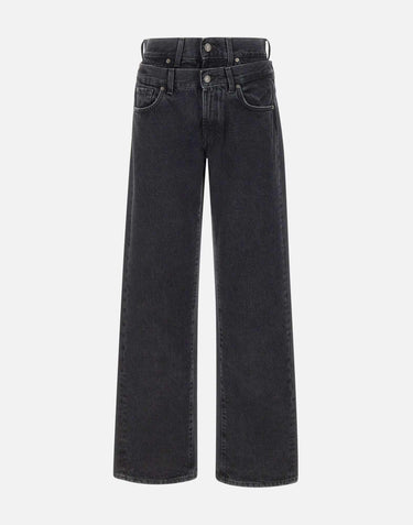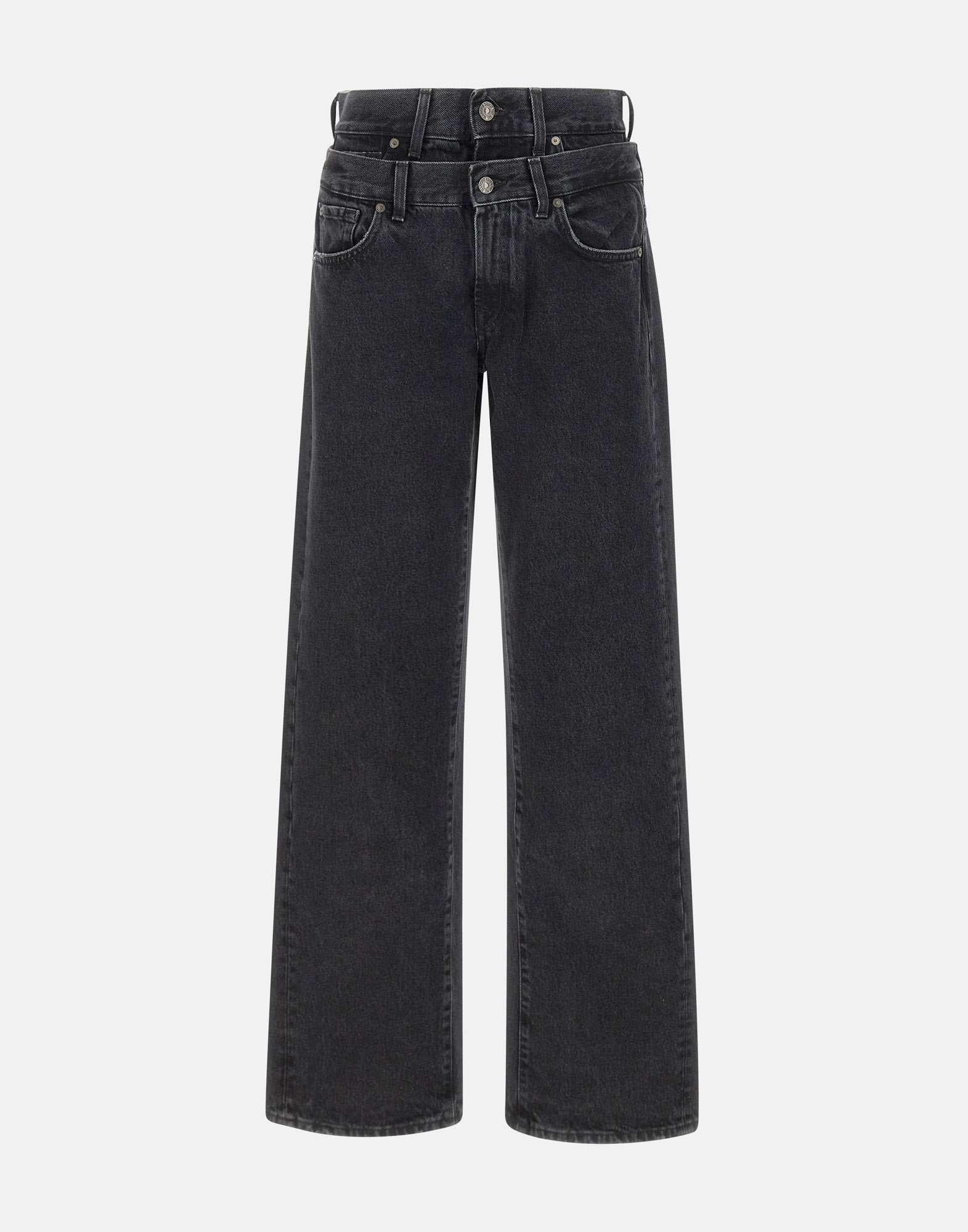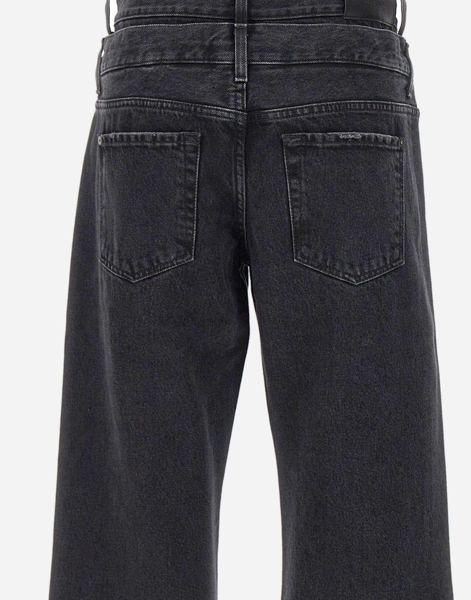 Jeans donna 7 For All Mankind "Double waisted trouser hustle" in cotone nero, caratterizzati dalla distintiva doppia cintura che aggiunge personalità al classico modello a gamba dritta. Realizzati in denim premium dal lavaggio nero versatile, si adattano facilmente sia a look casual sia ad outfit piu eleganti. Presentano struttura a cinque tasche e passante logato tono su tono. Un denim moderno e ricercato, pensato per valorizzare ogni stile. Ampiezza fondo: 24cm. Made in Italy.