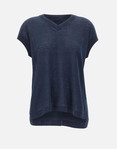 Gilet donna 'S Max Mara realizzato in filato leggero di puro lino color blu scuro, un capo essenziale e raffinato pensato per un guardaroba estivo contemporaneo. Il design presenta scollo a V e linea boxy, con un volume leggermente ampio che dona comfort e naturale fluidità alla silhouette. Il fondo dritto, leggermente più lungo sul retro, e gli spacchi laterali aggiungono movimento e versatilità al modello. Collo e maniche rifiniti con bordi a costine completano questo gilet con un dettaglio pulito e ricercato.